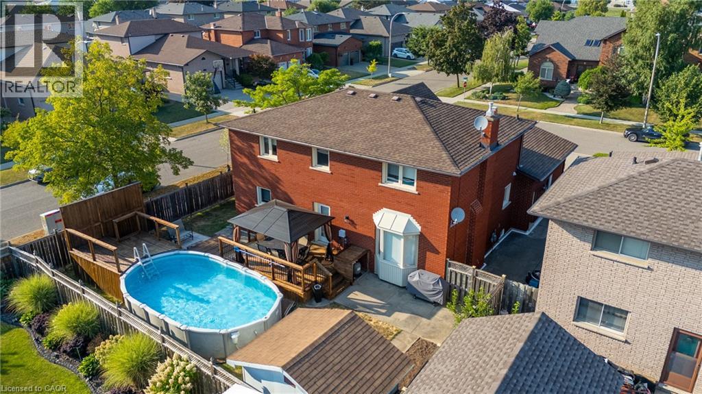 Location, Location, Location. Tucked just under the World renowned Niagara Escarpment with its easy access to the Bruce Trail, waterfalls, and nature hikes. This home awaits the next owner for this generously comfortable 2142 sq ft home. offering 4+ bedrooms, 3.5 baths, main floor family room next to beautiful Oak kitchen and dinette area. Old school charm with quiet living room and spacious Dining room too. The home has been lovingly maintained and cared for with timely updates and improvements, including a family friendly back yard with above ground pool, large multi-level decking and patios offering the perfect place to entertain and relax. Having a fully finished lower level with kitchen, bathroom and separate rooms along with a 2nd staircase to the garage. Perfect for grown children or in-law rental potential. This spacious home is a fantastic value and offers everything you are looking for in lower Stoney Creek with the escarpment as its backdrop. Surrounded by gorgeous homes many custom built with forever in mind, this location is sought after and needs to be recognized as the place to be. Don’t delay in coming to see it in person, this home is ready for you today. (id:49203)