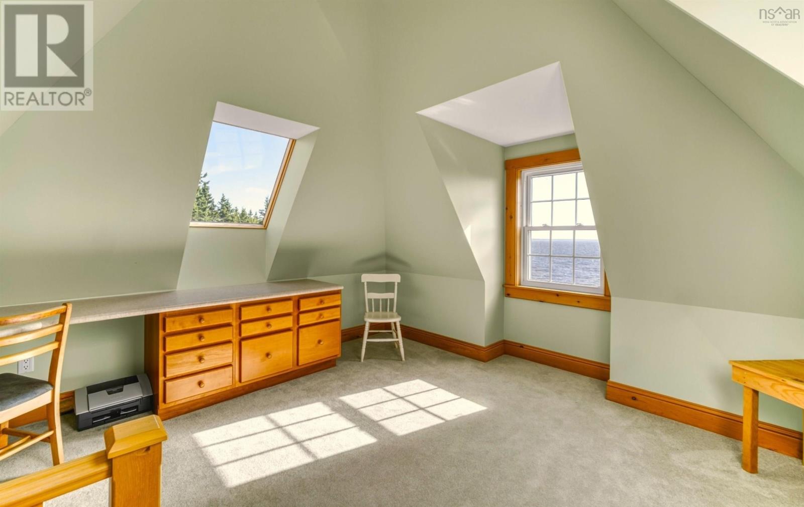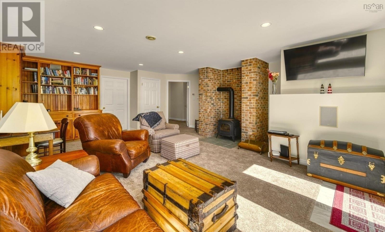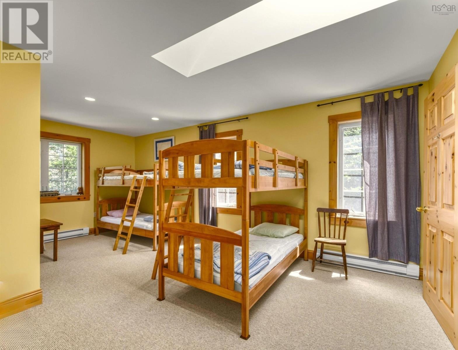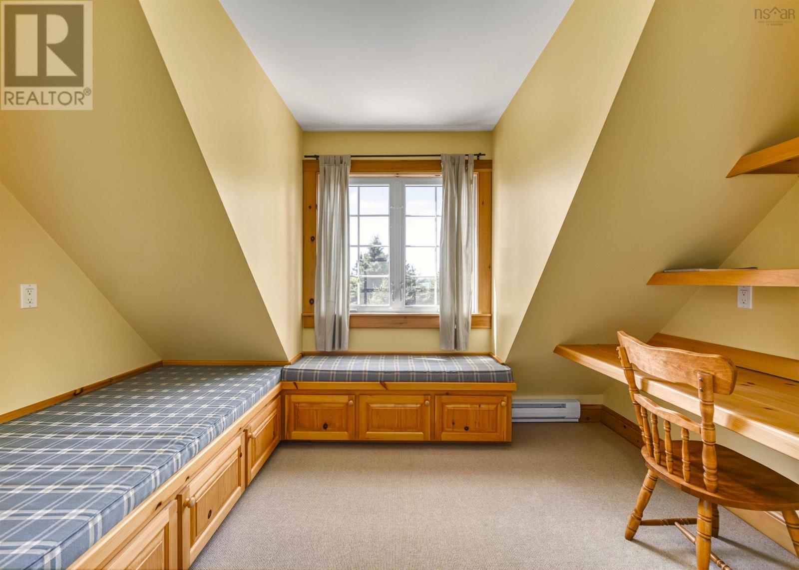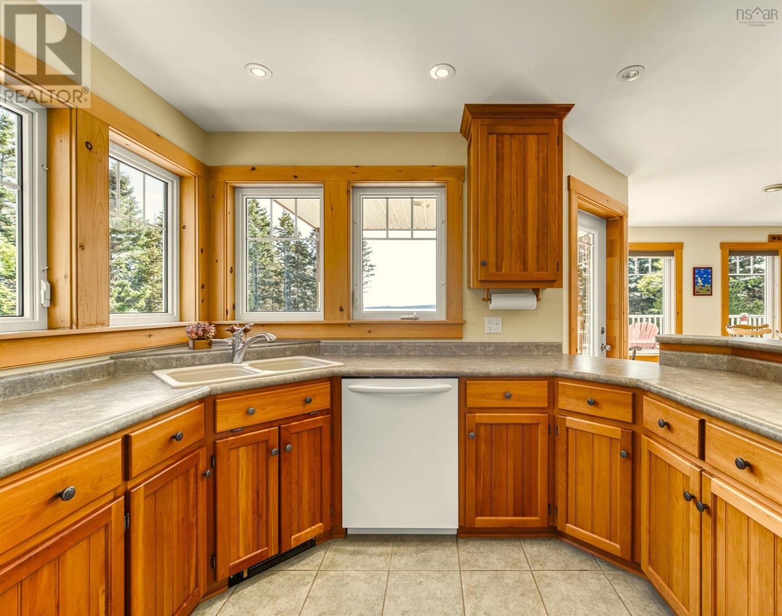 This timeless custom designed retreat , sequestered within a matured natural landscape, offers south-west views to the bold, open Atlantic. This enclave has been a cherished property with its tree-lined paths that gently enraptures your heart as it has its sole owners since its creation. Entering the main foyer one's eyes are drawn to the garden and sea views through an expanse of windows. A generous dining-room and kitchen space are grounded by a natural-stone, double fireplace lending warmth at this home's heart. The sunken living-room has an elevated sitting area to one side and in conjunction with the open kitchen-dining make this property ideal for family receptions. A mudroom laundry space and pantry off the kitchen reach to an attached double garage. A broad, open staircase provides access to the primary bedroom suite - encompassing an entire floor. This suite has large panoramic windows framed beneath a window seat and also features a gas fireplace. The tower loft, with an abundance of natural light, serves as an inviting studio or library. The large principle ensuite contains a walk in closet, soaker tub and separate tile shower and from the principle suite, a private deck would surely call for morning coffee. At the lower level, a large family room with wood stove offers full walkout to a custom-designed, brick patio. At this same level, two large bedrooms are complimented by two full baths. A utility room that completes this level. A charming, large, three bedroom guest house, tucked away off the main driveway is framed by forest. An open-concept living-dining space off the kitchen with a gas fireplace makes for the ideal retreat for visiting family. The primary bedroom with ensuite and laundry room complete this main floor. Two additional bedrooms with baths perfectly compliment this guest retreat. Though constructed in our century, this property and its stunning setting conveys the sentiments of another time. A rare opportunity. (id:49203)