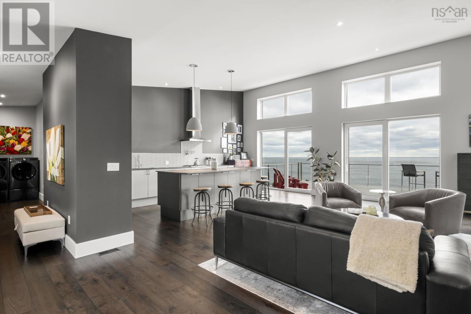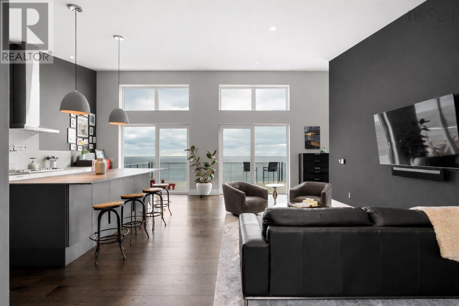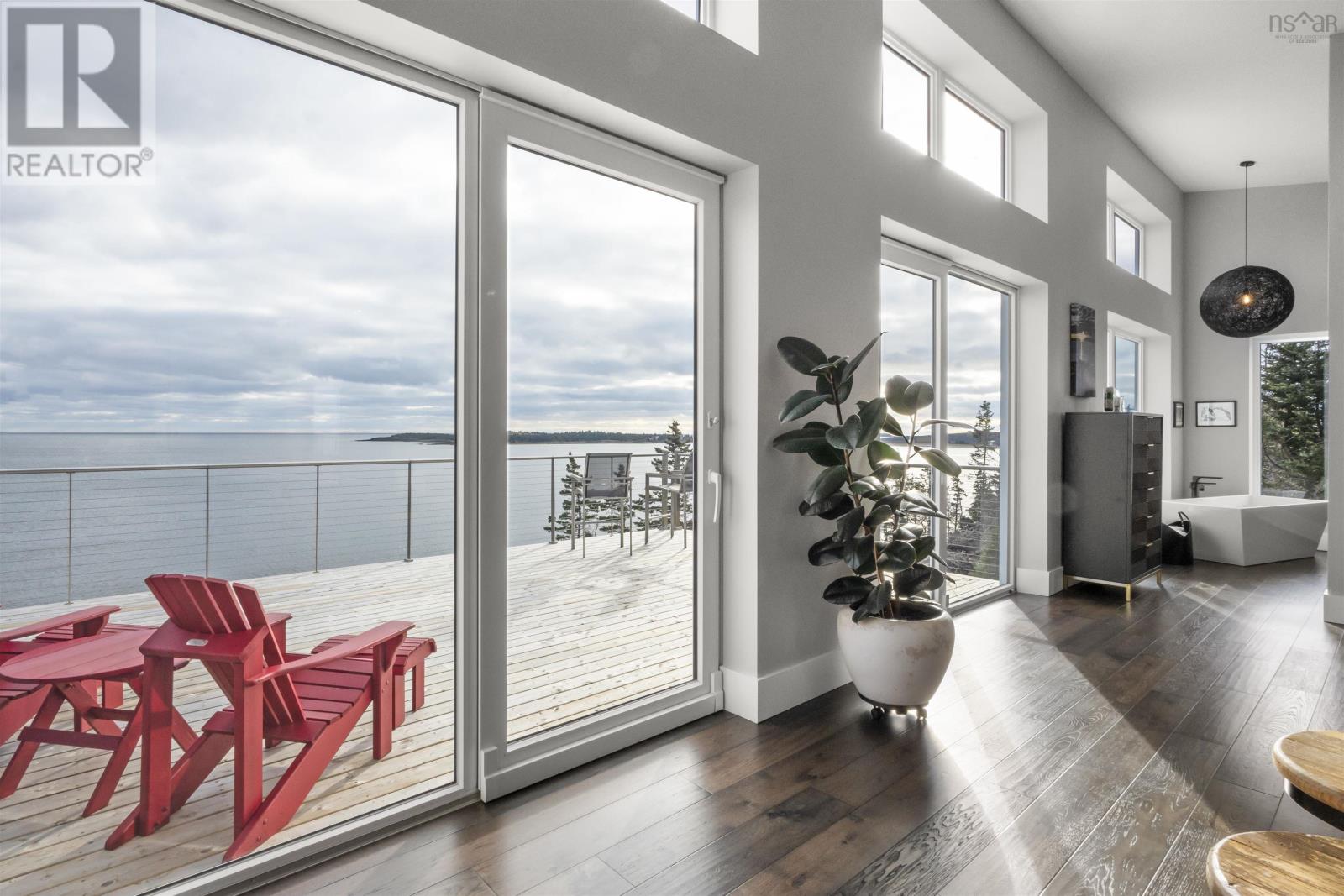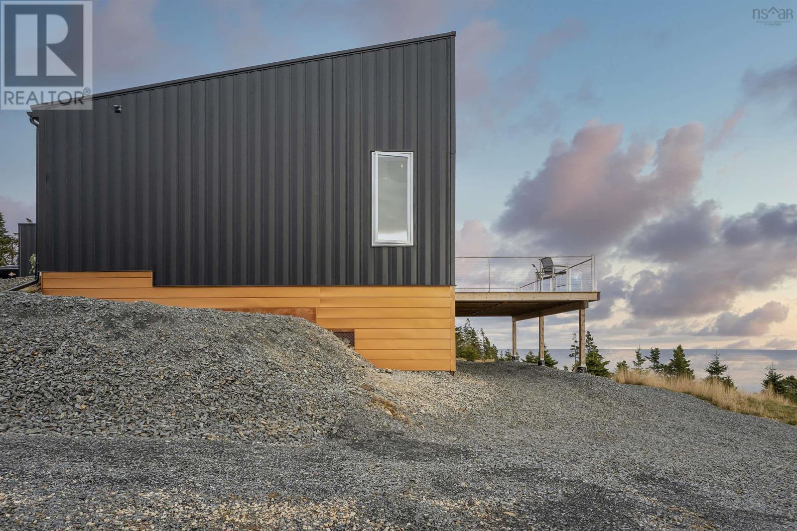 The Black Pearl is a rare coastal masterpiece perched high on 4.7 acres of solid rock in Kingsburg, with sweeping, unobstructed views of the open Atlantic. Clad in striking black metal, this modern, energy-efficient home is built to withstand the elements while immersing you in them floor-to-ceiling ocean views, dramatic storm watching, sun and moon rising in complete privacy. Designed for effortless one-level living, it features an open-concept kitchen and living space, a serene primary suite with soaker tub and ocean views, a second bedroom, full bath, mudroom, large unfinished basement, and a 24 x 24 attached garage. Turn-key and virtually maintenance-free, youre moments from Hirtles Beach, Sand Dollar Beach, and Gaff Point, and just a scenic drive to Lunenburg and Bridgewater. Bold. Luxury. Unforgettable. (id:49203)
