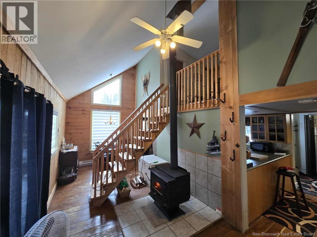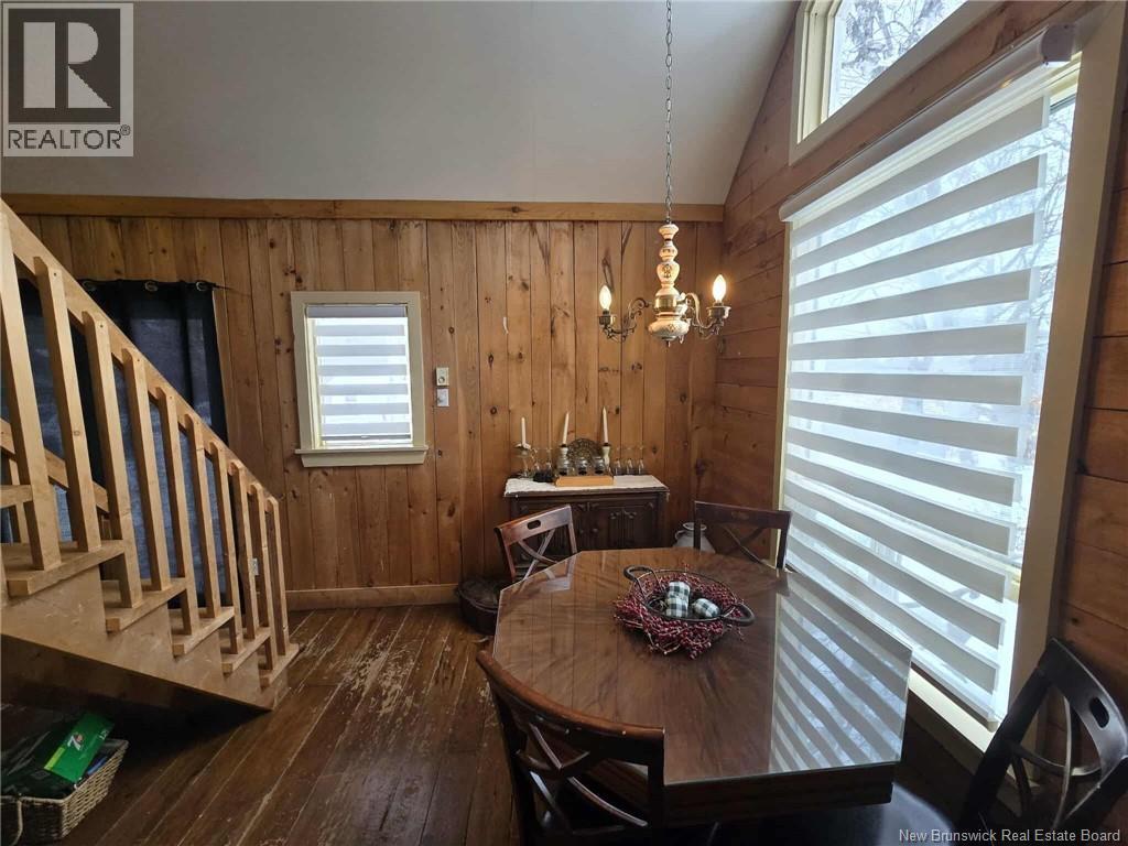 NATURE AND SNOWMOBILE LOVERS WANTED!! This 4 season ""FULLY FURNISHED CAMP/COTTAGE"" is located 25 minutes from Bathurst and steps away from the Nepisiguit Lodge. If you like kayaking, fishing, hunting, swimming, biking and snowmobiling; you definitely need to check this spot out!! The main floor offers a kitchen with wood flooring and pot lighting, den area with access to the porch, living room with a cozy wood stove for those cold winter nights, 1 bedroom and a full bath with a soaker tub and stand up shower. The beautiful wood staircase leads you to the upper level where you have an open concept view of the main floor and 2 more bedrooms. Some of the great features include; partial fencing on the property, metal roof approx 2 years old, exterior finished in cedar, detached garage and lots of peace and tranquility!! Call now to book your showing!! ***Everything inside is included except the dining room table and chairs*** (id:49203)