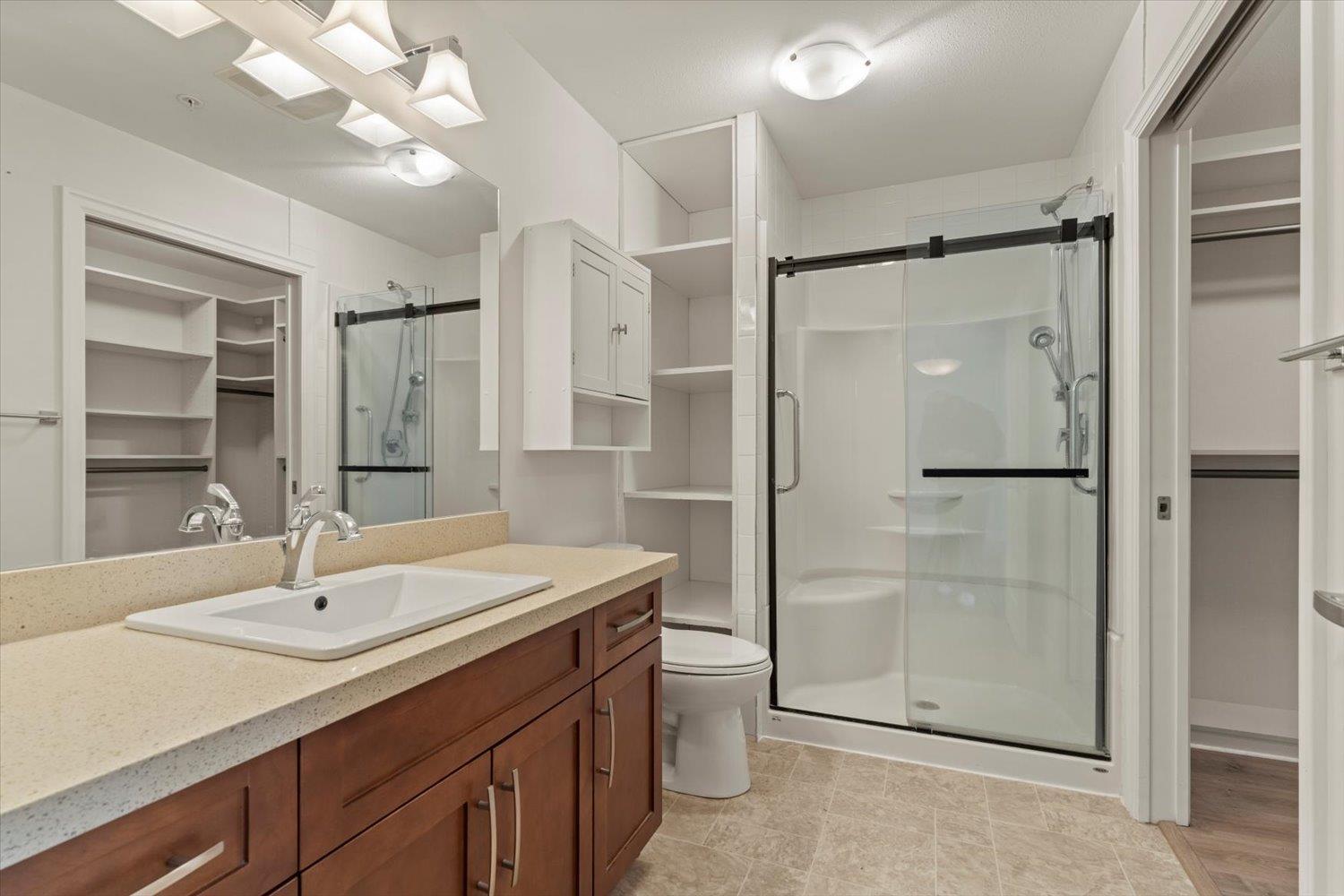Sought after 45+gated community just steps to the River, shops, cafés & Garrison Village. Offering comfortable open-concept living with a well appointed kitchen featuring granite countertops, SS appliances & ample storage. The Primary bdrm offers a custom California WI closet & convenient walk-in shower in the ensuite. This bright, south-facing condo showcases quality finishes throughout:Laminate flooring, crown mouldings, A/C & a cozy gas FP. Oversized fully covered balcony W/motorized shade for added comfort on sunny days w/views of the beautifully landscaped courtyard, water feature & mountains. Englewood offers a welcoming pet friendly community lifestyle w/clubhouse, guest suites, underground prkg, storage & RV prkg. A well-priced opportunity to enjoy comfort, convenience & community! (id:49203)
