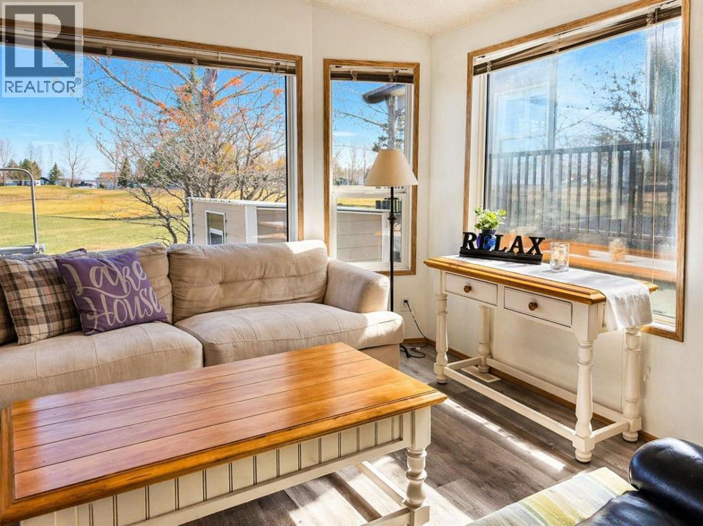 $4,745 YearlyLocated in the gated, four-season community of Gleniffer Lake Resort, this property offers the full resort lifestyle with access to a 9-hole (36 par) golf course, marina, indoor and outdoor pools, hot tubs, fitness center, pickleball courts, restaurant, and clubhouse. Centrally positioned within the resort and just a short walk or golf cart ride to all amenities, this charming 2-bedroom unit backs directly onto the 7th hole and is bordered by green space on one side—an ideal combination of convenience and privacy that buyers in this resort are looking for. Inside, the layout is functional and welcoming, featuring a bay-window dining area that comfortably seats four, a well-equipped kitchen with a 4-burner gas stove, microwave, full-size dishwasher, double sink, and large pantry. The primary bedroom offers a queen bed with generous storage, while the second bedroom includes a queen with a single bunk above—perfect for family and guests. A spacious 4-piece bathroom adds everyday comfort. The largest hall closet is plumbed and waiting for you to add your own washer/dryer or you can use the coin operated laundry at the clubhouse. A bright sunroom addition provides flexible space to relax or entertain, while the covered rear deck offers a private vantage point overlooking the golf course. The fully fenced yard is ideal for pets or kids, and the low-maintenance landscaping means more time enjoying everything the resort has to offer. Extras include all indoor and outdoor furnishings, kitchenware, all draperies, central vacuum with attachments, a BUNKHOUSE for extra guests, storage shed, BBQ, lawnmower, and a golf cart—making this a true turn-key opportunity. Ample parking allows for two vehicles plus golf cart(s).Move-in ready and set up for immediate enjoyment—this is resort living done right. (id:49203)