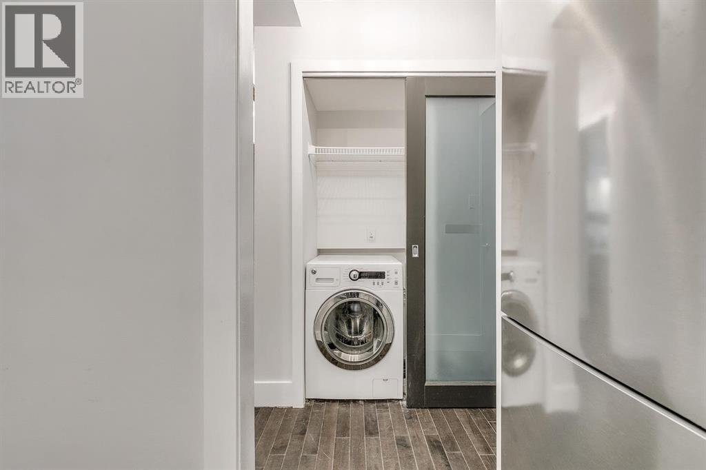$358.26 MonthlyThis one bedroom, one bathroom condo is in CONCRETE building with a healthy reserve fund. Located on a charming, tree-lined street in the heart of Lower Mount Royal, this well-designed condo delivers the walkable lifestyle everyone wants. Just two blocks from vibrant 17th Ave SW and steps to the #2 bus route, you can leave the car parked and save the commute stress for someone else. The living room features expansive WEST- facing windows that open to a well sized balcony—perfect for a BBQ and lounge seating. Mature trees create natural privacy and shade, making it a true outdoor extension of your living space. The kitchen is smartly configured with ample cabinetry, full-height uppers, a breakfast bar and stainless-steel appliances, (NEW FRIDGE in 2025) and recently REFINISHED COUNTERTOPS and NEW BACKSPLASH. The bedroom includes a large walk-in closet and a sliding privacy-glass door.Hardwood floors and recessed lighting run throughout, with NEW TRACK LIGHTING recently installed. You’ll also appreciate the in-suite European washer plus extra storage. The building is concrete, equipped with an elevator, secure bike storage and shared laundry, and does not permit short-term rentals, keeping things peaceful for residents. An assigned parking stall is included, and the area qualifies for residential street parking permits for just $45/year. Quick access to Downtown, the Beltline, U of C, Mount Royal University, Stampede Park and the new BMO Event Centre. With condo fees less than $360 this unit is sure to impress. (id:49203)