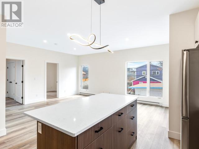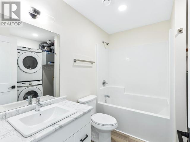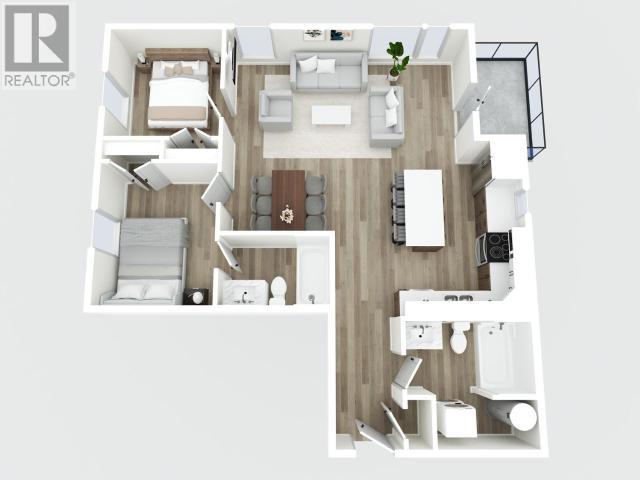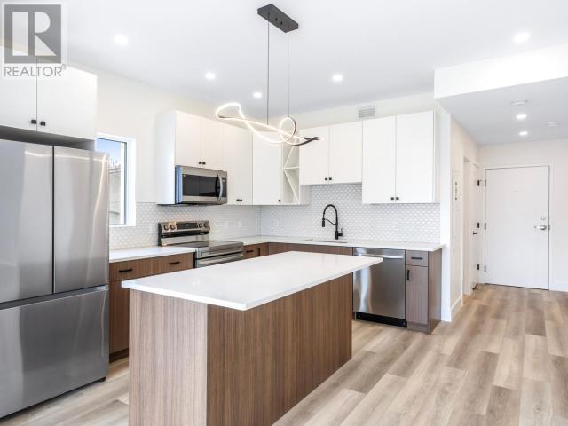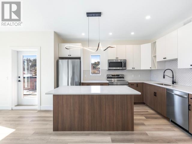 Vibrant, compact, and dialed into downtown--Suite 203 brings modern living into focus. This second-floor, 2-bedroom, 2-bathroom suite offers 752 sqft of smart design with southern exposure that fills the space with natural light. The open-concept main living area features 9' ceilings, vinyl plank flooring, and an upscale kitchen with quartz countertops, tiled backsplash, island with seating overhang, and stainless steel appliances. The primary bedroomincludes a private ensuite, while the cozy secondary bedroom is complemented by a separate full bathroom with integrated laundry. A south-facing balcony off the living room adds to the comfort, and a dedicated storage lockerkeeps things tidy. This suite is pet-friendly and rental-friendly with no limitations. Close to shops, restaurants, groceries, trails, and entertainment--it's everything you want, right where you want it. Available now/immediate possession. Condo fees:$301/month. (id:49203)