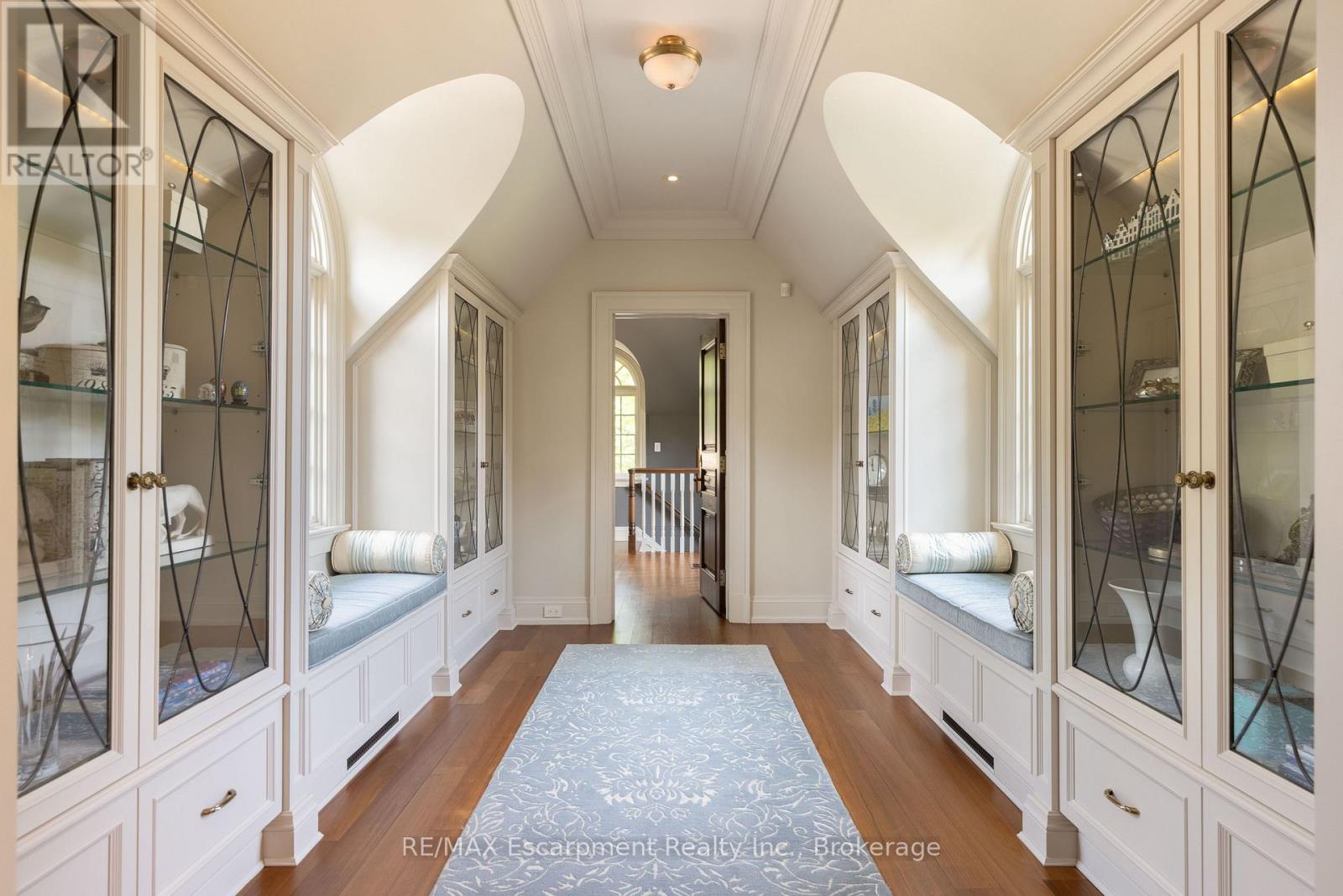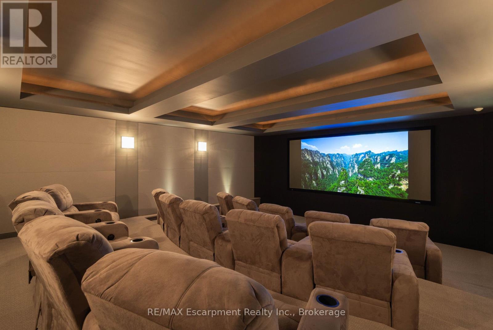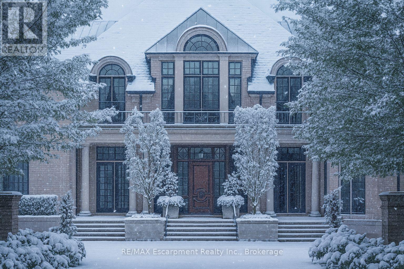2054 Lakeshore Rd. East is one of Oakville's finest lakefront estates.Situated on 1.6 acres & 166 ft of pristine shoreline, complete with deck & stairway access to the water. Designed by renowned architect Gren Weis & brought to life by the exceptional craftsmanship of Coulson Fine Homes.This magnificent 7-bdrm, 13-bath home spans an impressive 19,210 sq ft living space.Step into the grand formal entrance where limestone cast walls create a dramatic first impression serving as a prelude to the extraordinary spaces beyond.The residence showcases 12 ft ceilings on the main level, Brazilian walnut flooring thru-out & custom cabinetry adorns this remarkable home.The estate features an expansive living & dining rm w/breathtaking water views, perfect for intimate gatherings or grand celebrations.Step outside to the covered terrace where you can relax to the sounds of the "Bellagio" inspired fountains & waterfall.The gourmet open-concept kit.flows effortlessly into the fam.rm where water views & fp create a relaxed & comfortable space.The lower-level transforms into an entertainer's paradise, w/a state-of-the-art home theater, gym w/direct access to the infinity edge pool,steam room,golf simulator, wine cellar, billiards area w/rec room & catering kit.A private 2-bdrm nanny suite w/sep. entrance provides additional flexibility.An elevator gives you convenient access to all 5 levels of this thoughtfully designed home.The outdoors offers multiple entertaining areas nestled within the manicured landscaped grounds, the lakefront deck & poolside.The power screened sunroom offers 3 season enjoyment.His & Hers double car garages to accommodate 4 vehicles w/additional parking for 20 more on the circular driveway & auxiliary prkng areas-perfect for hosting memorable events.This waterfront estate represents more than just a home it's a lifestyle statement and every detail is curated to create an environment of uncompromising luxury and comfort. LUXURY CERTIFIED. (id:49203)