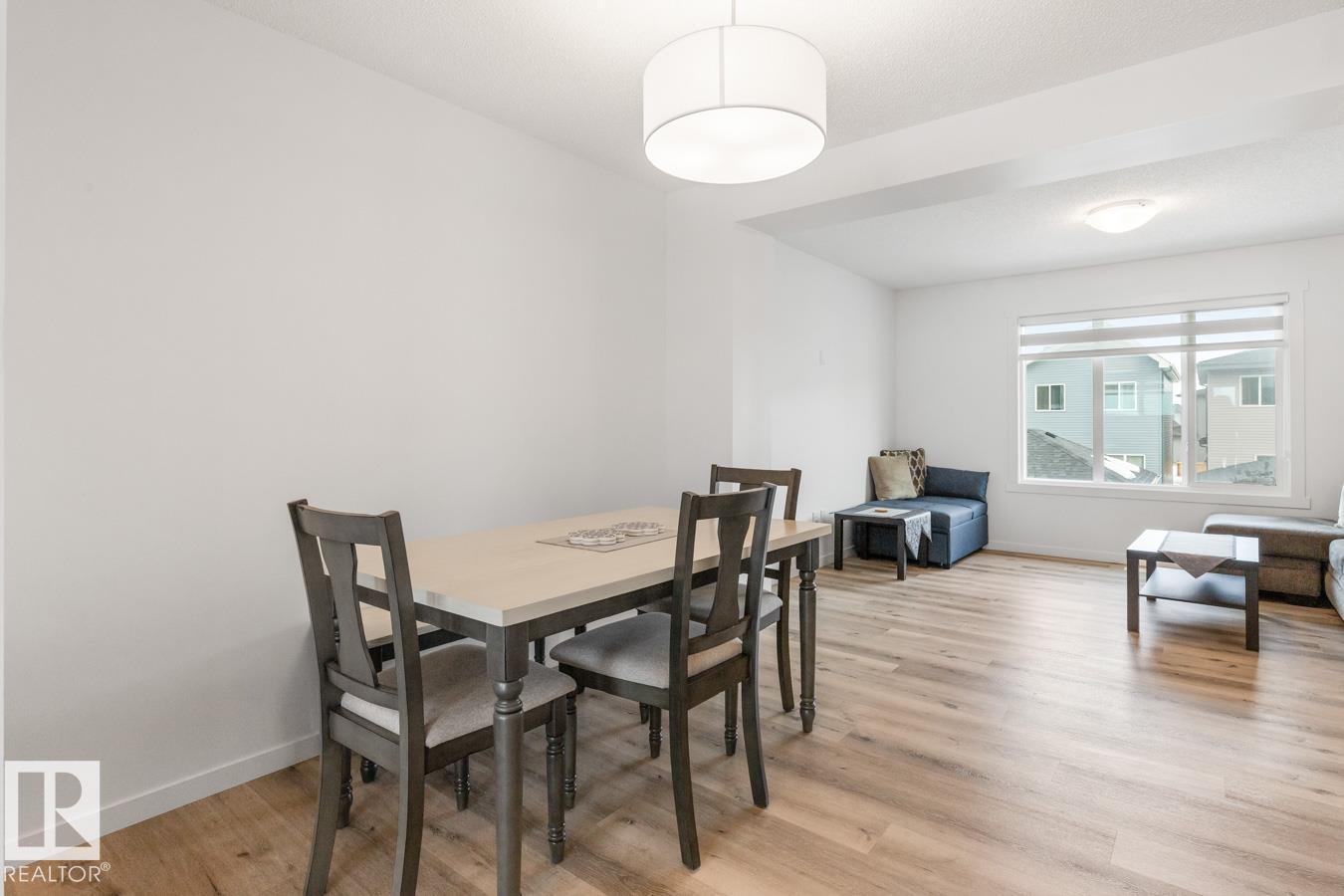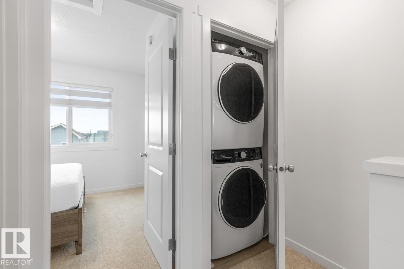 IMMACULATE CONDITION! Spacious, END UNIT property features 3 Bedrooms & 3 Baths. Situated across from future green space & school. Kitchen has been upgraded w/ white QUARTZ COUNTERTOPS, additional cabinetry, tile backsplash & Stainless Steel Appliances. Main Floor is carpet-free (Luxury Vinyl Plank flooring). Upstairs, the Primary Bedroom has mirrored closet doors & a 3-piece Ensuite. A secondary Bedroom & full Bath are also on this floor. Both upper level baths come with Quartz Countertops & LVP flooring. Bonus: UPPER FLOOR LAUNDRY. Main floor plan incl. the 3rd Bdrm, 3rd Bath & extra storage space. Plenty of windows throughout make for a BRIGHT & SUNNY home. Southwest facing Balcony plus a FULLY FENCED YARD. Home also boasts an ATTACHED GARAGE w/ additional parking available on the concrete parking pad. Rivers Edge is conveniently located near the Henday Drive with parks, playgrounds, walking trails & nearby amenities such as schools, recreation facilities and shopping. NOT A CONDO - NO FEES! (id:49203)