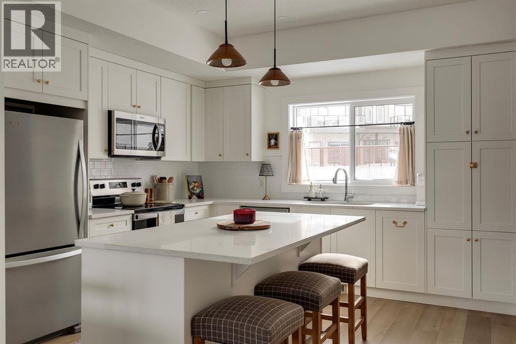 $271.30 MonthlyBacking directly onto River Song's pathway system, this home truly stands out among the rest! A beautiful blend of romantic charm and sophistication, this is a one-of-a-kind upgraded townhome you do not want to miss. From the moment you enter you will not want to leave! The elegant wide plank vinyl floors extend throughout the main level, setting the tone for the home’s cohesive and thoughtfully designed interior. The open concept living and dining spaces are bathed in natural light, enhanced by the end-unit positioning, creating an inviting yet refined atmosphere ideal for both everyday living and elevated entertaining. Designer touches and carefully selected finishes lend warmth, character and timeless appeal. Upstairs there are three generously proportioned bedrooms offering comfort and versatility, including a serene primary bedroom designed for rest and rejuvenation. A 4-piece ensuite, full bathroom and laundry closet complete the upper level, making it the ideal layout for those with children, or who simply value the convenience of house amenities on the same floor. The basement expands the home’s living footprint, providing a beautifully adaptable space perfect for a media lounge, home office, fitness studio, or guest quarters. Outside, a fully fenced backyard offers a sense of tranquility where pets and children can play, BBQ's can be hosted and relaxation on warm sunny days will occur. Enjoy nature right outside your back door with the pathway system being right next to your backyard. The pathway is serene with views of the Rocky Mountains and goes for miles, giving you the option to walk, run or bike. This home is the perfect option for those with pets as the condo corp is extremely pet friendly plus the added feature of a fenced backyard. Additional features include A/C, upgraded interior touches and over 1800 sq ft of developed living space. All this, and it's only 1 year old! Just move in and enjoy. (id:49203)