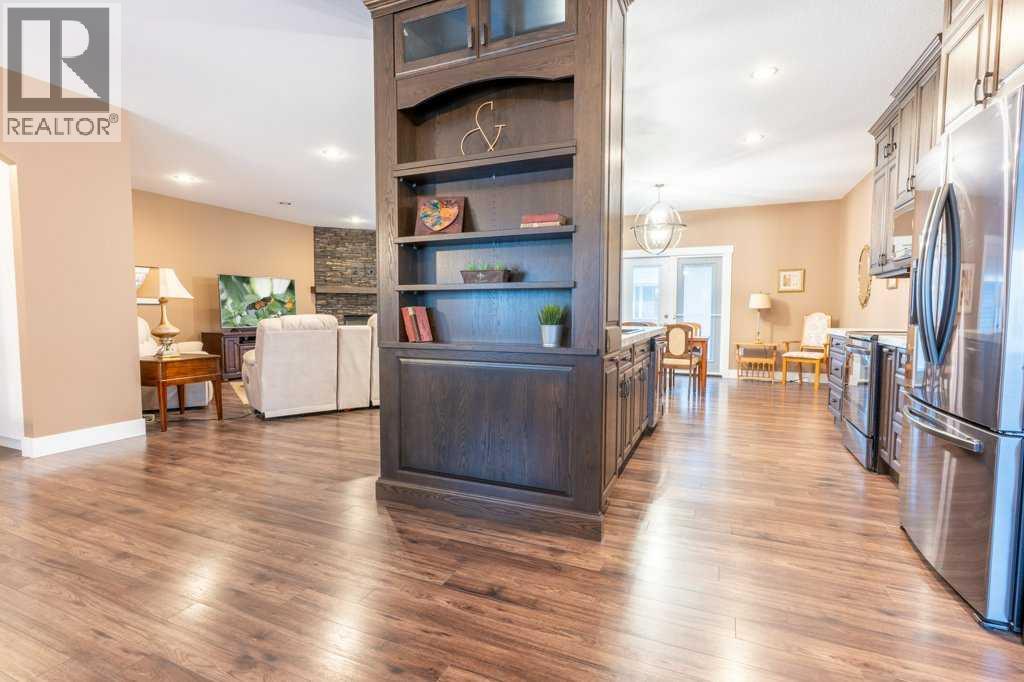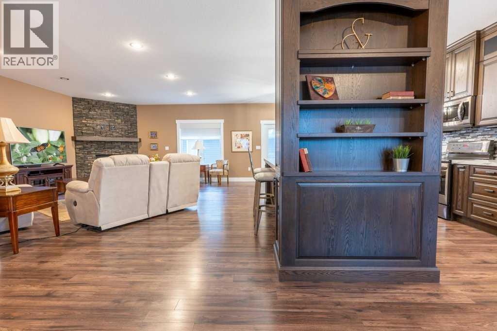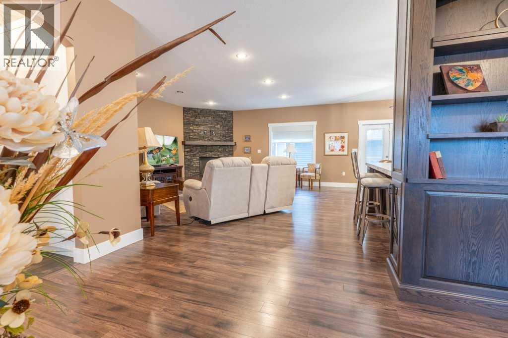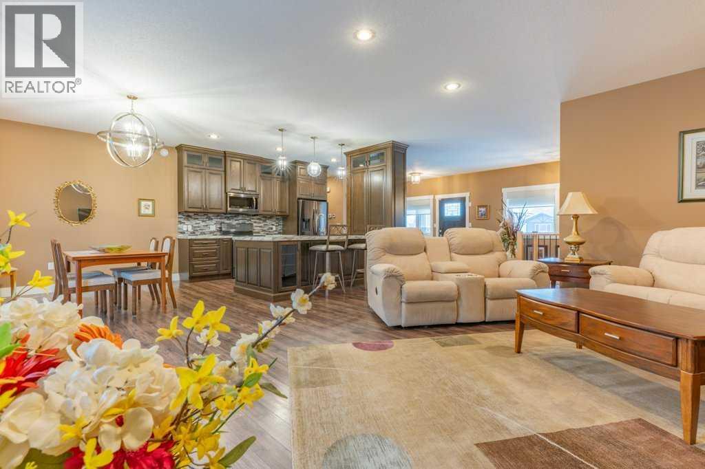 Welcome to this stunning 1578 sq. ft. bungalow located on a corner lot in Westvew Crescent, Bow Island - a former show home by Jade Homes that truly stands out from the rest! From the moment you step inside, you'll be impressed by openness of the layout, starting with the spacious front entryway. Just off the entrance is a bright and functional office, complete with a Murphy bed, perfect for accommodating overnight guests while maintaining everyday workspace convenience. The main floor features a beautiful primary bedroom retreat with a luxurious five-piece en suite, offering comfort and style and a 9 x 4 ft. walk-in closet. The heart of the home is the gorgeous kitchen, showcasing rich dark cabinetry, abundant storage and an open concept design that seamlessly connects the kitchen, dining and living areas. The living room is warm and inviting with a cozy gas fireplace - ideal for relaxing evenings. Also on the main floor you'll find a large rear entrance, with built in cabinets for additional storage, a four piece bathroom and thoughtful design touches throughout that reflect it's show home quality. The fully finished basement offers even more living space with three spacious bedrooms, a generous family room and a dedicated laundry area - perfect for a growing family or hosting guests. The 28'x30' attached heated garage provides ample space for vehicles, storage and projects. Outside, the low maintenance yard is beautifully landscaped with decorative rock and artificial turf, giving you great curb appeal without the upkeep. This exceptional property combines quality craftsmanship, functional design and stylish finishes. A must-see home in Westview Crescent! (id:49203)