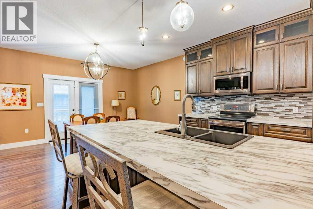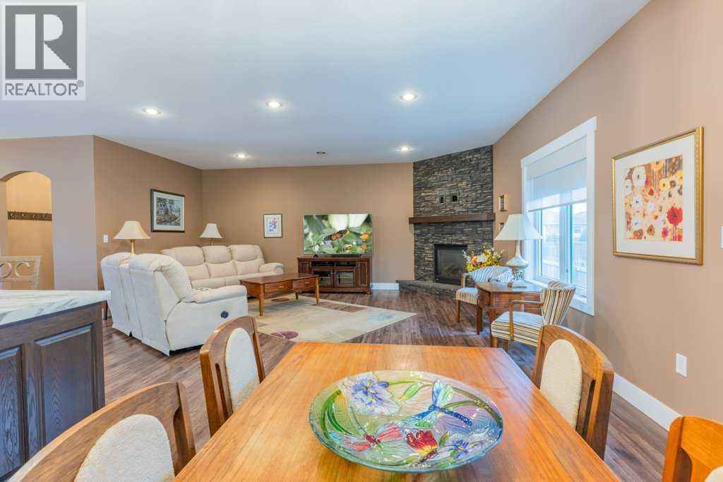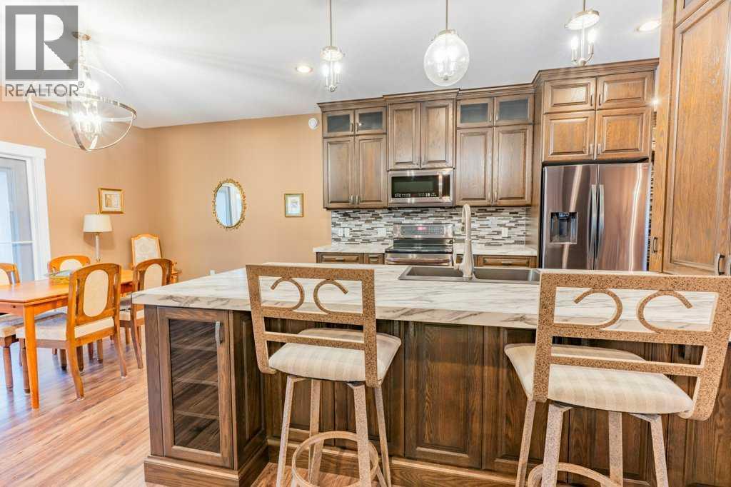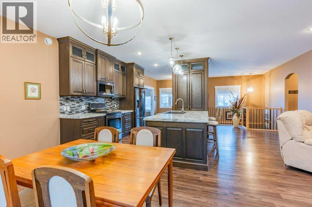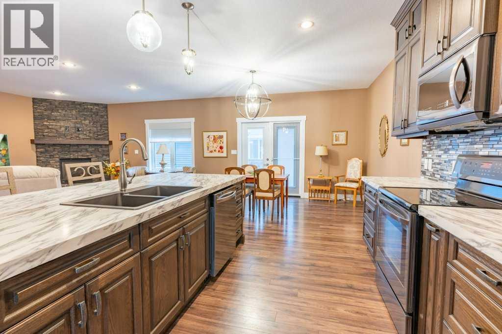 Welcome to this stunning 1578 sq. ft. bungalow located on a corner lot in Westvew Crescent, Bow Island - a former show home by Jade Homes that truly stands out from the rest! From the moment you step inside, you'll be impressed by openness of the layout, starting with the spacious front entryway. Just off the entrance is a bright and functional office, complete with a Murphy bed, perfect for accommodating overnight guests while maintaining everyday workspace convenience. The main floor features a beautiful primary bedroom retreat with a luxurious five-piece en suite, offering comfort and style and a 9 x 4 ft. walk-in closet. The heart of the home is the gorgeous kitchen, showcasing rich dark cabinetry, abundant storage and an open concept design that seamlessly connects the kitchen, dining and living areas. The living room is warm and inviting with a cozy gas fireplace - ideal for relaxing evenings. Also on the main floor you'll find a large rear entrance, with built in cabinets for additional storage, a four piece bathroom and thoughtful design touches throughout that reflect it's show home quality. The fully finished basement offers even more living space with three spacious bedrooms, a generous family room and a dedicated laundry area - perfect for a growing family or hosting guests. The 28'x30' attached heated garage provides ample space for vehicles, storage and projects. Outside, the low maintenance yard is beautifully landscaped with decorative rock and artificial turf, giving you great curb appeal without the upkeep. This exceptional property combines quality craftsmanship, functional design and stylish finishes. A must-see home in Westview Crescent! (id:49203)