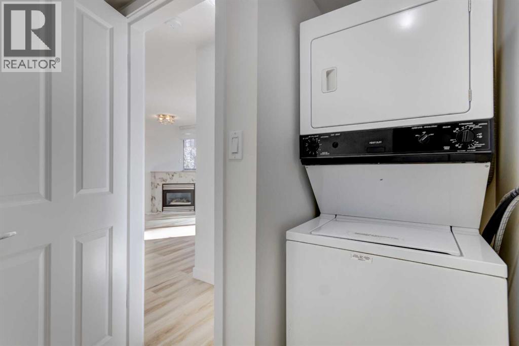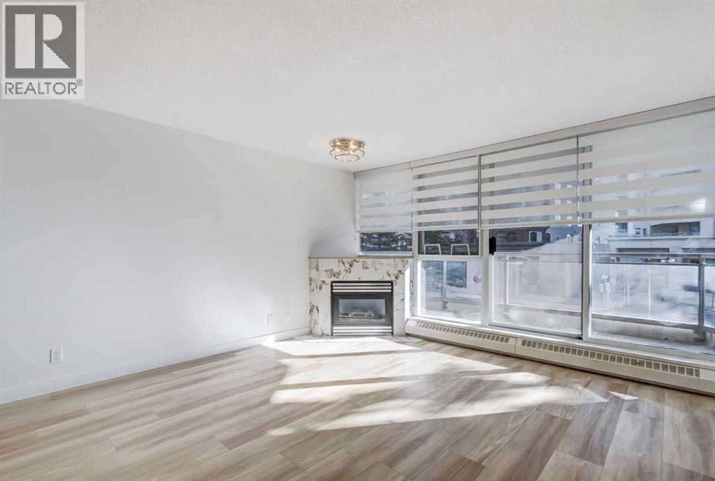 $785.52 MonthlyWelcome to this beautifully renovated 2-bedroom, 2-bathroom condo in The Marquis, ideally located in the desirable west end of downtown. Offering nearly 1,000 sq ft of bright, open-concept living space, this stylish unit has undergone approximately $30,000 in quality upgrades. Recent renovations include NEW stainless steel appliances (stove and fridge), newer dishwasher and microwave, NEW kitchen cabinetry and backsplash, NEW bathroom vanity and sink, NEW closet doors, NEW lighting, NEW window coverings, NEW paint throughout, and NEW durable vinyl plank flooring that complements the cozy gas fireplace perfectly. The thoughtfully designed layout is both functional and inviting. The spacious primary bedroom features a full ensuite and direct access to the private, south-facing balcony surrounded by mature trees for added privacy. The second bedroom is ideally positioned near the second full bathroom, making it perfect for guests, roommates, or a home office. Enjoy an unbeatable urban lifestyle just steps from the Bow River pathways and only a two-minutes to the C-Train within the free fare zone. Added conveniences include easy stair access to avoid elevator wait times and close proximity to the titled underground parking stall. Building amenities include a fitness center, yoga studio, social/party room, landscaped courtyard, secure bike storage, and visitor parking. Pet-friendly (with board approval). An exceptional opportunity for professionals, downsizers, or investors seeking turnkey living in a prime downtown location. (id:49203)