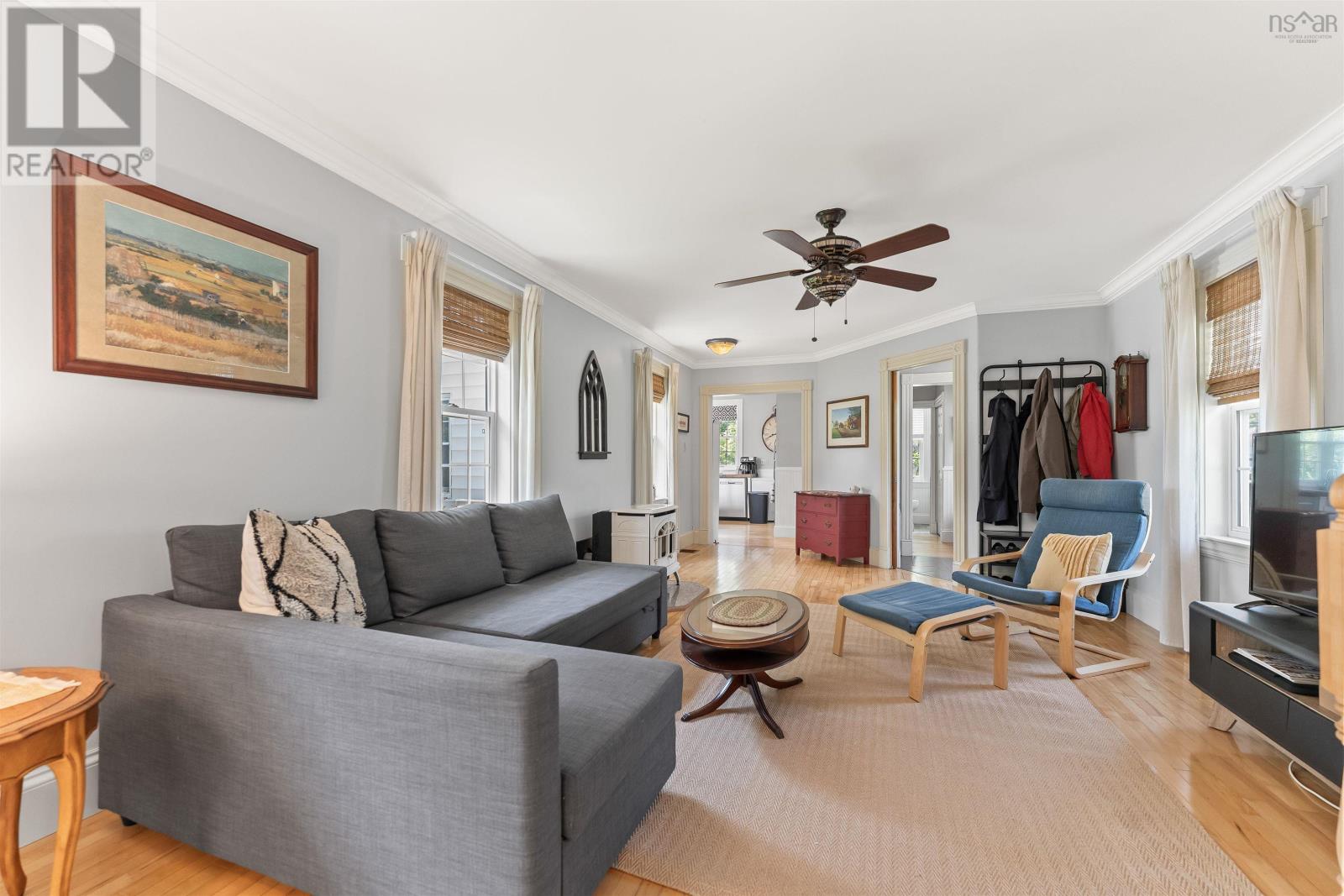 Step into the timeless charm of the Manse House a beautiful home in the heart of Milford, Nova Scotia. Rich in history, this century home has been lovingly maintained and thoughtfully updated, offering a rare blend of elegance, comfort, and classic East Coast character. Inside, youll find original details that tell a storywoodwork with history, sun-filled rooms with personality, and a layout that invites connection. The main level offers a spacious family room, formal dining room, cozy office, elegant kitchen, half bath, and a large living room perfect for gatherings and quiet evenings alike. Upstairs, four generous bedrooms, an oversized bath with a soaker tub, and upper-level laundry provide function without sacrificing charm. Downstairs, theres even more flexibility with a rec room and an additional finished space currently used as a bedroomideal for guests, hobbies, or a creative studio. Outdoors, the magic continues. The property is beautifully landscaped and dotted with pear and apple trees, berry bushes, and blooming perennials. A covered porch and back deck create the perfect setting for afternoon teas, family BBQs, or peaceful morning coffees. Recent updates, including a brand-new steel roof (June 2025), new water softener (July 2025), paved driveway (2024), extension (early 2000s) ensure long-term peace of mind. This home is also on municipal sewage, making it much easier for maintenance! Set in a welcoming, walkable neighbourhood close to schools, trails, the community centre, and everyday amenities, the Manse House is more than a homeits a piece of Nova Scotia history waiting to be cherished. (id:49203)