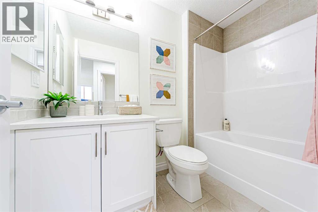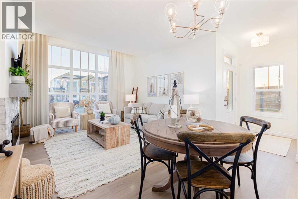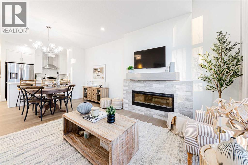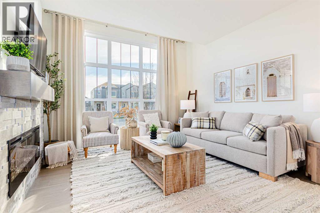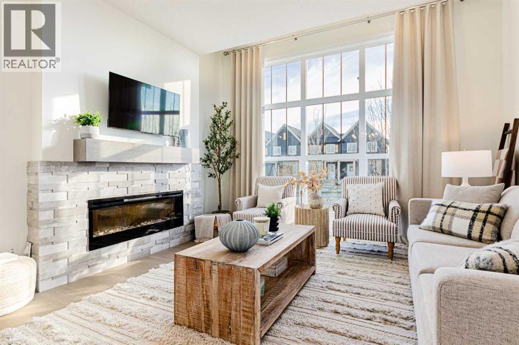 Welcome to the Jasper by Genesis Builders, a beautifully designed townhome with no condo fees in the heart of Bayview. Offering 1,354 sq. ft. of above-grade living space, this home combines modern finishes, functional design, and unique features like a rooftop patio and a 20' x 22' attached double garage. The basement includes 9' ceilings and is ready for your ideas. The main floor offers open-concept living with an inviting layout that’s both bright and practical. The kitchen is finished with stone countertops, stainless steel appliances, full-height cabinetry, and a large island with seating, flowing into the dining area and living room. A feature fireplace adds warmth and style, making the space perfect for both entertaining and everyday living. A half bath, storage, and direct garage access complete this level. Upstairs, the primary suite includes a walk-in closet and private ensuite with a large tiled shower. Two additional bedrooms, a 4-piece bath, and a conveniently located laundry space complete the upper floor. The rooftop patio above the garage provides a private outdoor retreat for relaxing or entertaining. Bayview is one of Airdrie’s most exciting communities, with pathways, playgrounds, an outdoor amphitheatre, basketball courts, and tennis courts that convert to a skating rink in the winter. With easy access to schools, parks, and the canals, Bayview offers both lifestyle and convenience. *Photos are representative colors and finishes may vary. Area size was calculated by applying the RMS to the blueprints provided by the builder. Similar Jasper model is currently available at 2150 Bayview Drive. Taxes to be assessed. (id:49203)