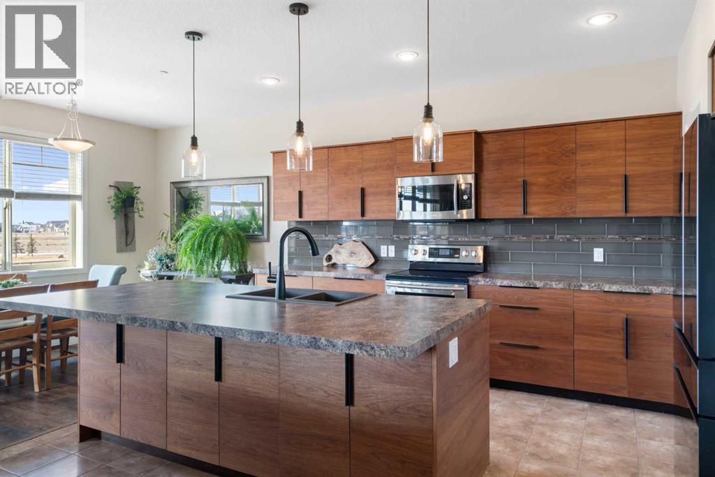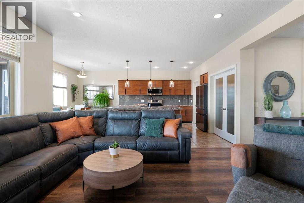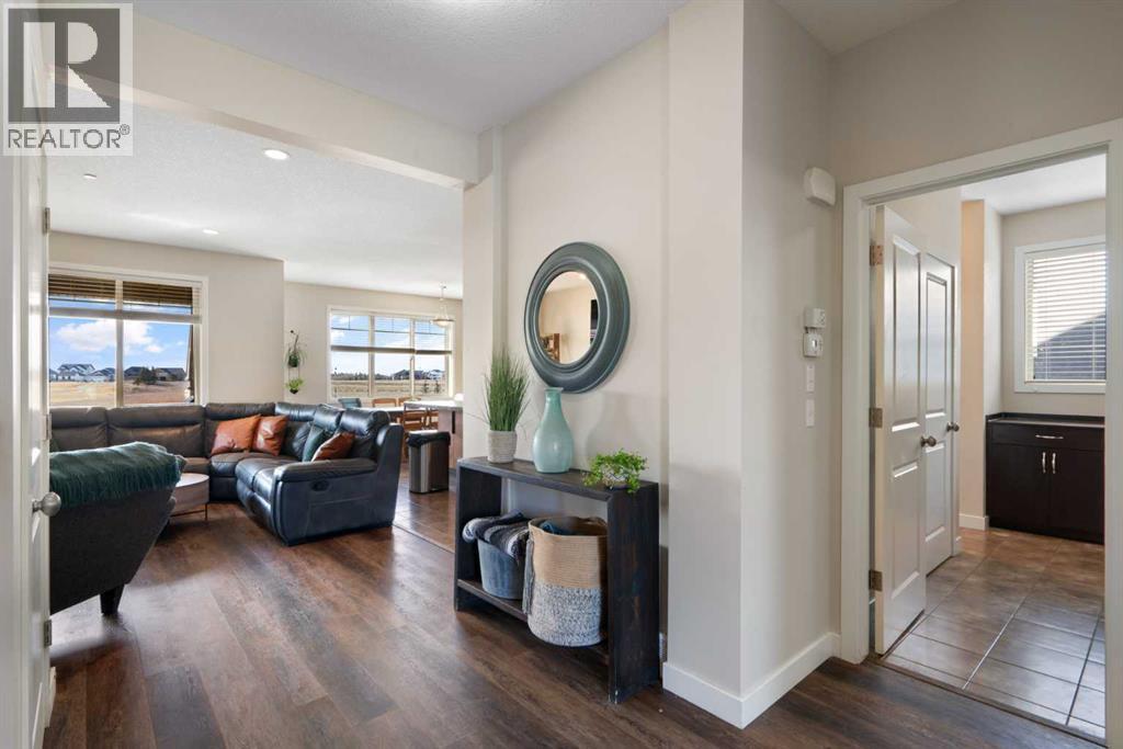 MOTIVATED SELLER – Unbeatable Value at $329/sq. ft. in Lakes of Muirfield.Why wait 10+ months for a new build when you can move into this luxury golf-course home today? Backing directly onto the prestigious Muirfield Lakes Golf Course within the scenic community of Lakes of Muirfield, this custom 2-story home offers over 2,200 sq. ft. of finished living space at nearly $200k less than comparable new construction.Property Highlights:GOLF COURSE LIVING: Located in the heart of Lakes of Muirfield, enjoy a southwest-facing backyard with unobstructed views of the greens and signature Alberta sunsets.MODERN OPEN CONCEPT: The main floor features soaring windows, an executive kitchen with an oversized island, a walk-through pantry, and a dedicated home office/tech room.UPPER LEVEL LUXURY: Features a massive bonus room and three king-sized bedrooms. The primary retreat includes a spa-inspired ensuite that connects directly to the laundry room for maximum convenience.OUTDOOR & GARAGE: Includes a covered rear deck and a fully landscaped yard (saving you $15k–$20k in immediate costs) plus a heated oversized double garage.Location & Lifestyle:Experience the peace of Lakes of Muirfield living, located just 20 minutes from Calgary, Airdrie, and Strathmore. Skip the rising costs of building materials and the uncertainty of construction timelines.Immediate possession is available. This is the best equity-building opportunity in the community—schedule your private showing today! (id:49203)