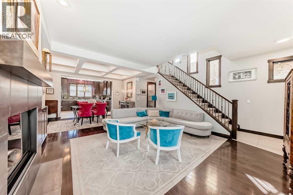 DARLING....If you've ever fantasized about being in a film with Audrey Hepburn, here's your chance -- WELCOME TO 'BREAKFAST AT TIFFANY'S!'-- This classy Killarney In-fill has 4 Bdrms (3+1), 3.5 baths, 2900 ft2 of developed space, a fully developed basement and Double Garage. Buyers will notice the abundant natural light at the entranceway (4 extra windows beside the staircase and skylight above the 2nd floor landing), high ceilings, iron spindles and hardwood flooring throughout the main floor living areas. The main floor den/flex room has 2 hidden sliding doors and overlooks the East facing front porch (rare for in-fills). The family room has a tile-surround gas fireplace, mantle and built-in cabinets. The center-peice Dining Room steals the show with its DRAMATIC COFFERED ceilings and recessed lighting. Everyone will love the electrifying and smoky 'CRIMSON-RASPERRBY' 2pc bath. Spacious Island kitchen has granite countertops (seats 4), espresso cabinetry (capped to-the-ceiiling), hexagonal mirrored backsplash, stainless appliances, upgraded in-cabinet storage (Lazy Susan) and of course... an essential wine fridge for entertaining. Back mud room has tile flooring, closet and seating bench. TIFFANY BLUE, professionally soundproofed Master Bedroom with show-stopper TRAY CEILINGS, electronic window coverings/black out blinds + large walk-in closet (11 feet deep) --because every movie star needs their sleep.-- 5pc ensuite has tiled shower stall w/ glass door, separate soaker tub, his/her sinks (w/ makeup desk) and separate WC. Roughed-in laundry room w/ sky light (currently a sauna room), 2 large bedrooms and an additional 5pc bath up. Professionally finished basement with HEATED FLOORS, massive media/family room (wall of cabinets, granite counters, wet-bar and beverage fridge), large 4th bedroom w/ walk-in closet, 4pc bath + separate laundry room w/ sink. West facing back yard. Walking distance to Killarney pool, LRT station, schools, parks and trendy 17th a venue restaurants & pubs. Don't forget to visit our 3D tour and view the floorplans in the supplement section! ***OPEN HOUSE THIS SUNDAY MARCH 29TH 2-4PM *** (id:49203)