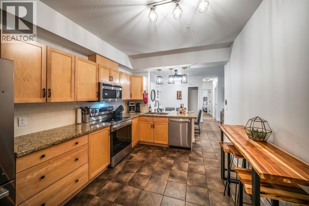 $1,157.53 MonthlyPositioned within the popular Grizzly Lodge at The Lodges of Canmore, this spacious short term rental use, three-bedroom, two-bathroom condominium offers an exceptional opportunity to generate income while owning a retreat in the Canadian Rockies. Offered at $1,450,000 + GST. With 1,188 sqft of single-level living, the residence is thoughtfully configured to accommodate up to eight guests—ideal for the strong demand from visitors exploring Banff National Park, Lake Louise, and the Bow Valley.Recently refreshed with new flooring, lighting, and paint, the home presents a welcoming alpine aesthetic designed for both guest comfort and owner enjoyment. The open living and dining areas extend to a generous private balcony, providing space to relax after a day of skiing, hiking, or exploring the mountains. Two owner lock-offs in the kitchenallow convenient storage of personal items while the property is operating as a vacation rental.For investors, the property offers compelling performance potential with gross pro-forma revenue estimated at approximately $185,000+ annually, supported by Canmore’s thriving year-round tourism market.Guests and owners alike benefit from the resort-style amenities at The Lodges of Canmore, including an outdoor pool, hot tubs, fitness centre, and secure underground parking. From this central location, visitors can walk to Main Street, local shops and restaurants, or access the extensive Bow River trail network just steps away.Combining strong revenue potential with the lifestyle of the Canadian Rockies, this turnkey property offers the rare ability to generate meaningful income while maintaining a personal mountain base for your own escapes to Canmore. (id:49203)