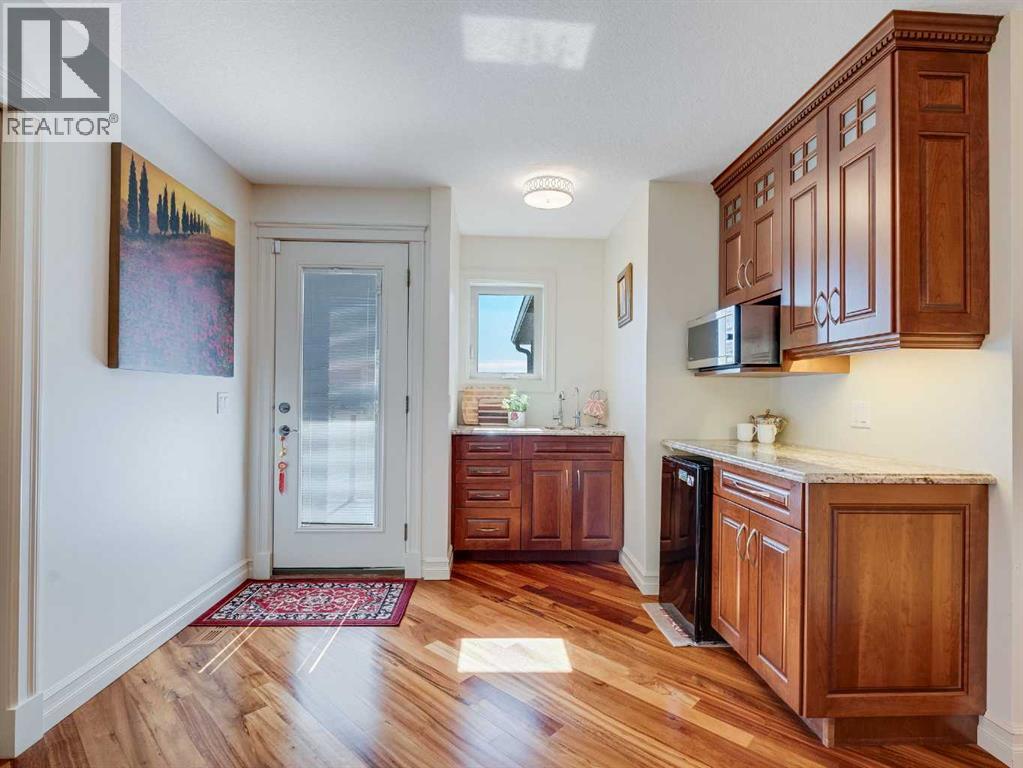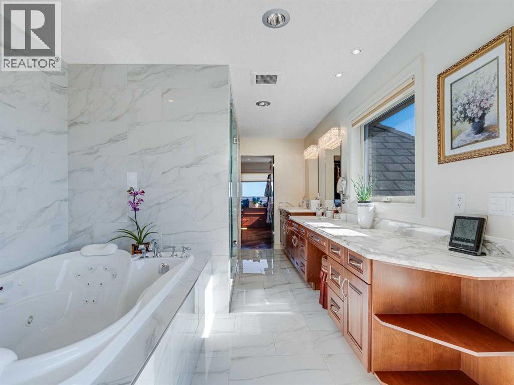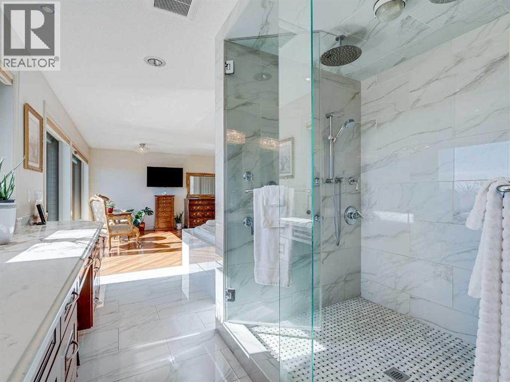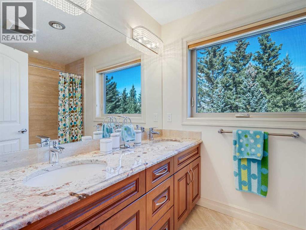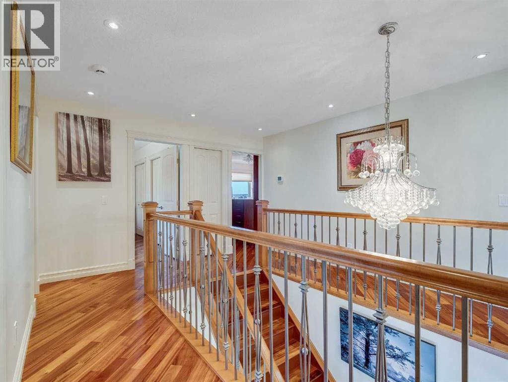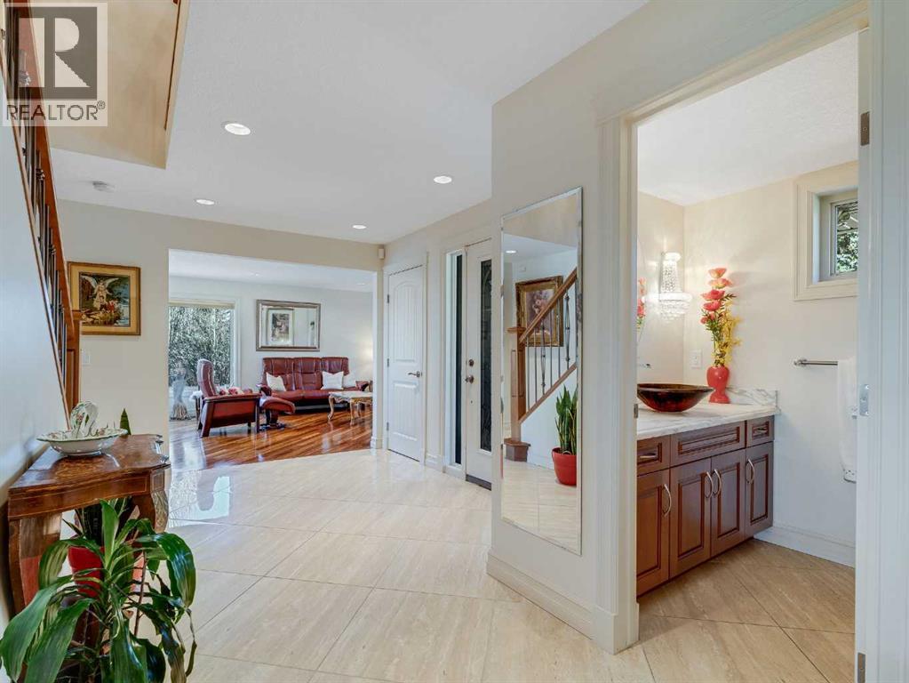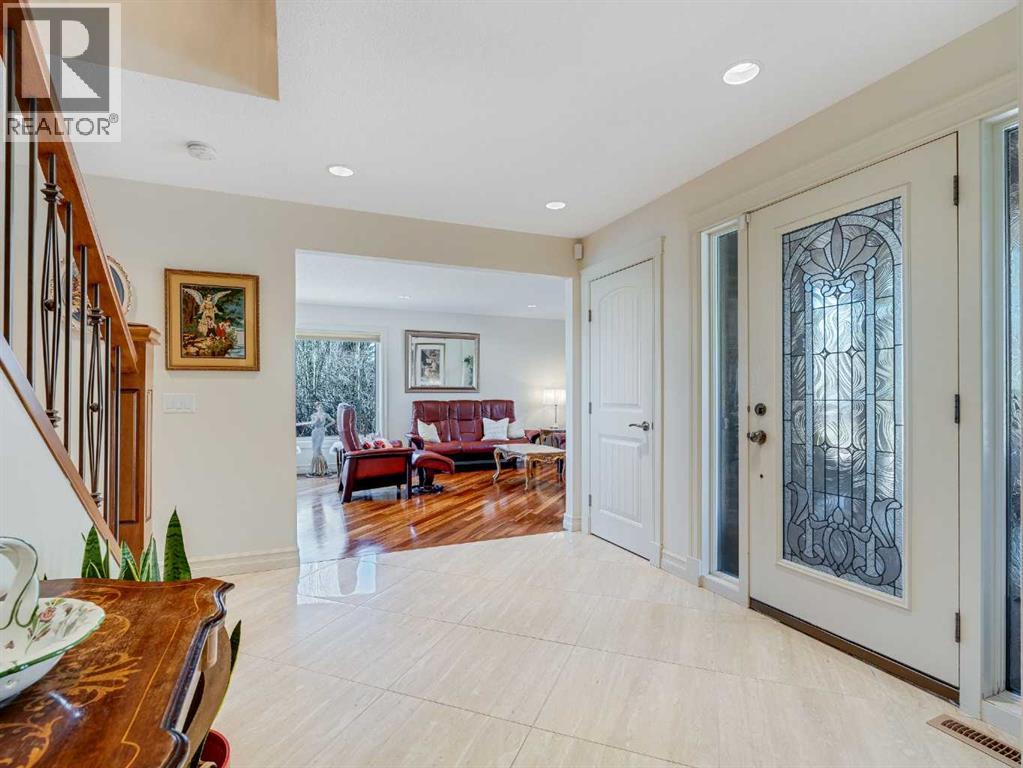Rare luxury estate on 4.72 acres in one of Springbank’s most coveted locations. Enjoy unobstructed Rocky Mountain views while being minutes to Calgary and steps to Springbank School, the Edge School, arenas, daycare, church, and the community centre.A gated entrance opens to a circular driveway, quad detached garage, generous guest parking, manicured grounds, a walking garden, and mature trees. Built for longevity and low maintenance, the home features a full brick exterior, slate-style rubber roof (2011, transferable 50-yr warranty), triple-pane windows, 2x6 plywood sheathing, and all copper wiring. Country living is worry-free with a high-producing well, cistern, whole-home reverse osmosis system, UV purification, multi-stage filtration, and backup power systems.Inside, a grand foyer leads into elegant living and dining areas finished with site-finished Brazilian hardwood. The chef’s kitchen offers custom cabinetry, Sub-Zero/Wolf appliances, exotic granite, induction cooktop, dual wall ovens, porcelain sink, large working/eating island, and a walk-in pantry, with direct access to a spacious view deck ideal for outdoor dining.The main floor also includes a private suite with bedroom, bathroom, kitchenette, living area, and separate entrance—perfect for guests, extended family, or a nanny. Upstairs are three bedrooms including a stunning primary suite with panoramic horizon views, spa ensuite, and custom dressing room.The fully finished walkout level features expansive recreation areas, new laminate flooring, and flexible layout options. The lower level is protected with a Doug Lacey/Groundworks waterproofing system, two sump pumps, and a transferable dry-basement warranty. Additional mechanical upgrades include all new plumbing and fixtures (2011–2012), upgraded lighting, two high-efficiency furnaces, and a well-maintained septic system.A timeless, meticulously upgraded estate in an exceptional setting—book your private viewing today. (id:49203)