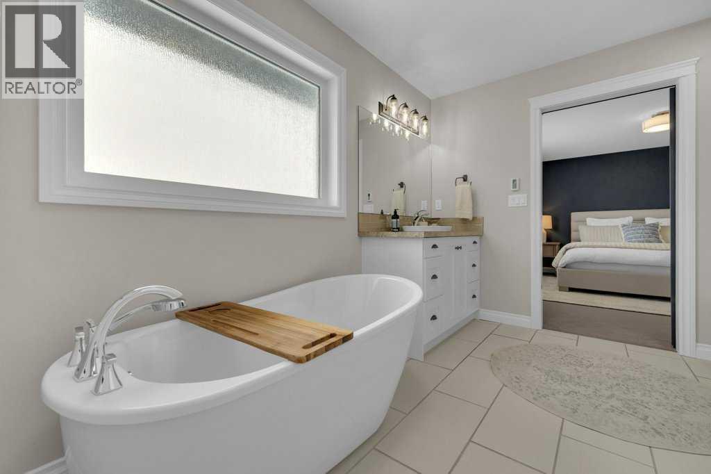 Welcome to your forever home in the heart of Sylvan Lake. This impeccably maintained, 5-BEDROOM custom-built residence offers about 3000 square feet of fully finished living space, combining high-end luxury with industry-leading efficiency.Built with an ICF (Insulated Concrete Form) foundation, this home is designed for the Alberta climate. This means superior energy efficiency, significantly lower utility bills, and a basement that stays remarkably warm and quiet year-round. Say goodbye to damp, cold lower levels and hello to a rock-solid, eco-friendly fortress.The open-concept main floor is anchored by a chef-inspired kitchen featuring gleaming quartz countertops, premium stainless appliances, and sophisticated built-in cabinetry. Organization is effortless with a large WALK-THROUGH pantry that connects directly to the mudroom, making grocery runs from the garage a breeze. A stylish powder room completes the main level, ideal for guests.The Primary RetreatThe upper-level primary suite is a true sanctuary. Pamper yourself in the spa-like ensuite, complete with luxury in-floor heating, a modern free-standing tub, and a sleek walk-in shower. It’s the perfect place to unwind after a long day.Fully Finished Lower LevelThe basement isn't just "finished"—it's an extension of the home’s luxury. Featuring in-floor heating to keep things cozy during winter months, this space offers two additional large bedrooms and a spacious family room, perfect for movie nights or a dedicated play area.Exterior & LocationThe garage is also equipped with in-floor heating, a dream for any hobbyist or for those frosty morning commutes. The property backs directly onto an elementary school, providing a massive, unobstructed "backyard" view and the ultimate convenience for families with young children—watch the kids walk to school from your back deck!Key Features at a Glance:•5 Bedrooms / [X] Bathrooms•ICF Foundation: High R-value and structural integrity.•Triple-Zone In-Floor Heat: Garage, Basement, and Ensuite.•Quartz countertops throughout the kitchen•Chef’s Pantry: Walk-through access from the garage.•Prime Location: Steps from the school and minutes from the lake.This is a rare opportunity to own a high-performance custom home in one of Sylvan Lake's most sought-after family locations. Move-in ready and built to last a lifetime. (id:49203)