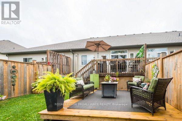 Freehold townhouse, built in 2018, conveniently located between Trenton and Belleville. Open concept living / dining / kitchen, with 9 ft ceilings throughout. The kitchen offers a walk - in pantry and seating at the island. The living area leads to the deck and fully fenced backyard. The spacious primary suite will impress. Offering a generous walk-in closet and a 3-pc ensuite. Off the foyer is the main-floor laundry room, a 2-pc bath and stairs to the lower level. The lower level is builder-finished, with a large recreation room, bright bedroom, cozy den/office and 4-pc bath. Needing in law space? The utility room has potential for a kitchenette area. Outside, sit back and relax on the multi tiered decks in a fully - fenced yard. Economical, and easy maintenance living at its best. (id:49203)