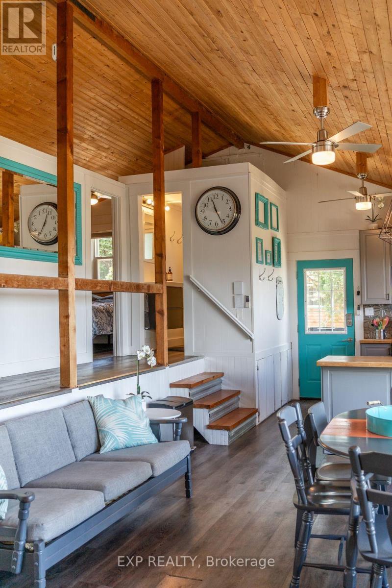 This fabulous and stylish Licensed 3 season cottage (S.T.A. Short Term Accommodation) is ready and waiting for its next owners! Enjoy a light filled, open concept, 3 bedroom, 1 bath, cottage that is fully turn key. Being sold with all furnishings and decor so you can jump right in and enjoy your investment or family cottage. The Raven's Nest Cottage has been a bustling "Grandfathered Short Term Accommodation" for over 8 years, the income generation has been consistent and thriving since 2017. The views from every room calm your soul the moment you walk in, the wood-stove & baseboard heat in the central living area is perfect for any chilly nights. Updated kitchen, luxury vinyl floors throughout, cozy family room for movie nights and cottage games. Wood clad cathedral ceilings, newer metal roof, uv water filtration system, wrap around deck for sun tanning and BBQ days. Newly insulated walls/ceiling and a cozy wood stove have you half way there for winterizing, great potential to make 4 season. Follow the path from the large deck down to your campfire and swing area, continue down the trail to the lake & your chairs on the stone beach. Enjoy the expansive views and life by the lake! It never gets old. Sitting on a private lane with 3 other cottages, all properties have shared, waterfront access. The Raven's Nest, sits the most private of the 3, with tall cedars lining the property, and abundant perennial gardens meandering throughout. Friends and guests will love this perfect little oasis! Income generating from Spring to Fall or enjoy this perfect retreat for yourself. Rental contracts can be discussed further wether desired or not. (id:49203)