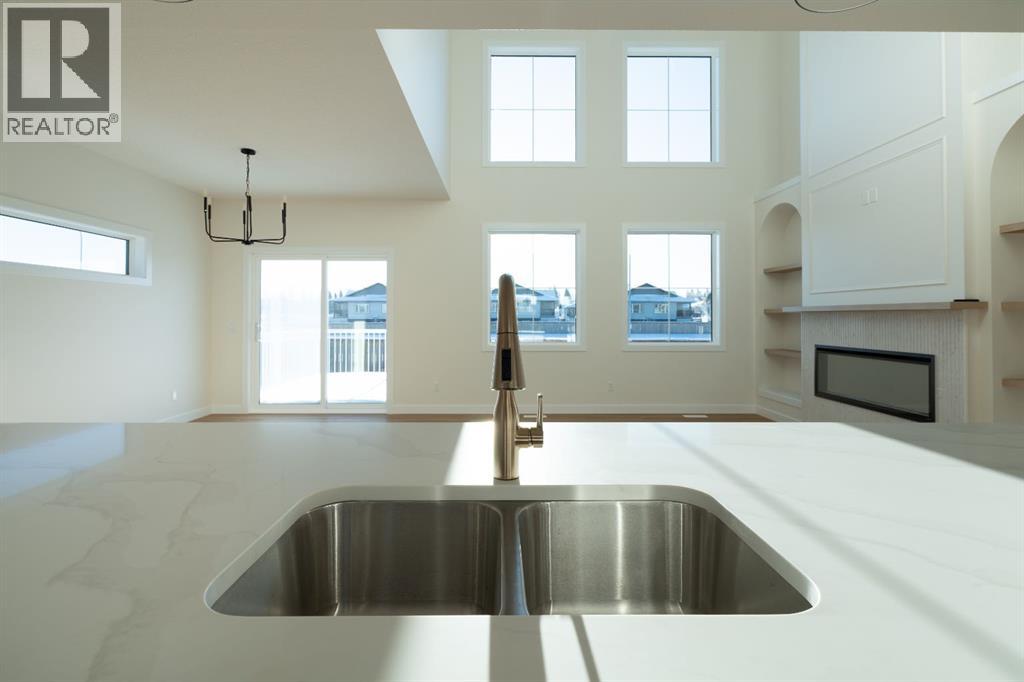 Brand-new, high-end, and truly move-in ready. This 2,004 sq. ft. custom-built home stands out with 3 bedrooms plus a main-floor office, 3 bathrooms, and exceptional attention to detail throughout. The living room makes an immediate statement with soaring ceilings, oversized windows, and a striking floor-to-ceiling fireplace flanked by custom built-in shelving.Designed for both everyday living and entertaining, the kitchen offers generous counter space and a clean, modern layout, while durable vinyl plank flooring runs throughout the home for style and easy maintenance. Upstairs, the primary bedroom retreat features an oversized tiled shower in the ensuite, and all closets include custom built-in organizers for maximum functionality. The conveniently located upper-floor laundry adds to the home’s thoughtful design.Outside, enjoy a large yard fenced on three sides with plenty of room for outdoor living, plus a spacious 26’ x 24’ garage, ideal for vehicles, storage, or a workshop. Premium upgrades include triple-pane energy-efficient windows, quality custom finishes, and a smart, modern layout rarely found in new construction. (id:49203)