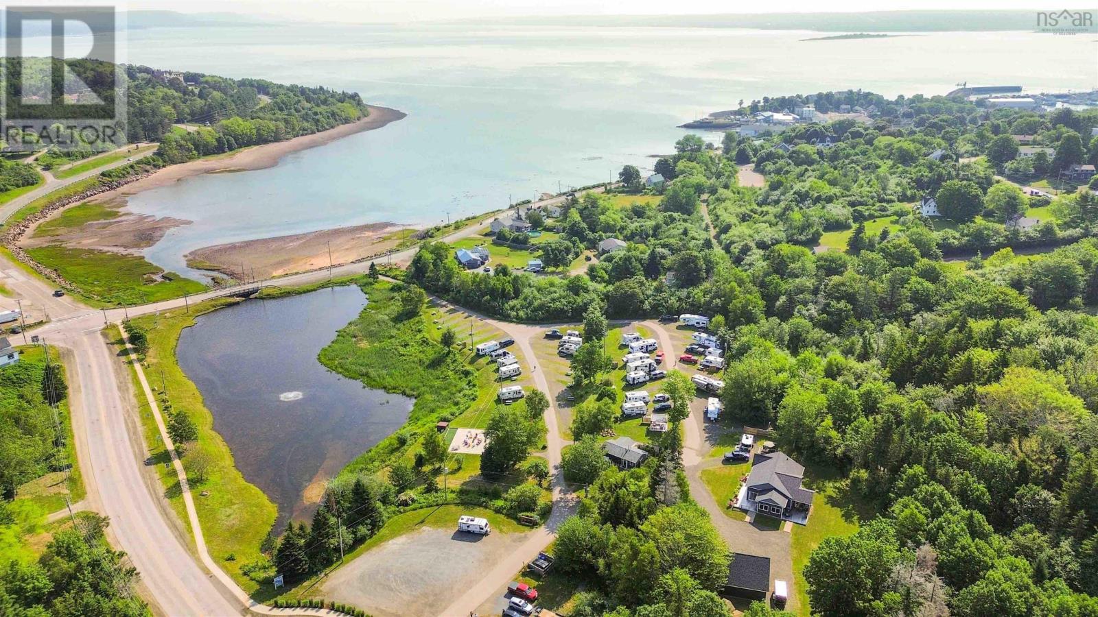Set high above the Bay of Fundy with ocean views, this exceptional estate offers a rare blend of refined residential living and proven hospitality income in one of Nova Scotias most vibrant tourism corridors. At its heart is a beautifully crafted, custom-built home and garage, thoughtfully designed to complement the surrounding landscape while delivering comfort, character, and everyday luxury. Completed in 2023, the 1,630 sq. ft. residence showcases timeless farmhouse charm with antique beams, warm brick accents, and a layout that feels both welcoming and elevated. Large windows frame water views and coastal light, while the homes craftsmanship reflects pride of ownership throughout. The 28' x 32' detached garage provides generous space for vehicles, storage, hobbies or future flexibility. Beyond the home, the property unfolds into Digby Campground, a fully renovated, boutique RV park set across 5.02 acres overlooking a 2-acre pond and the Bay of Fundy beyond. Operating seasonally from May through October, the park features 39 fully serviced, tourism-only sites with an average guest stay of three nights. Since 2022, the campground has seen comprehensive upgrades, including municipal water and sewer hookups, new 30-amp electrical service and drainage, renovated washrooms, laundry facilities, and office space, with shower updates. A newly added guest patio, pergola, firepits, and games area create a welcoming social atmosphere that drives outstanding reviews. The business is efficiently run without salaried employees, supported by a dependable on-site Workamper for weekends and backup coverage. Strategic partnerships with Fraserway RV and Canadream further enhance booking stability and visibility. Just four minutes from the Saint JohnDigby ferry and within walking distance to downtown via a scenic railbed trail, this is also the closest full-service campground to Digby Neck, home to world class whale watching and the dramatic tides of the Bay of Fundy. (id:49203)