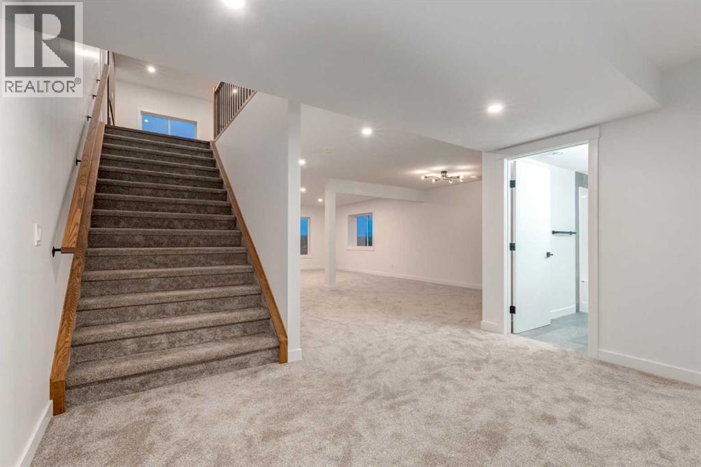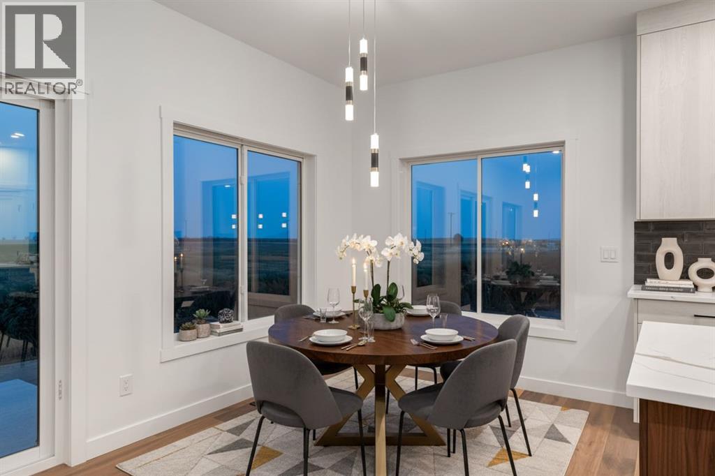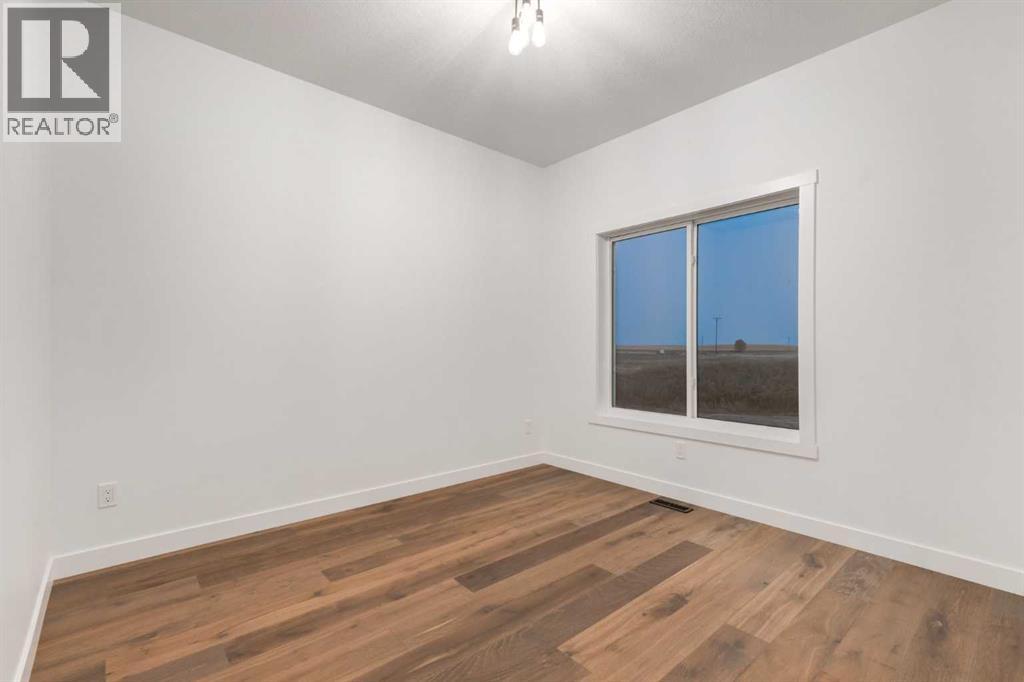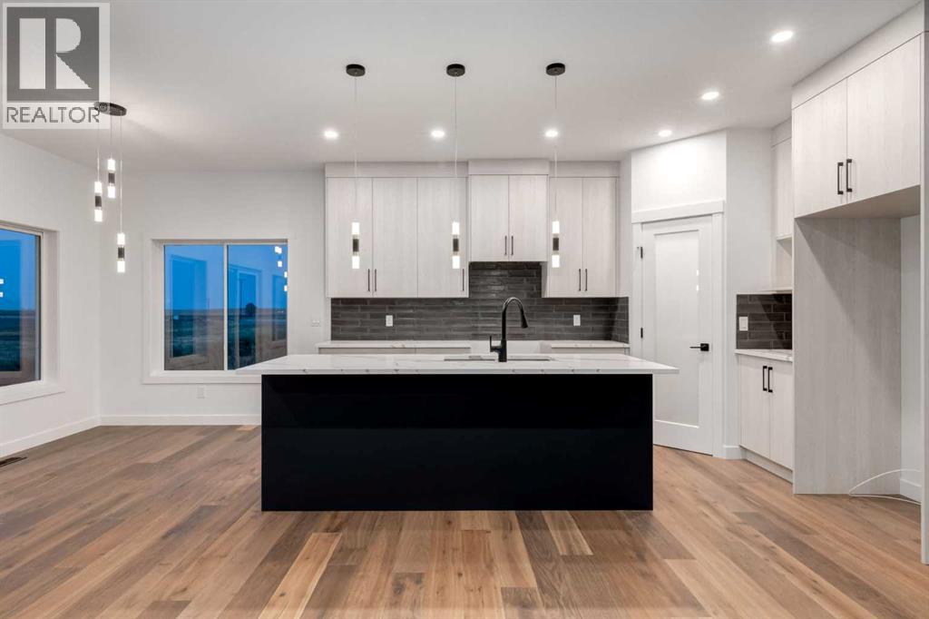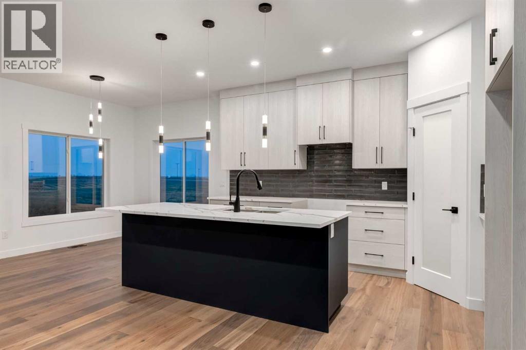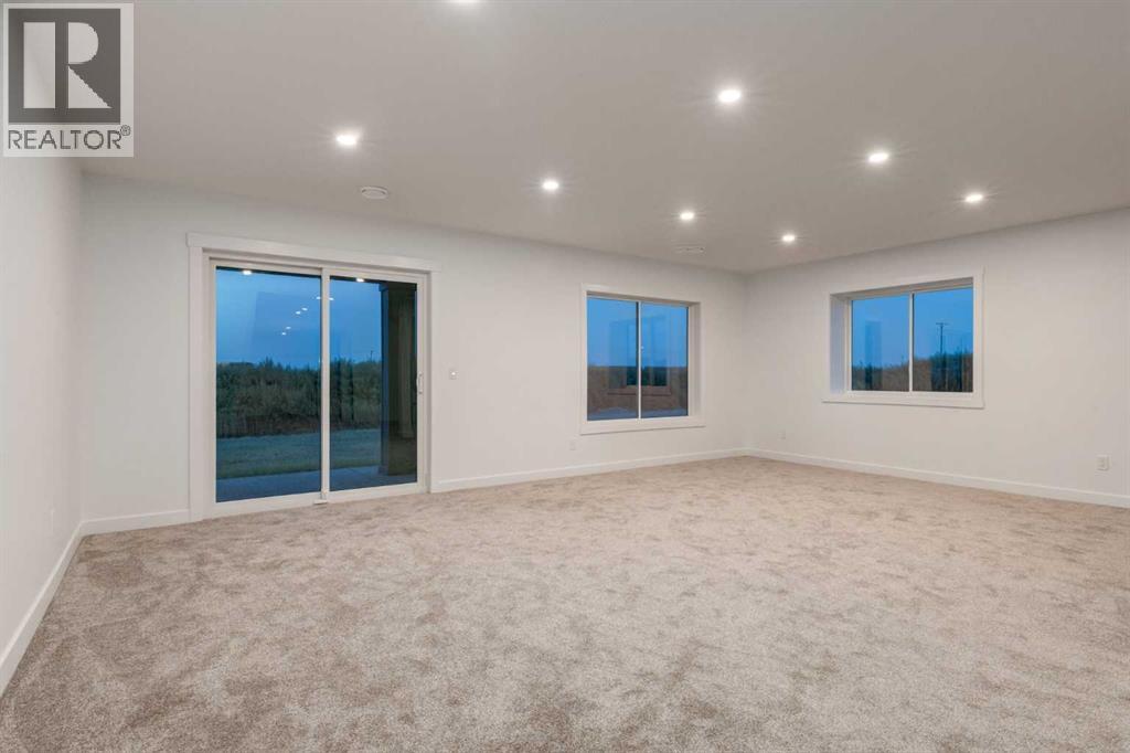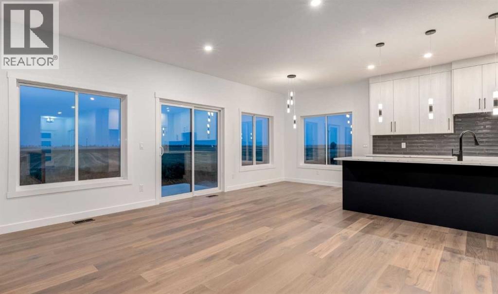 Welcome to Red Tail Rise, one of High River most prestigious estate community where the dream of modern country living meets the convenience of town amenities. Perfectly situated along the Little Bow River Valley, this sought-after neighbourhood offers estate-sized lots, beautiful natural surroundings, and the rare opportunity to enjoy country living within walking distance to town.This custom-built walkout bungalow sits on a generous 0.37-acre pie-shaped lot with a triple garage and exposed aggregate L-shaped driveway. Thoughtfully designed and finished with care, it offers over 3,000 sq. ft. of developed living space filled with natural light, open-concept design, and high-end contemporary finishes.Step inside to a bright and welcoming main floor where the great room showcases soaring windows, an electric fireplace, and seamless flow into the kitchen and dining areas. The chef’s kitchen is the heart of the home, featuring a massive quartz island, walk-in pantry, pot lighting, sleek cabinetry, and a sunny breakfast nook that opens to the upper deck—perfect for enjoying morning coffee or evening sunsets.The primary retreat is a true sanctuary, complete with a spa-inspired 5-pc ensuite boasting a stand-alone soaker tub, glass-enclosed shower, dual vanities, and a custom walk-in closet with built-ins. An additional bedroom, spacious front office/den, full bathroom, and a large mudroom with built-ins complete the main floor.The fully finished walkout basement expands your living space with two additional bedrooms, a 4-pc bathroom, ample storage, and a sprawling family/rec room with direct access to a concrete patio overlooking the landscaped yard. This level is perfect for entertaining, relaxing, or creating a private retreat for guests and family.Every detail of this home reflects quality craftsmanship and thoughtful design—from the expansive windows to the multiple outdoor living spaces, offering a seamless connection between indoor comfort and outdoor enjoyment .Living in Red Tail Rise means more than just owning a home—it’s about embracing a lifestyle of space, serenity, and community, all while being minutes from High River’s schools, shopping, dining, and recreation. Voted one of Canada’s Top 100 Places to Live, High River offers small-town charm, big-city access, and a welcoming community spirit. Calgary, Okotoks, and South Health Campus are just a short drive away, making this location ideal for commuters or those seeking balance between country and city life.Don’t miss this opportunity to own an exceptional custom walkout bungalow in a highly desirable estate community. Whether you’re looking for elegance, functionality, or a place to truly call home, this property delivers it all. (id:49203)