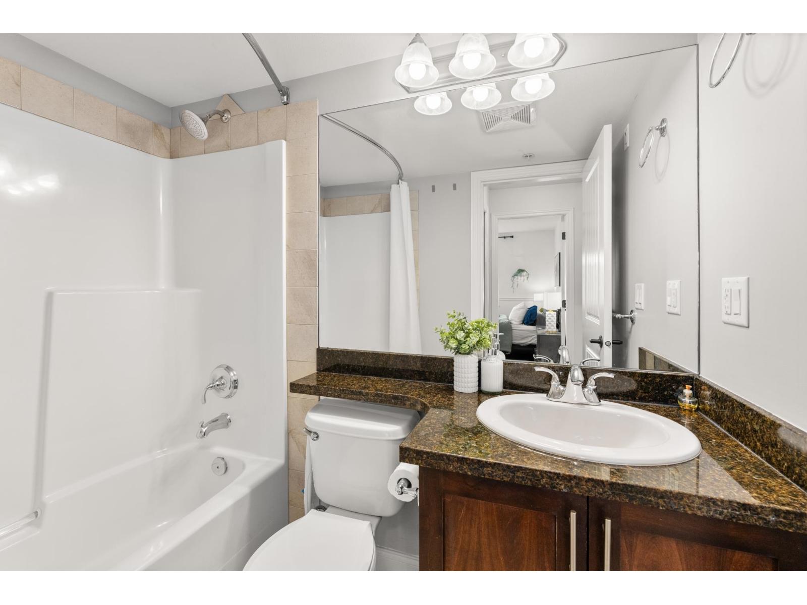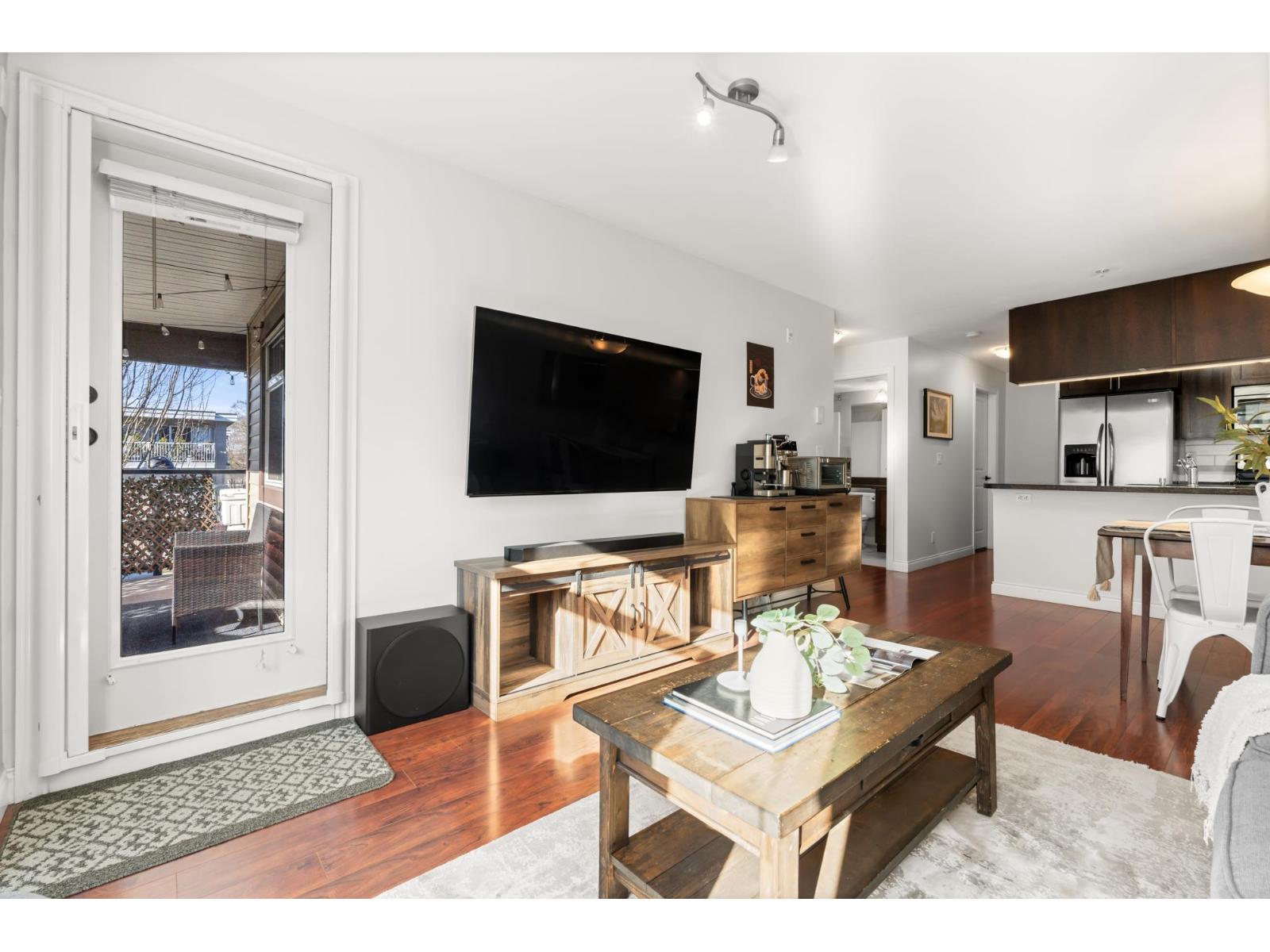 $420.89 MonthlyWelcome to Paddington Station in the heart of walkable Langley City, just steps to shopping, dining and the future SkyTrain. This beautiful 2 bedroom, 2 bath home offers a spacious primary retreat with hardwood flooring and built-in A/C. The elegant kitchen features granite countertops, stainless steel appliances, shaker cabinetry and an impressive walk-in pantry for added storage. The bright living room showcases a large bay window and opens to a sunny south-facing covered deck, perfect for year-round enjoyment. The large second bedroom is has a big closet and bright window. Enjoy resort-style amenities including a gym, party room, meeting room, garden plots and 2 Underground Parking spots one with an electrical plug, in this pet-friendly building. (id:49203)