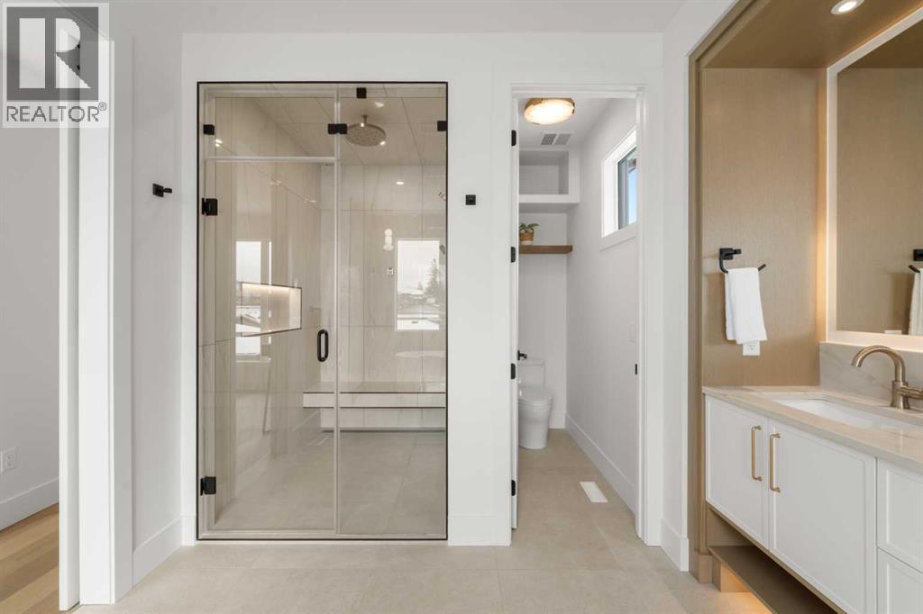 *** OPEN HOUSES: March 6th 4-6pm, March 8th 1-3pm and March 10th 1-4pm *** Located in West Hillhurst, this exceptional three-storey corner-lot home offers over 3,000 sq ft of fully developed living space, including a finished basement and a rare triple car garage.Step inside to a functional front entryway with a storage closet that flows into the dining room, highlighted by a stunning wine display — perfect for hosting. The kitchen is designed to impress, featuring a massive quartz island, premium JennAir appliances, and a seamless layout for everyday living and entertaining. A butler’s pantry with its own sink and ample storage conveniently connects back to the dining area, creating a true entertainer’s setup.The living room is warm and inviting with a gas fireplace and double patio doors leading to the private backyard. At the rear of the home, you’ll find a mudroom with built-in storage and bench seating, along with a 2-piece powder room.The second level hosts the primary bedroom retreat, complete with a luxurious 6-piece ensuite featuring a soaker tub, dual vanities, backlit mirrors, in-floor heating, and a large glass step-in shower. The walk-in closet is fully outfitted with built-in drawers, in-cabinet lighting, and generous storage. This level also includes upper-floor laundry, a full bathroom with a backlit mirror and large countertop, and two additional bedrooms — one with a walk-in closet and the other with built-in storage and windows on two walls, making it ideal for a bedroom, office, or playroom.The third floor offers a private retreat with a built-in media unit, wet bar, 3-piece bathroom, and a large bedroom featuring a custom built-in wall and desk.The fully finished basement includes a media wall with built-ins, a dedicated gym with rubber flooring and wall mirrors, a 3-piece bathroom, and an additional bedroom with a walk-in closet. A standout feature is the basement mudroom with an underground tunnel providing direct access to the tripl e car garage — a practical and convenient touch for winter months.A well-designed home with high-end finishes, thoughtful built-ins, and exceptional functionality, all located in West Hillhurst. (id:49203)