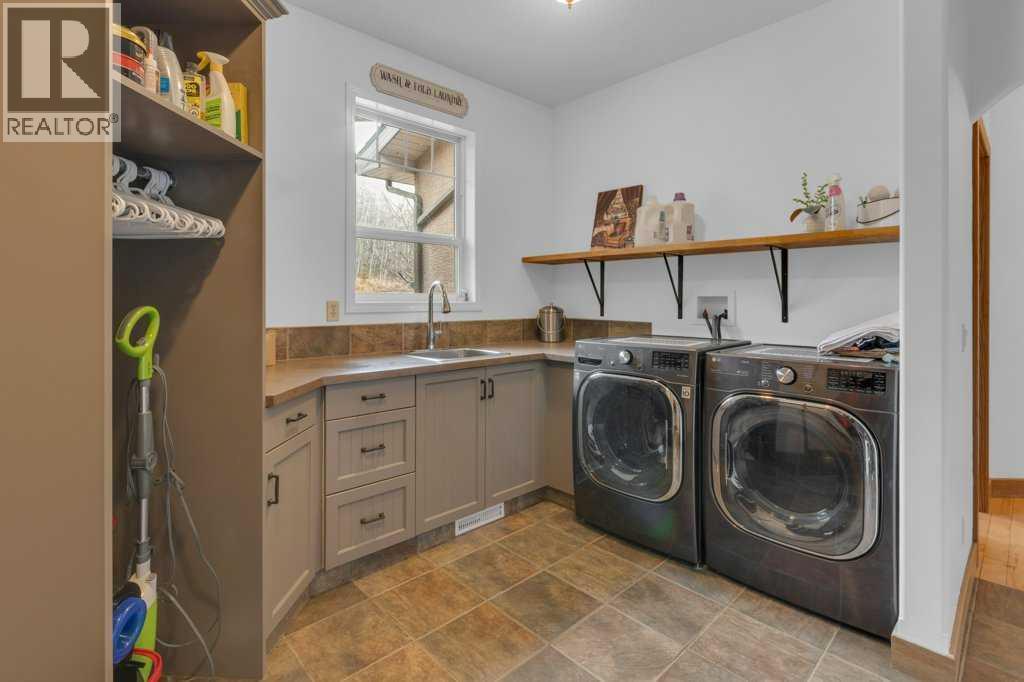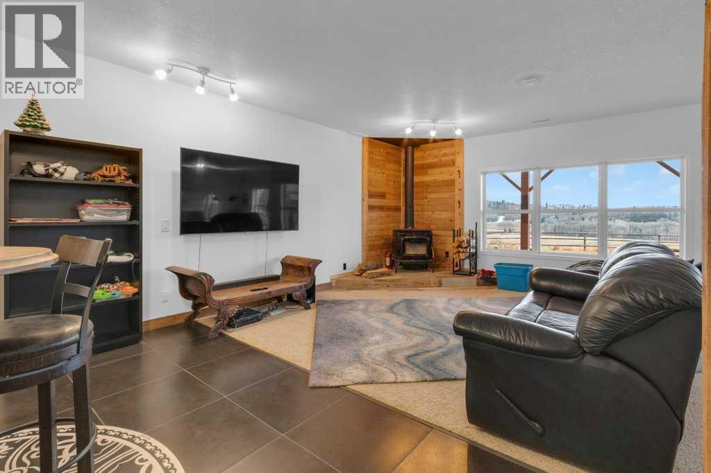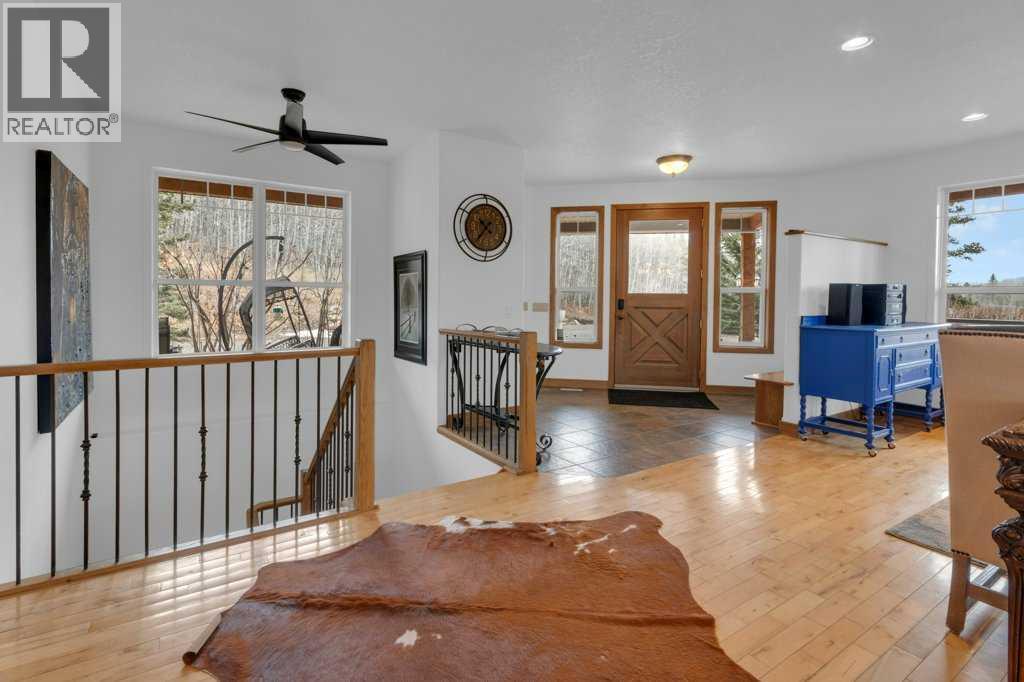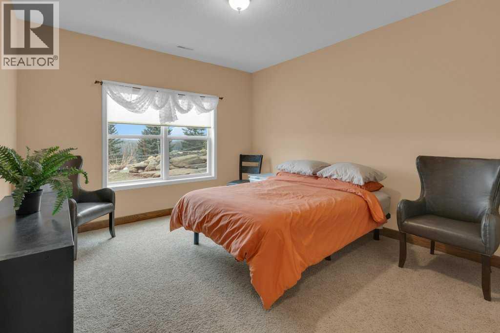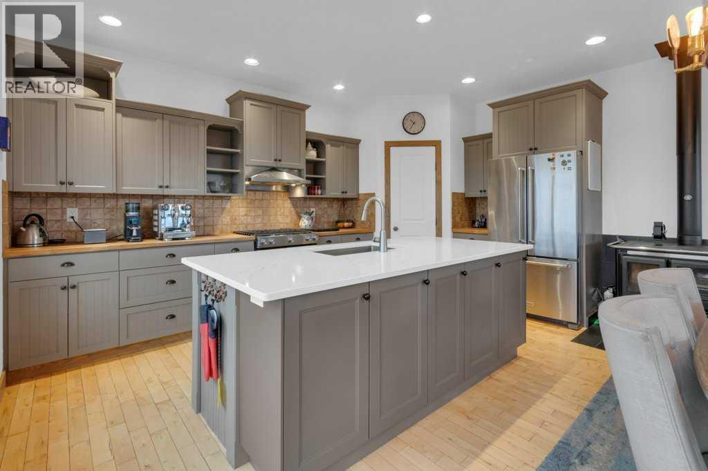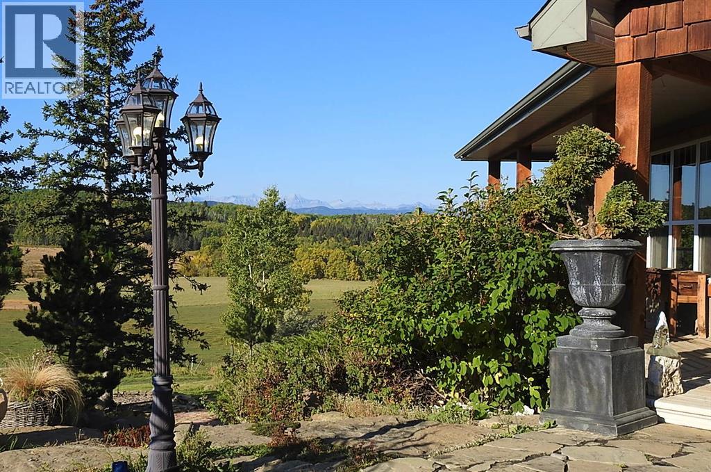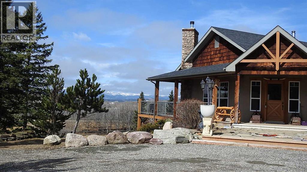 This breathtaking home, situated on 5 acres of land, is one of the most beautiful, scenic, and unique mountain-view properties in the Millarville area. The property greets you with two hand–glass-blown golden cattail sculptures, accented with polished copper leaves and stems, along with a rare 300-year-old Sedona cactus skeleton. As you come up the driveway, you’ll notice a stunning rock wall, towering evergreens, and an extensive $500,000 professionally landscaped yard, all enhanced with Alberta perennials planted throughout the gardens. A glass grizzly-bear-paw insert set into the flagstone patio leads to the timber-accented entrance of this earth-toned stucco walkout bungalow. Inside, the wide-open 1,979 sq ft floor plan and extra-large windows frame the majestic Rocky Mountains and Southern Alberta Foothills, making this home truly special. The ranch-style kitchen features updated cupboards, quartz countertops, and stainless steel appliances—an inviting space where everyone naturally gathers. There is plenty of room for entertaining family and friends, with the kitchen flowing into the dining room and open living room. The heat from the Nodica Italian wood-burning stove adds warmth and charm, whether you’re cooking or taking the chill off a cool spring night. If you’re looking for the ultimate escape, the primary bedroom delivers. It boasts a 5-piece ensuite, a spacious walk-in closet, and, once again, amazing views. Main-floor laundry is conveniently located in the huge mudroom, which includes a sink, extra storage shelving, and ample space for hanging jackets. Two additional bedrooms complete the main floor. The in-floor-heated basement offers three more bedrooms, a games area perfect for a pool table, and a cozy family space centered around a stone-faced, high-efficiency wood stove. The walkout patio doors open to a fully landscaped brick patio created using historic reclaimed bricks from the original Father Lacombe building—a wonderful spot for family bonfir es and enjoying the crackling fire after an active day in the country. Over the past three years, the home has seen many upgrades, including: new island cupboards, gas stove, dishwasher, electric fireplace, toilets, quartz countertops, window glazing, washer, dryer, a Glaze King wood stove downstairs, diesel backup generator, new roof, eavestroughs, garden shed, raised garden boxes, chicken coop, and numerous additional improvements. For car enthusiasts, the oversized triple garage makes an ideal man cave for working on special projects. Animal lovers will appreciate the smooth, open pastures—ready for fencing—and the heated chicken coop, already prepared for a flock. Additional outbuildings include an antique log barn, perfect for storage or an excellent tack room. There is so much to see on every level and a lifetime to enjoy. Set back in a sun-filled valley with exceptional mountain views, this is more than a home—live on one of the most beautiful, scenic, and unique properties in Millarville area. (id:49203)