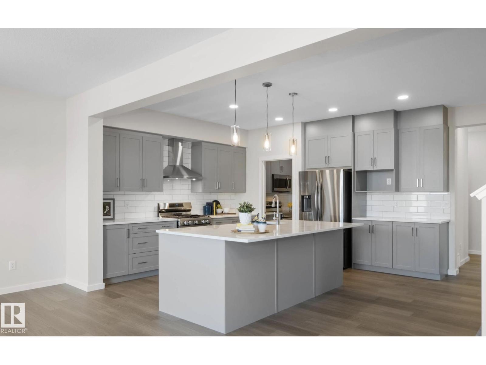 Welcome home — I’ve been waiting for you. I’m a brand new custom-built home in the beautiful community of The Uplands, Edmonton, offering 2,356 sq ft of thoughtfully designed living space. Inside, you’ll find 3 bedrooms, 2.5 bathrooms, a bright living room with a cozy fireplace and large window, plus a spacious dining area perfect for gathering. My upgraded kitchen features stunning quartz countertops, modern cabinets, and a pantry, along with a separate spice kitchen for all your cooking needs. The main floor boasts elegant 9-ft ceilings, while upstairs I offer the convenience of laundry and comfortable bedrooms designed for relaxing. I also come with a side entrance to the basement, giving you great future potential. On the outside, I’m dressed with stone accents, premium vinyl siding, and welcoming concrete steps. Best of all, I’m just steps from a pond, scenic walking trails, a creek, and beautiful green space. I’m more than a house — I’m a place to call home. (id:49203)