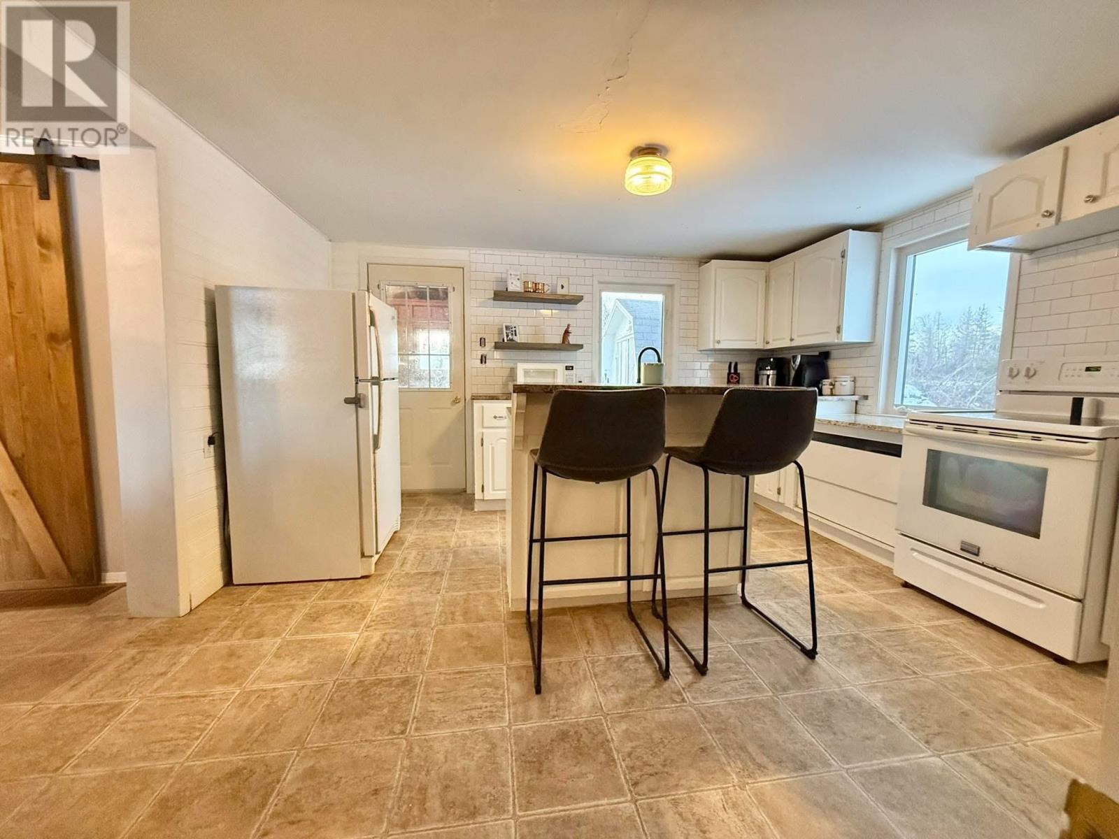 New Listing 2497 Johnston Rd, Darlington, North Wiltshire. Wonderful cozy home located only 15 minutes from Charlottetown. Comfortable home that would be perfect for first time home buyers or young family. Features a great size living room with a beautiful barn door to a large storage closet. A beautiful spacious eat in kitchen that was renovated with new white cabinets, countertops, white subway tile backsplash, kitchen island, new vinyl windows. This home has many great updates such as new 200 amp panel, newer heat pump and newer hot water tank, some newer vinyl windows, flooring and 2 new wall heaters. The home also features a large front entrance and a side porch, plus there is a main level guest bedroom and primary bedroom is upstairs. The bathroom & laundry is conveniently situated on the main level off the kitchen and needs some TLC to finish the updating. This home is situated on a paved year round road and the lot has a baby barn and nice backyard. This sweet home is equipped with an air exchanger and Eclipse oil furnace new 2016, Rampart Crystal Black shingles 2010. New heat pump, plus the home comes with fridge, stove, kitchen Island, washer and dryer. (id:49203)