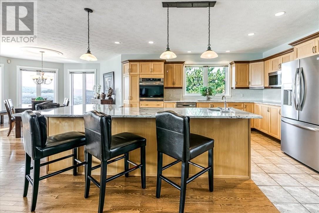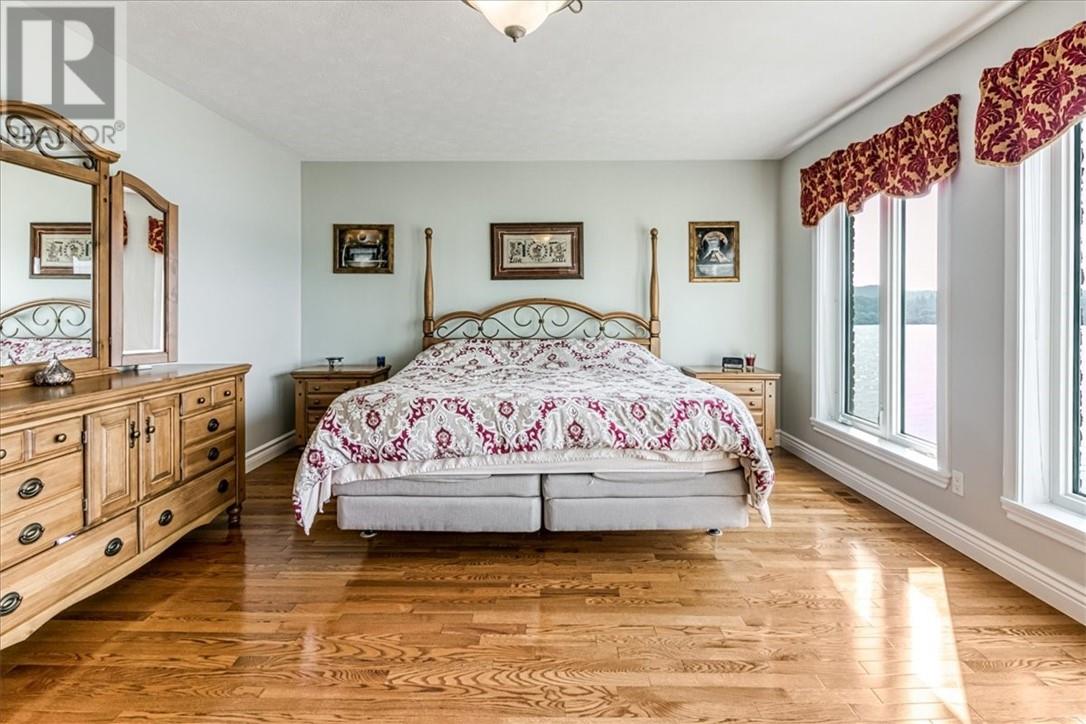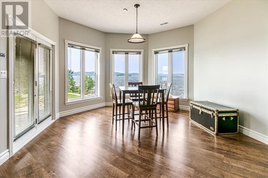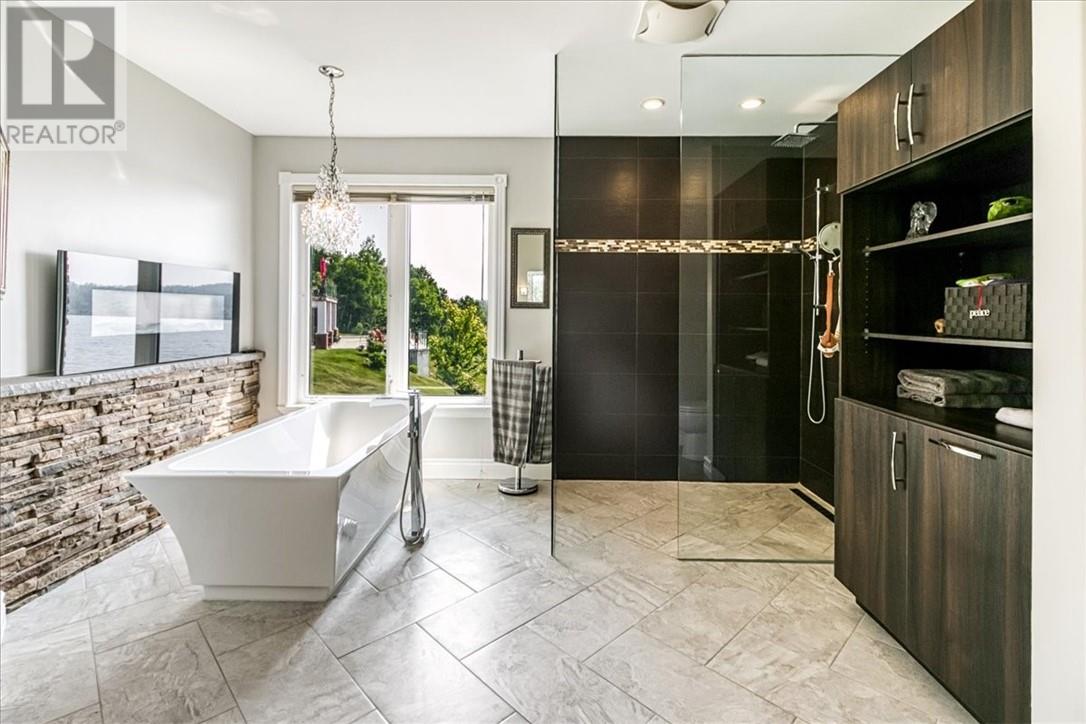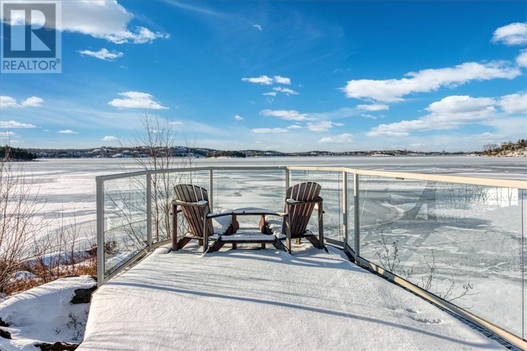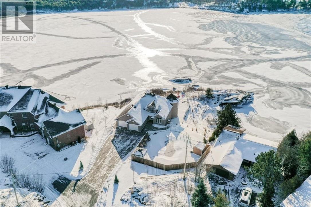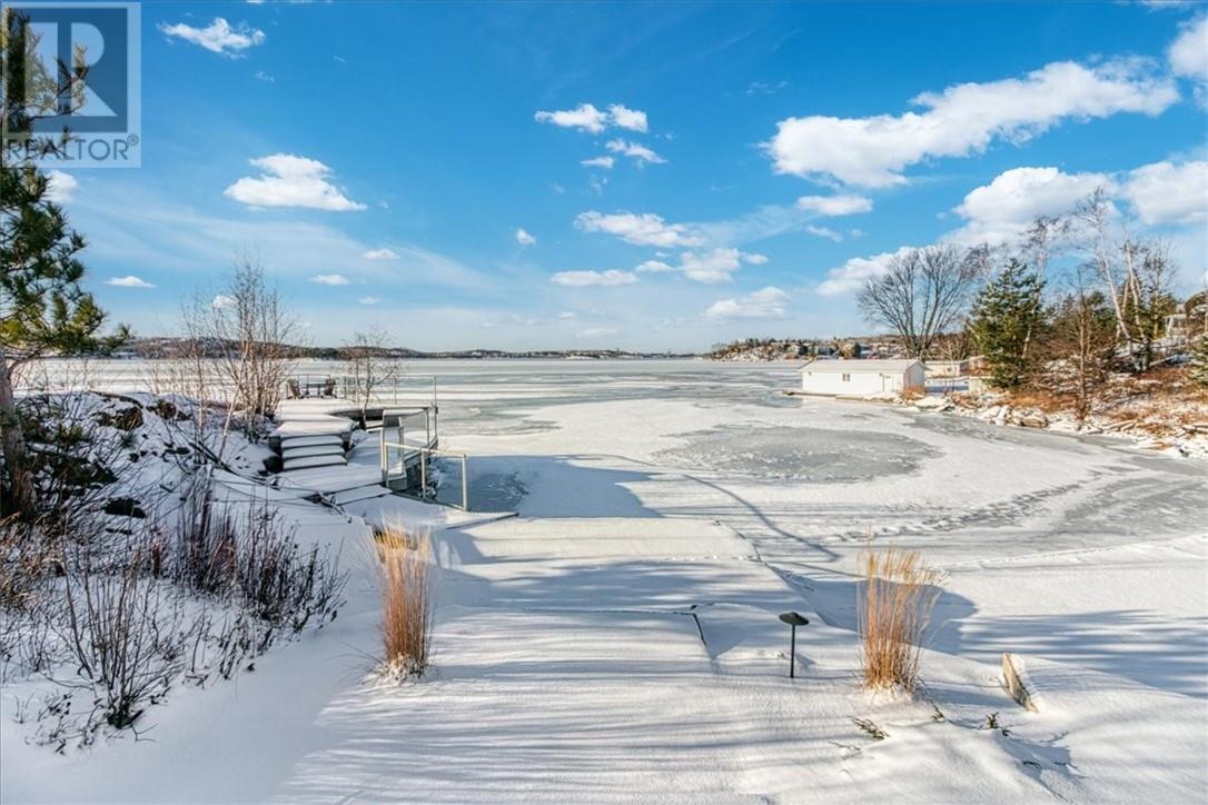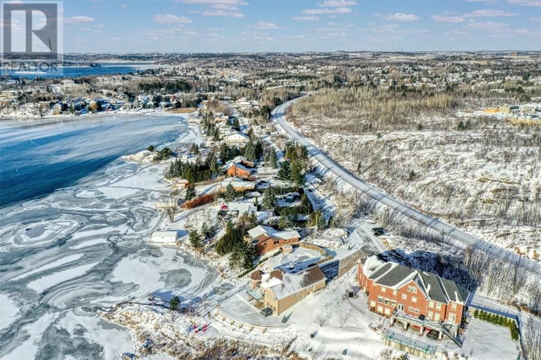 Welcome to the quaint shores of Ramsey Lake, one of Sudbury’s most sought-after lakes. This property boasts a sprawling 297’ of mixed natural beauty and sandy beachfront. It is a perfect blend of luxury and privacy on the water! This spectacular one-owner home features over $600,000 in upgraded landscaping, including a heated pool, hot tub with an automatic lift roof, and stunning outdoor spaces that capture the southwest-facing views! This beautiful layout is designed to highlight lake views the moment you walk through the door. The main floor of the home offers an open concept kitchen/living and dining area with 3 bedrooms and two bathrooms. The home has been completely freshly painted and showcases upgraded granite countertops throughout, newer stainless-steel appliances, and an abundance of cabinetry. The primary suite includes a full ensuite bath with a relaxing soaker tub and walk in closet. The fully finished walkout lower level boasts 10' ceilings, two bedrooms, a 4-piece bathroom, a spacious games area, and a large storage room with a cozy gas fireplace. Enjoy stepping outside to an oversized front deck perfect for summer evenings and entertaining family and friends. Additional features included: - Main-floor laundry - Central vac - Totally carpet-free - Double attached garage -newer roof 2020 - Fully interlocked driveway, including interlocked walking paths to both the lake and the oversized fire pit area with stunning 270-degree lake views This luxury home is conveniently located near all major box stores and the new entertainment centre! (id:49203)