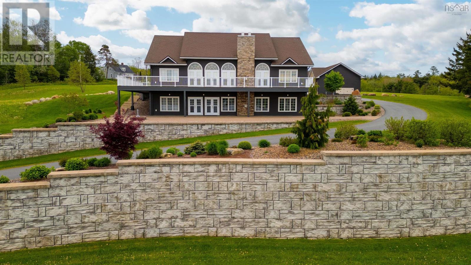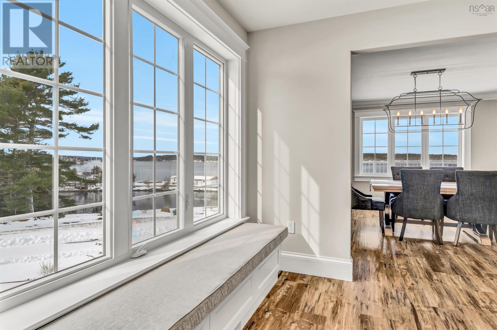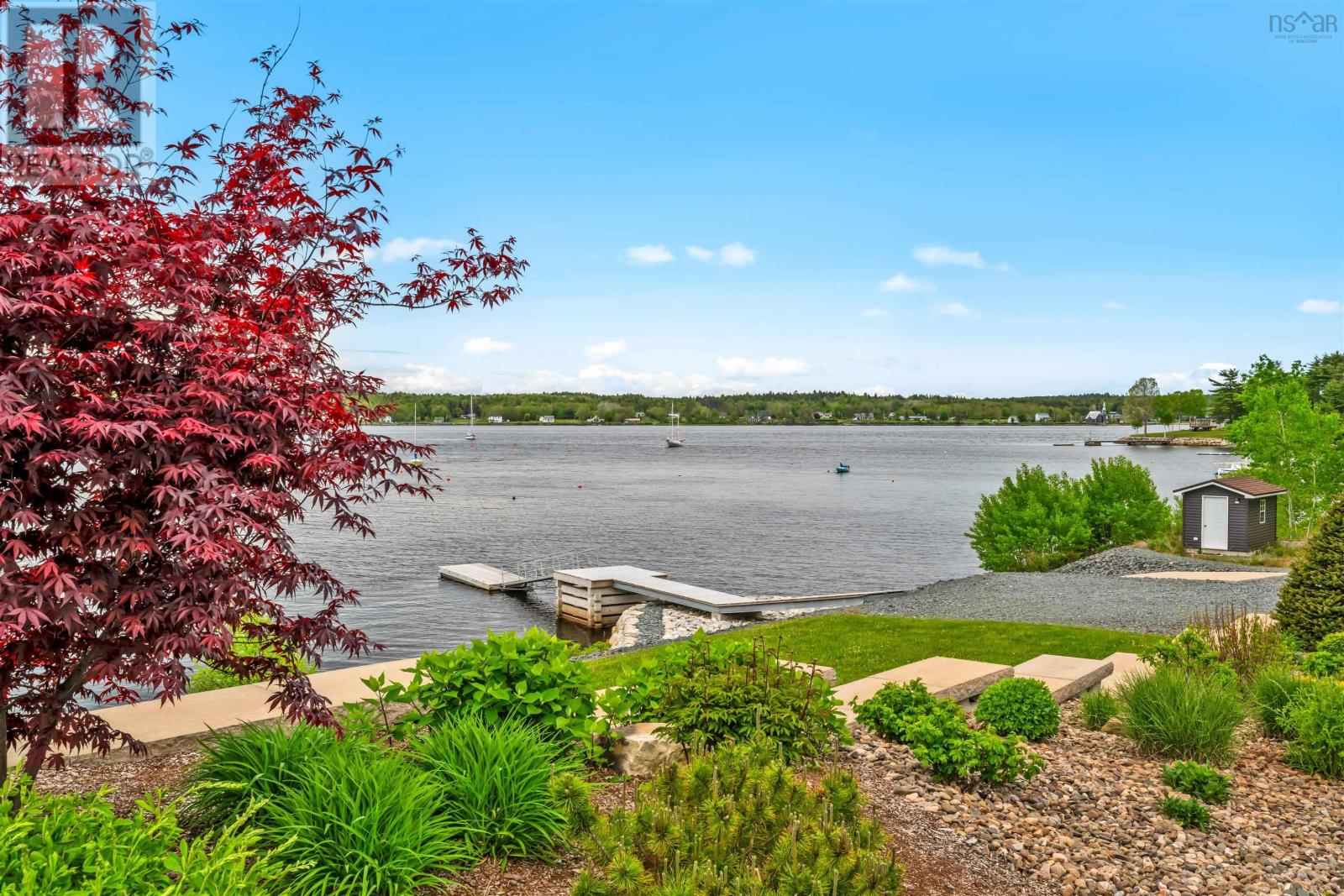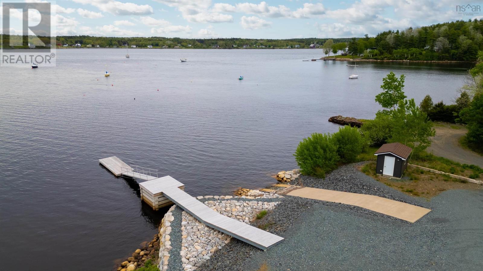 Thoughtfully designed, with timeless finishes & landscaping. A distinguished home that encompasses 8.8 acres & 350' of water frontage on the LaHave River leading into the Atlantic Ocean with deep water anchorage. The gated paved driveway extends to the water allowing for access to the boat launch. An innovative concrete retaining wall creates a terraced front yard with carefully selected flowers & shrubs that give extended beauty all season long and easily maintained with a sprinkler system. The exterior is complete with professional landscaping around the home's entrances and lower-level deck. Once inside the living room offers 4 spacious bedrooms and 5 baths that have oversized windows to capture the spectacular water views featuring remote blinds in all principal rooms. Striking views are carried throughout the home's main living areas with symmetrical floor to ceiling windows balanced by a propane fireplace in the living room. A custom kitchen is anchored by a large island and a perfectly placed window seat overlooking the LaHave Yacht Club. Three bedrooms are located on the main level including the primary with a large ensuite, walk-in closets, an entrance to the wrap-around deck offering panoramic water views. The layout affords accessibility, main floor laundry, a hydraulic elevator and access to an attached 30' x 38' garage. Home and garage are efficiently heated & cooled by a geothermal system. The lower level offers a guest suite, family room with a propane fireplace, gym area with an aqua massage machine, office and utility room. Rounding out this spectacular property is a detached heated 30' x 60' garage with inside steel cladding, 2~26' x 40' wired metal clad storage buildings for all the toys, a propane backup generator that powers the complete home and garage in a power outage. A short scenic drive to the best beaches the South Shore of NS has to offer, minutes to amenities in Bridgewater, Lunenburg & Mahone Bay and 1.5 hours to The Halifax Airport. (id:49203)