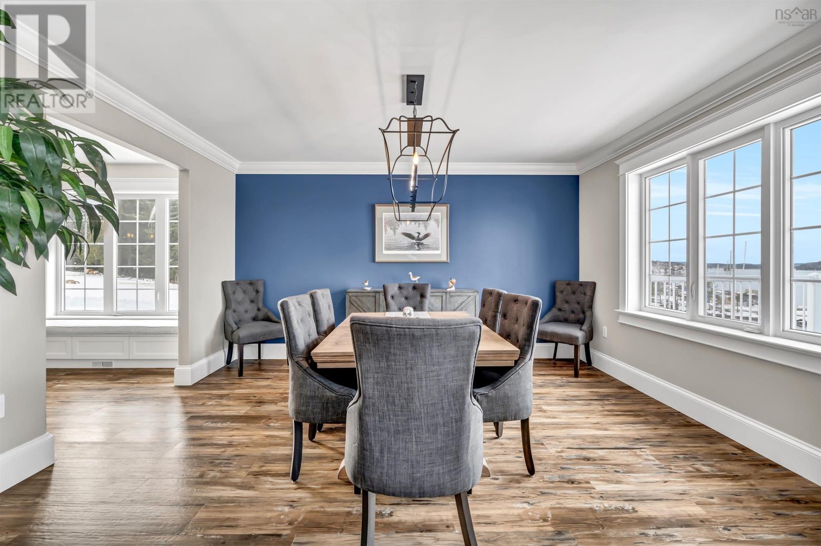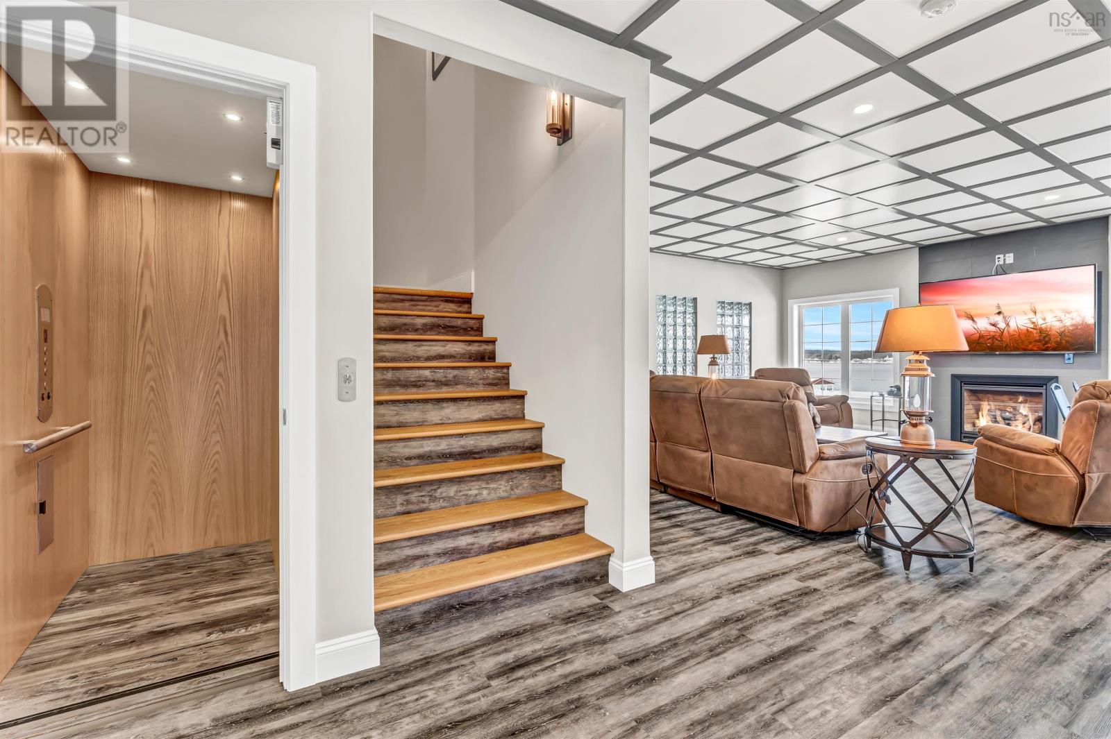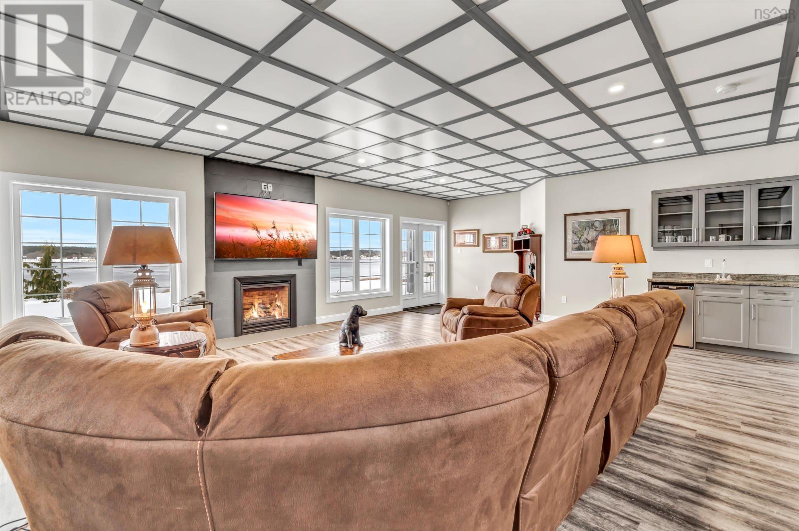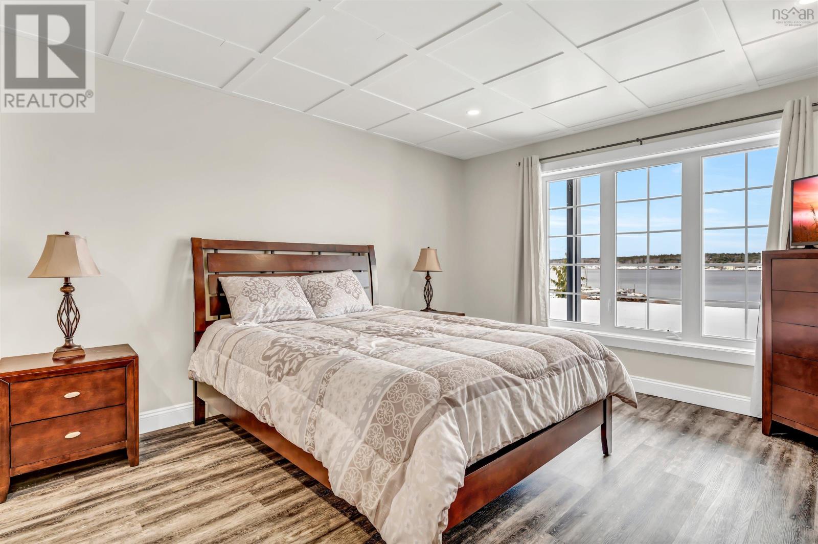 Thoughtfully designed, with timeless finishes & landscaping. A distinguished home that encompasses 8.8 acres & 350' of water frontage on the LaHave River leading into the Atlantic Ocean with deep water anchorage. The gated paved driveway extends to the water allowing for access to the boat launch. An innovative concrete retaining wall creates a terraced front yard with carefully selected flowers & shrubs that give extended beauty all season long and easily maintained with a sprinkler system. The exterior is complete with professional landscaping around the home's entrances and lower-level deck. Once inside the living room offers 4 spacious bedrooms and 5 baths that have oversized windows to capture the spectacular water views featuring remote blinds in all principal rooms. Striking views are carried throughout the home's main living areas with symmetrical floor to ceiling windows balanced by a propane fireplace in the living room. A custom kitchen is anchored by a large island and a perfectly placed window seat overlooking the LaHave Yacht Club. Three bedrooms are located on the main level including the primary with a large ensuite, walk-in closets, an entrance to the wrap-around deck offering panoramic water views. The layout affords accessibility, main floor laundry, a hydraulic elevator and access to an attached 30' x 38' garage. Home and garage are efficiently heated & cooled by a geothermal system. The lower level offers a guest suite, family room with a propane fireplace, gym area with an aqua massage machine, office and utility room. Rounding out this spectacular property is a detached heated 30' x 60' garage with inside steel cladding, 2~26' x 40' wired metal clad storage buildings for all the toys, a propane backup generator that powers the complete home and garage in a power outage. A short scenic drive to the best beaches the South Shore of NS has to offer, minutes to amenities in Bridgewater, Lunenburg & Mahone Bay and 1.5 hours to The Halifax Airport. (id:49203)