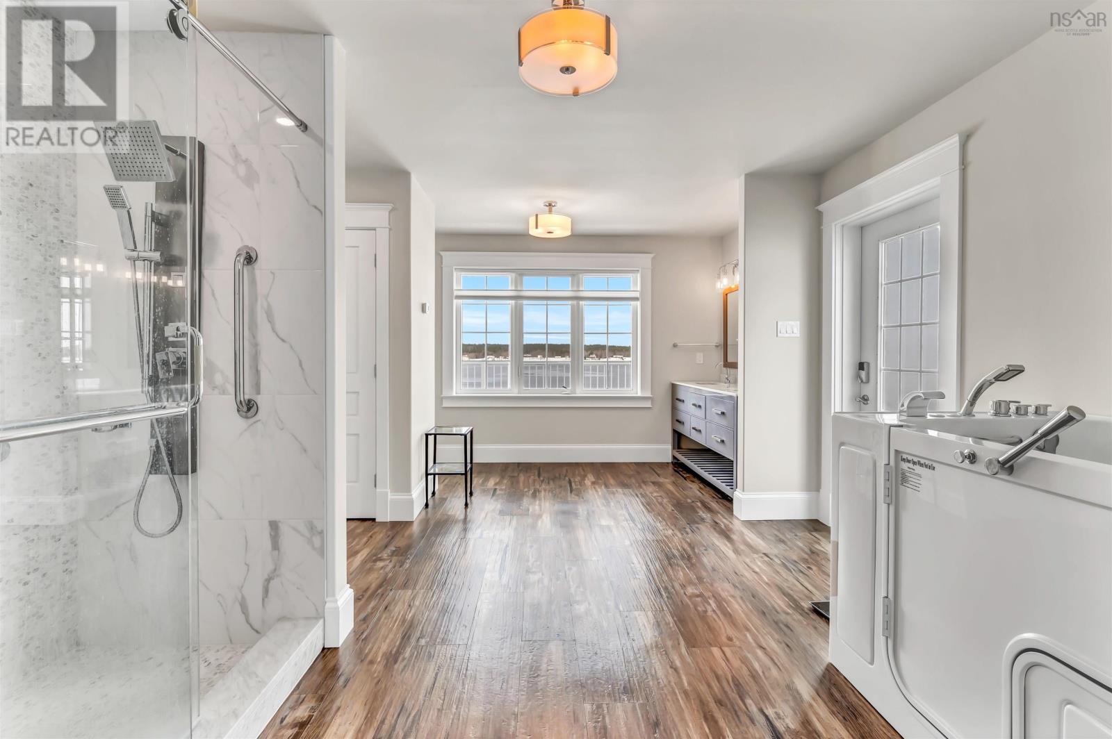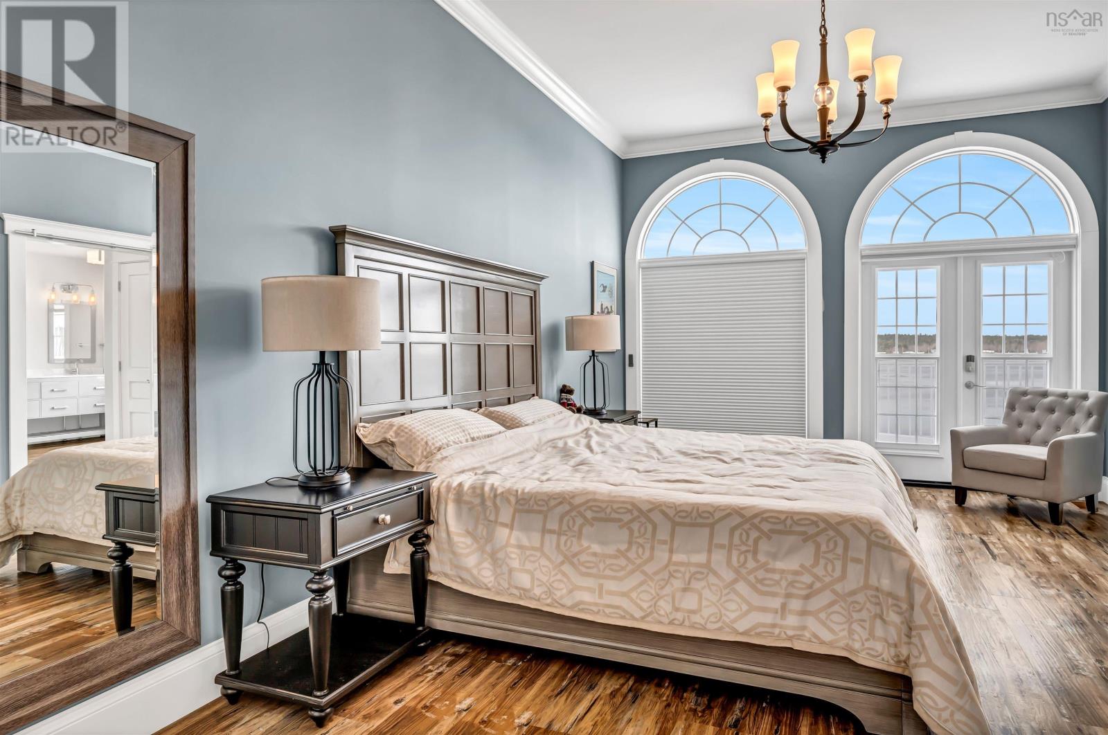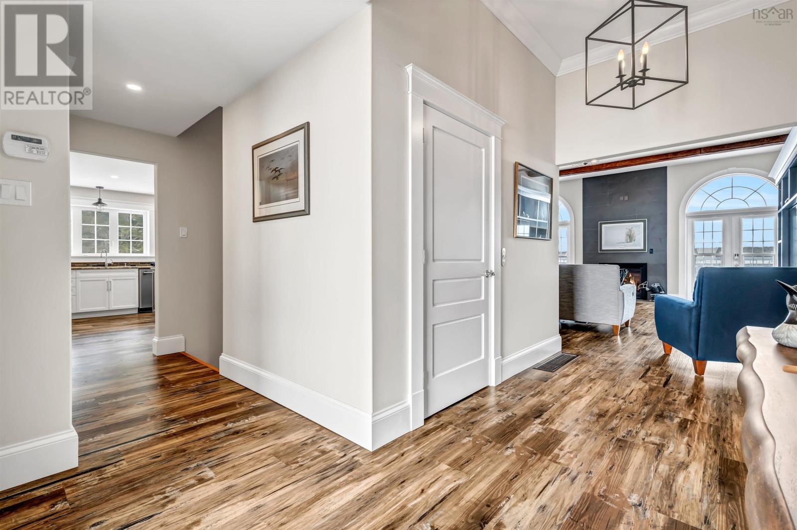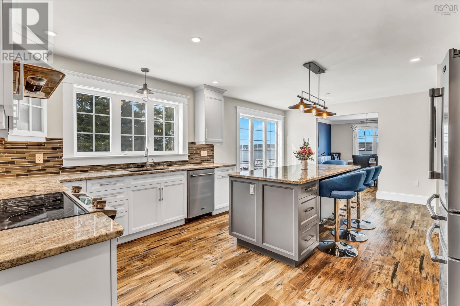 Thoughtfully designed, with timeless finishes & landscaping. A distinguished home that encompasses 8.8 acres & 350' of water frontage on the LaHave River leading into the Atlantic Ocean with deep water anchorage. The gated paved driveway extends to the water allowing for access to the boat launch. An innovative concrete retaining wall creates a terraced front yard with carefully selected flowers & shrubs that give extended beauty all season long and easily maintained with a sprinkler system. The exterior is complete with professional landscaping around the home's entrances and lower-level deck. Once inside the living room offers 4 spacious bedrooms and 5 baths that have oversized windows to capture the spectacular water views featuring remote blinds in all principal rooms. Striking views are carried throughout the home's main living areas with symmetrical floor to ceiling windows balanced by a propane fireplace in the living room. A custom kitchen is anchored by a large island and a perfectly placed window seat overlooking the LaHave Yacht Club. Three bedrooms are located on the main level including the primary with a large ensuite, walk-in closets, an entrance to the wrap-around deck offering panoramic water views. The layout affords accessibility, main floor laundry, a hydraulic elevator and access to an attached 30' x 38' garage. Home and garage are efficiently heated & cooled by a geothermal system. The lower level offers a guest suite, family room with a propane fireplace, gym area with an aqua massage machine, office and utility room. Rounding out this spectacular property is a detached heated 30' x 60' garage with inside steel cladding, 2~26' x 40' wired metal clad storage buildings for all the toys, a propane backup generator that powers the complete home and garage in a power outage. A short scenic drive to the best beaches the South Shore of NS has to offer, minutes to amenities in Bridgewater, Lunenburg & Mahone Bay and 1.5 hours to The Halifax Airport. (id:49203)