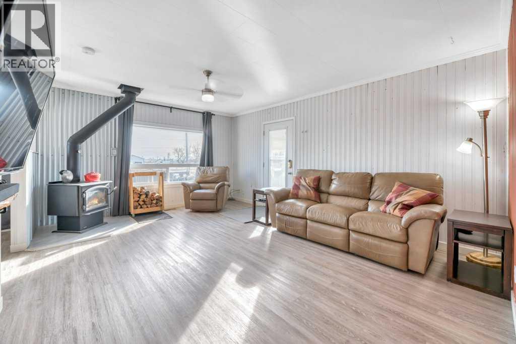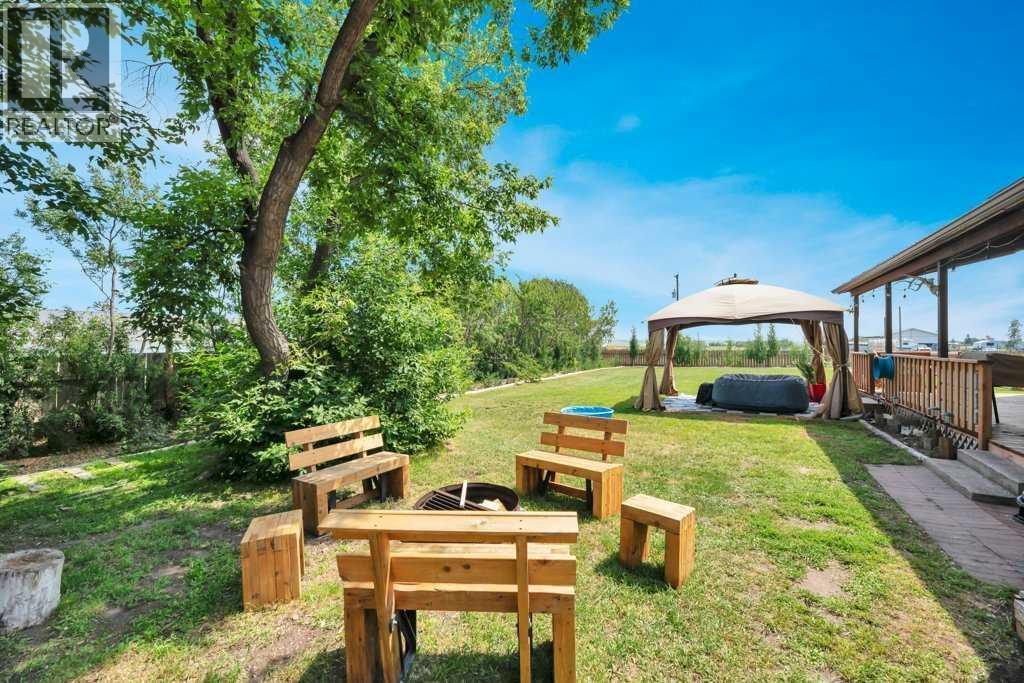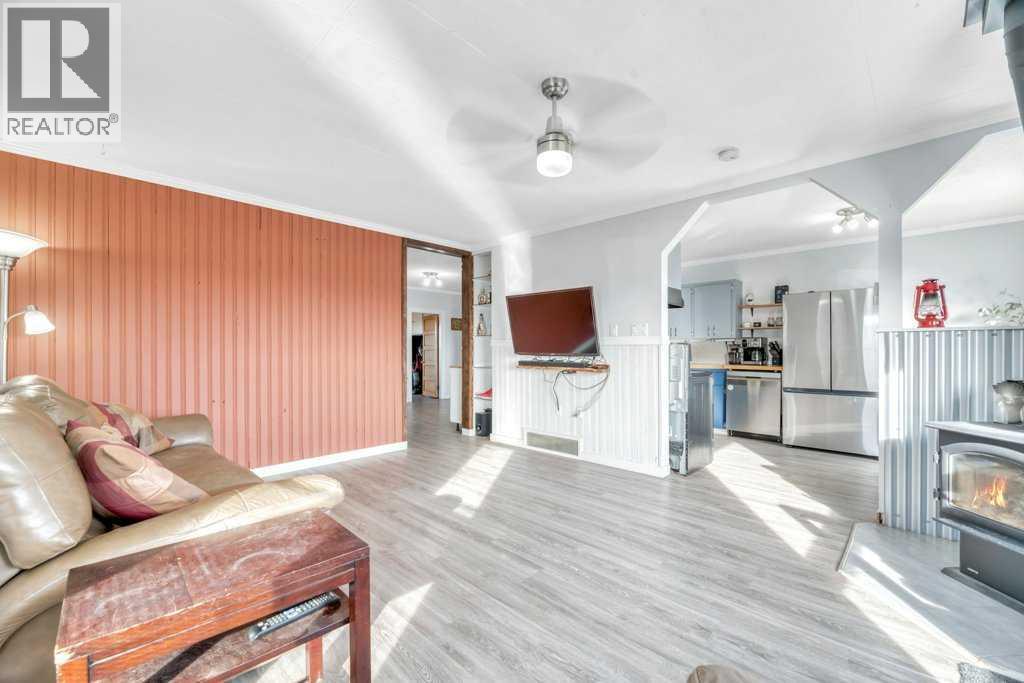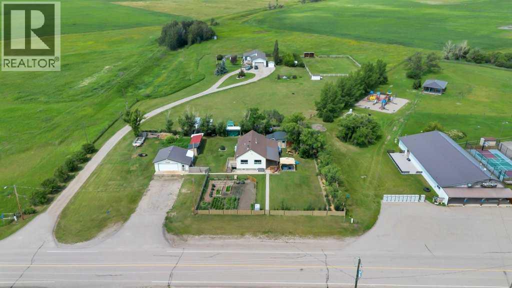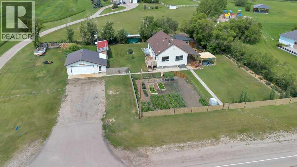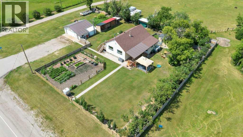 Looking for a simpler life surrounded by fresh air, wide-open skies, and homegrown goodness? This charming 2-bedroom, 1-bathroom character bungalow sits on just over half an acre in the peaceful hamlet of Nightingale with stunning prairie views, a park right next door, and space to truly breathe—just 15 minutes to Strathmore and a smooth 40-minute drive to north Calgary and the airport (paved highways all the way). Whether you're craving quiet country mornings or an easy commute, this home delivers both. Step onto the large covered deck and take in a yard bursting with mature trees, privacy, fruit bushes, a veggie garden, and even a chicken coop—with hens included! There's plenty of room for your RV, tools, and toys, plus a 500 sq ft heated garage that makes a perfect workshop or hobby zone. Inside, you'll find a cozy, well-kept home with a wood-burning stove that makes winter evenings glow with warmth. Whether you're already into gardening, tending chickens, or chopping wood—or you’re ready to embrace a lifestyle that includes them—this property invites you in with open arms. With a new septic tank in 2024, a strong 15 GPM drilled well, outdoor storage sheds, and a full-height basement that’s already framed and insulated, there’s nothing left to do but move in and make it yours. Book your viewing today! (id:49203)
