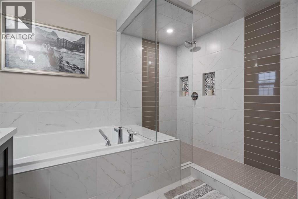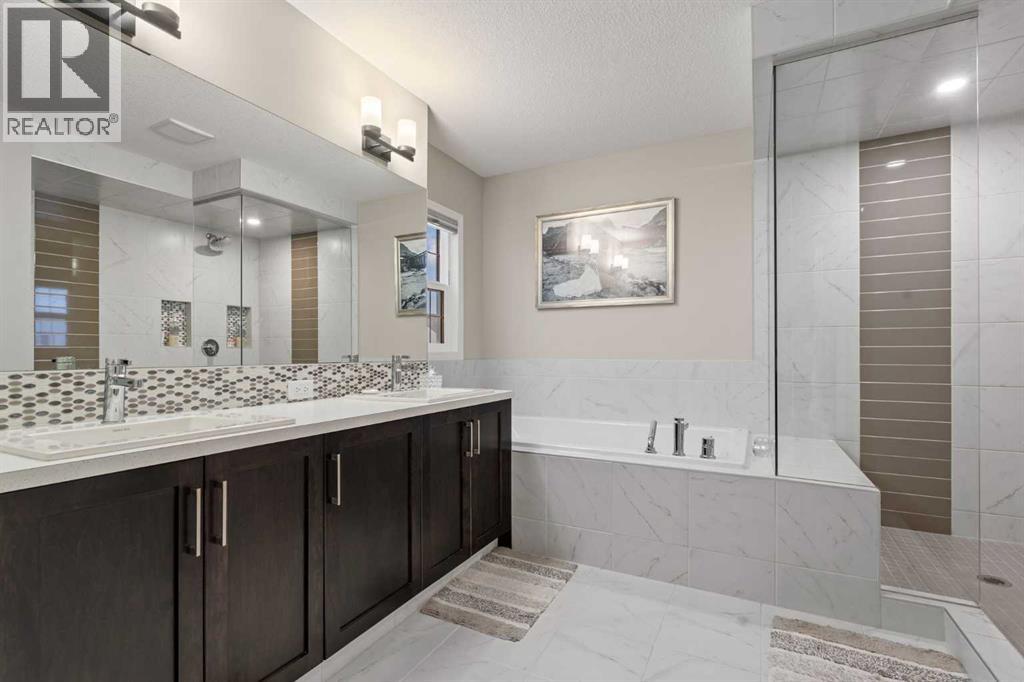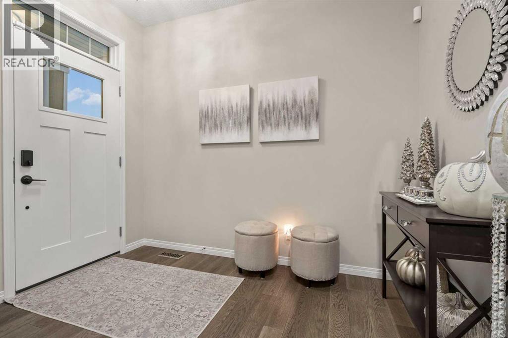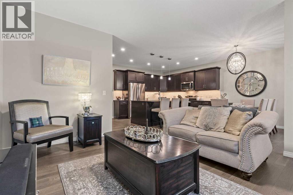 Welcome Home. This stunning two story walkout is only 3 years old and has been thoughtfully designed and upgraded. Tucked away on a quiet street, backing directly onto a green space and playground, in one of Chestermere’s most sought-after communities. This home offers the kind of setting families dream about. From the moment you arrive, the curb appeal stands out with its exposed aggregate driveway, and Gemstone lighting that adds year-round elegance. The main level features a bright, open-concept layout designed for both everyday living and entertaining. The kitchen is the heart of the home, featuring sleek cabinetry with custom lighting and soft close hinges, elegant granite countertops, a stainless steel appliance package, perfect for busy mornings and weekend entertaining offering space and functionality. The warm and welcoming living room is complete with a stylish mantle feature and large windows allow beautiful sunlight to flow into the space from the west facing back yard. Upstairs, the large central bonus room provides space and comfort for you to relax and unwind or have some fun family time. The primary retreat delivers both comfort and style with an ensuite that includes a deep soaker tub, dual sinks, and a beautifully tiled glass shower as its standout feature. The generous walk-in closet offers space for all your storage needs. The 2 Secondary bedrooms are well sized, and the layout offers excellent flow for families of all stages being finished off with a functional laundry room. The builder-finished walkout basement is a major bonus with permits allowing peace of mind. The spacious rec room adds flexible living space with potential for a future home theatre, thanks to the ceiling-mounted projector rough-in. A 4th bedroom, full bathroom and extra storage space complete this walkout level. The mechanical systems are top-tier, including a 75-gallon hot water tank, HRV system, and high-efficiency furnace, ensuring long-term comfort and reliability. Ste p outside and enjoy one of the home’s biggest highlights: a sunny west-facing backyard that feels like your own private park. Professionally landscaped with lush grass, garden beds that are perfect for the gardening enthusiast, and an extended upper deck with aluminum and glass railing, this yard is designed for relaxing, hosting, and soaking in those beautiful open views of the green space behind. The double attached garage offers parking for two vehicles, a rough-in for an EV charger in the garage and a custom built-in storage loft. Additional features are a 4-ton A/C (with cover), Supreme security system with doorbell and outdoor cameras and strategically placed Wi-Fi boosters for seamless connectivity. Living in Chelsea means being close to everything—schools, pathways, shopping—and only minutes from Calgary and the ring road for easy commuting. Chestermere Lake is nearby for boating, paddleboarding, and sunny afternoons. Book your private showing and experience what makes this property so special. (id:49203)