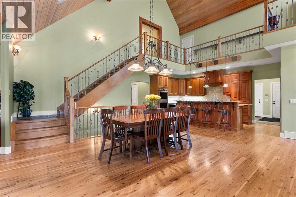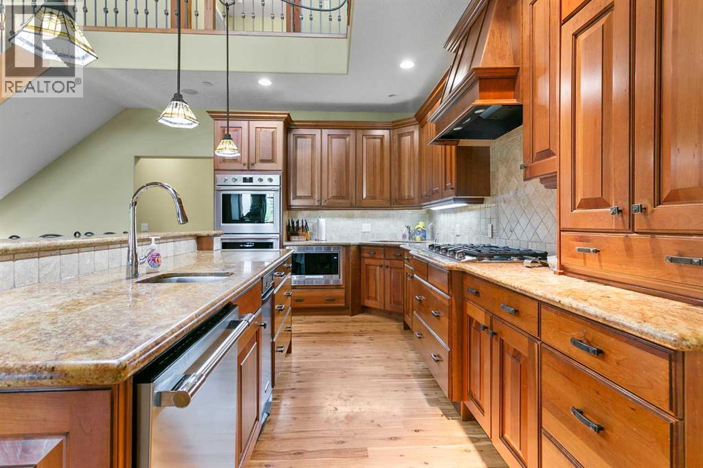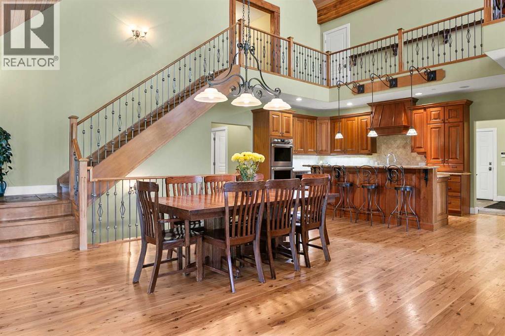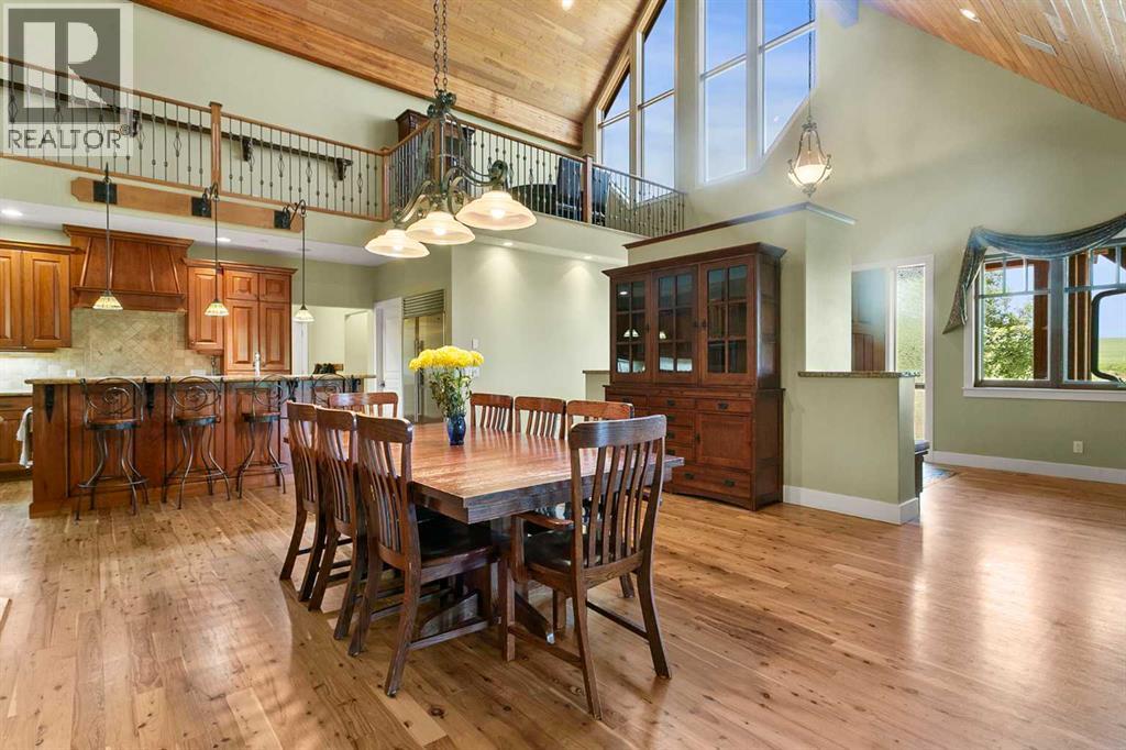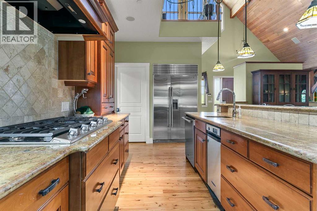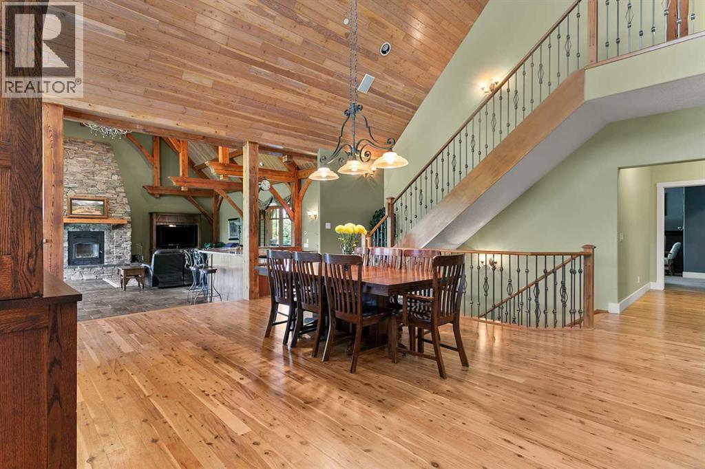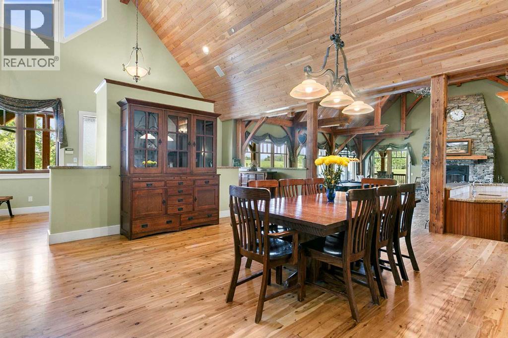 Discover the epitome of country living in this stunning residence, boasting nearly 9,000 square feet of luxurious space, nestled among serene trees on 160 acres near Millarville. This exceptional property offers breathtaking views of the rolling foothills and the majestic Rocky Mountains, creating a tranquil haven that feels truly magical. Perched at the highest point of the land, the main home is designed to maximize these spectacular vistas and includes a second kitchen and a giant 62x40 foot shop. A second home is conveniently located near Highway 549, ensuring easy access while maintaining privacy. As you step inside, the awe-inspiring 30-foot high ceilings of the "A" frame design will immediately captivate you. Massive timber beams, expansive windows, and exquisite finishes are sure to leave your guests speechless. The expansive great room features a dramatic river rock fireplace, leading seamlessly into a gourmet kitchen equipped with granite countertops, a spacious island with an eating bar, top-of-the-line appliances, and a large walk-in butler’s pantry. The dining room flows into a vaulted living area, perfect for entertaining. This magnificent home includes 7 bedrooms and a fully developed basement. The main level features a luxurious master retreat with an oversized walk-in closet and a beautifully appointed ensuite. Upstairs, you’ll find 2 additional bedrooms with a convenient Jack and Jill bathroom, while the loft above the garage includes a full legal suite with its own kitchen. The fully finished basement boasts a massive theater room, a games room, 2 additional spacious bedrooms, and 3 storage rooms. Enjoy outdoor living at its finest with a large deck, a cozy firepit, and a custom-built BBQ area, all surrounded by stunning views perfect for horse and cattle enthusiasts. As you approach from the west end, take note of the second home and shop, and be sure to leave time to explore the expansive heated workshop. Crafted with love and expertise by the c urrent owners, this property is the culmination of years of country living experience, ensuring every detail is perfect. Don’t miss the opportunity to make this hidden gem your own! (id:49203)