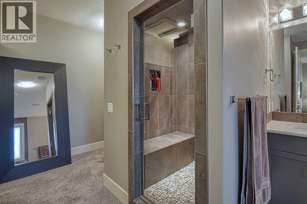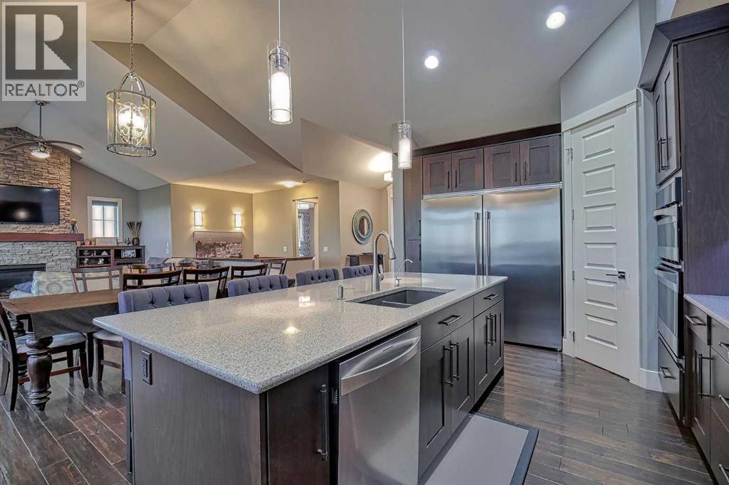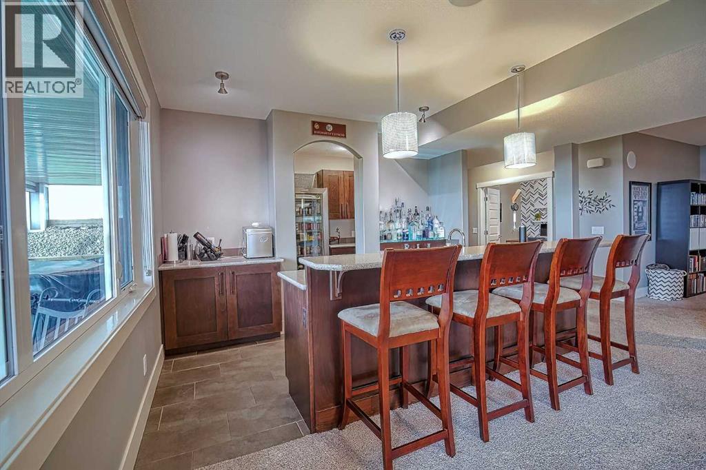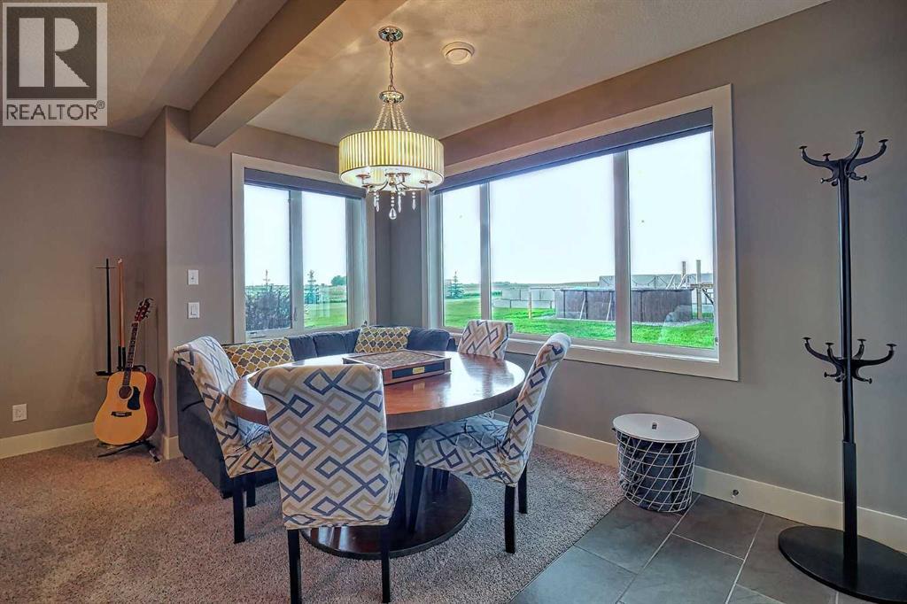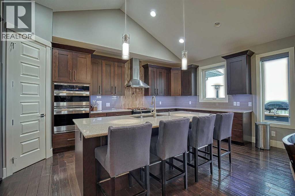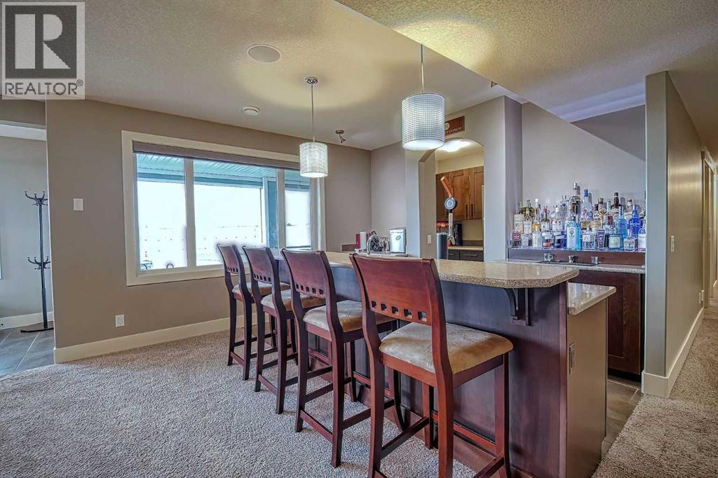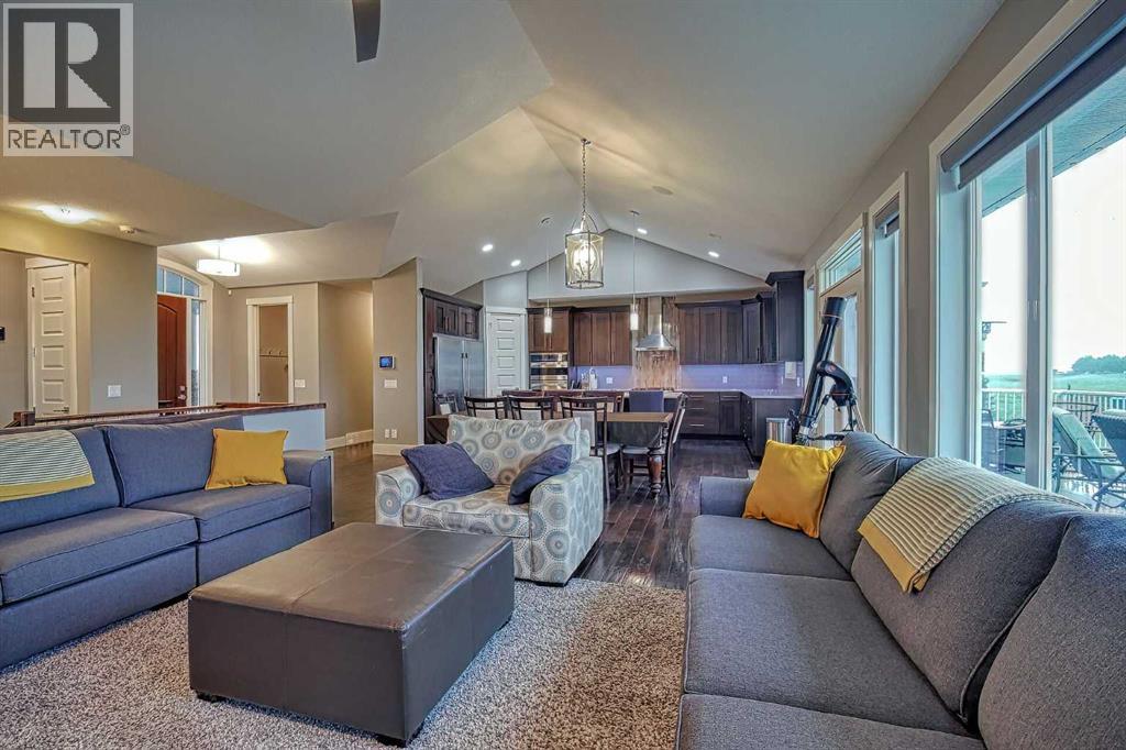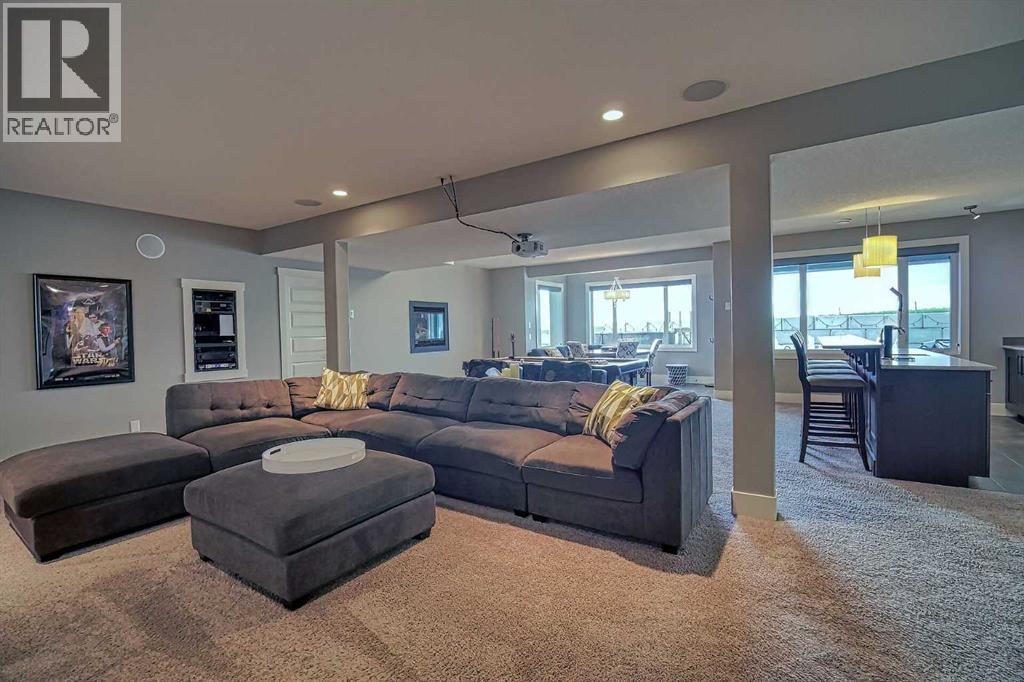 LOCATION! LOCATION! 5.86 ACRES just 18 mins to Airdrie, under 30 minutes to Calgary International Airport and an EASY commute to just about anywhere. This EXCEPTIONAL custom-built home showcases premium craftsmanship and thoughtful design throughout its over 4000 sq ft. of living space. From the automated gates and paved driveway to the Hardy Board siding, triple garage, Gemstone lighting and inviting front porch - every detail reflects quality and care. Inside, a spacious foyer with a walk-in closet opens into a bright, open-concept living space with expansive windows and sweeping views. The kitchen, dining area and living room flow seamlessly, creating an ideal setting for everyday living and entertaining. A floor-to-ceiling brick fireplace with built-ins, anchors the living room beneath 10’ ceilings, while hand-scraped hardwood flooring adds warmth and character. The well-appointed kitchen features quartz countertops, a large breakfast bar, built-in fridge/freezer, dual ovens including a built-in microwave, a gourmet gas range with additional oven and a convenient pasta faucet.A walk-through butler’s pantry provides ample storage and preparation space.Double doors lead to a large deck, ideal for seamless indoor-outdoor entertaining and outdoor cooking.The primary suite offers panoramic window views, a cozy gas fireplace, direct patio access, and a spa-inspired 5-piece ensuite with a deep soaker tub beside the fireplace, double sinks, a walk-in shower with built-in seating, a private water closet and a spacious walk-in closet. The main floor also includes a second bedroom with walk-in closet and 4-piece ensuite, along with a 2-piece powder room, laundry room and mudroom. The fully developed lower level features a ONE OF A KIND MEDIA ROOM with a 135” screen and 4K projector, space for games and entertaining, and a FULL WET BAR with quartz counters, sink, dishwasher, beer keg with tap, wine storage, and a commercial beverage fridge. There are two additional bedroom s with walk-in closets, a 4-piece bath, and walkout access to a covered patio. Outdoors, enjoy a hot tub, heated above-ground pool, fire pit, privacy retaining wall, garden shed, covered patio and underground sprinklers. Included are 22 built-in speakers with Control4 automation, five TVs with mounts, projector and screen, and security cameras. The 1,100 sq. ft. TRIPLE garage is heated and thoughtfully designed, with plenty of parking, large windows for natural light, built in shelving and built-in benches for a functional workspace. Over the years, trees have been planted to create privacy and beauty, and the low-maintenance landscaping with an irrigation system keeps the grounds looking impeccable with minimal effort. Experience refined country living with executive-level finishes and exceptional amenities on this private 5.86 acre property. (id:49203)