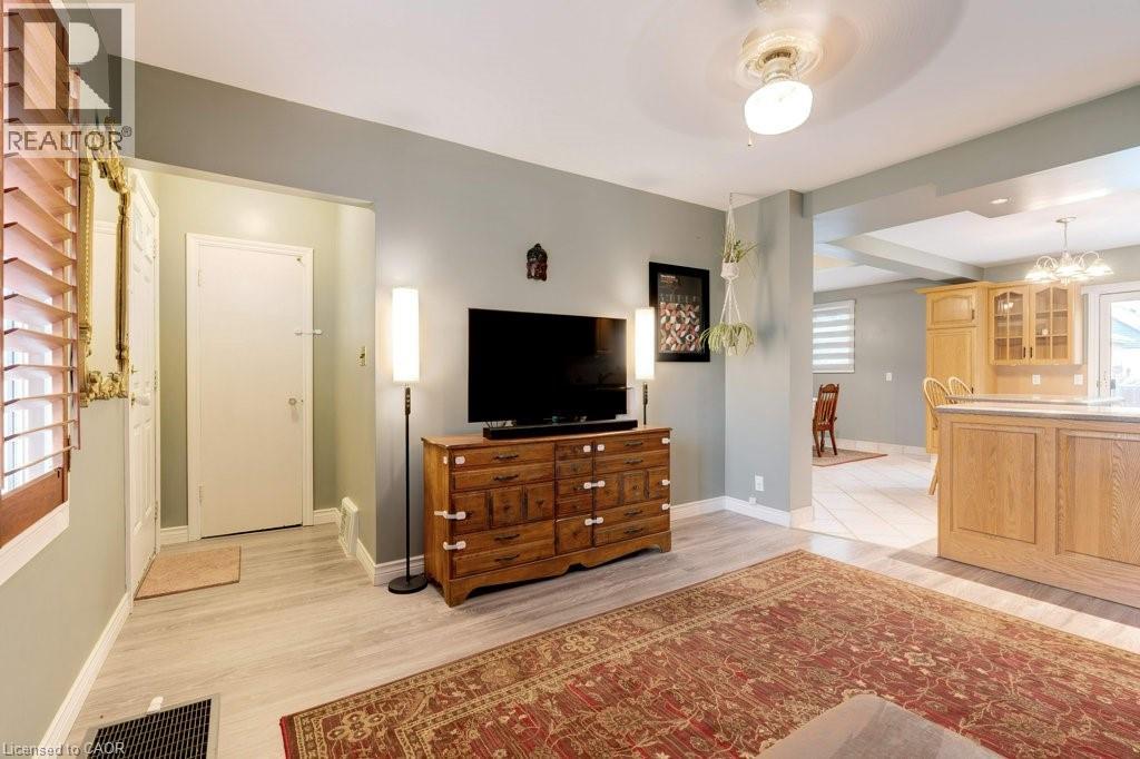 Welcome to this 3 bedroom, 2 full bath detached home in the heart of Hamilton! Featuring an open concept livingroom, kitchen and a finished basement with natural gas fireplace. There's a convenient side entrance, ideal for in-law suite potential. Sliding doors from the kitchen to a large, well-maintained backyard with a good-sized deck, perfect for entertaining. The garage offers plenty of room for one vehicle, storage, and/or a workshop. The home is move-in ready with a warm, inviting atmosphere throughout. Close to schools, parks, shopping, and transit. (id:49203)