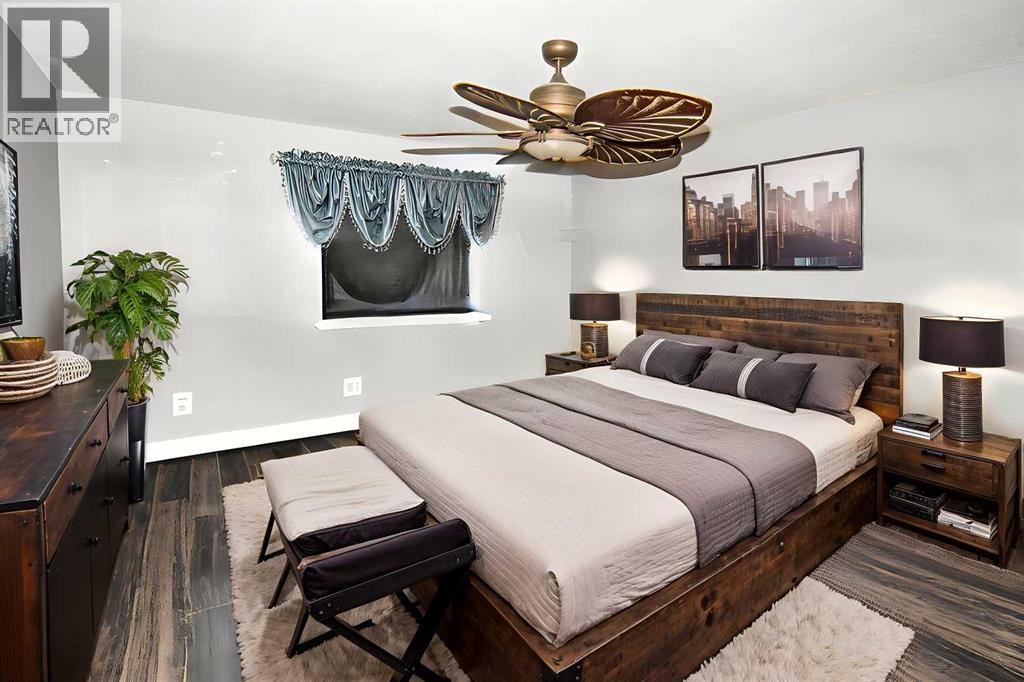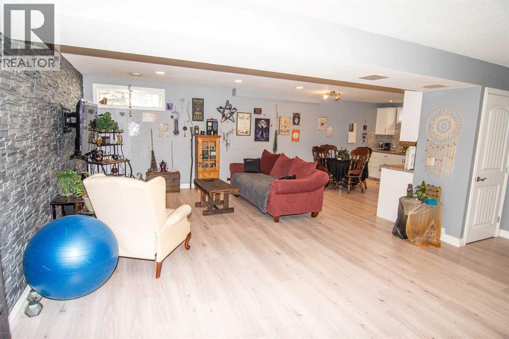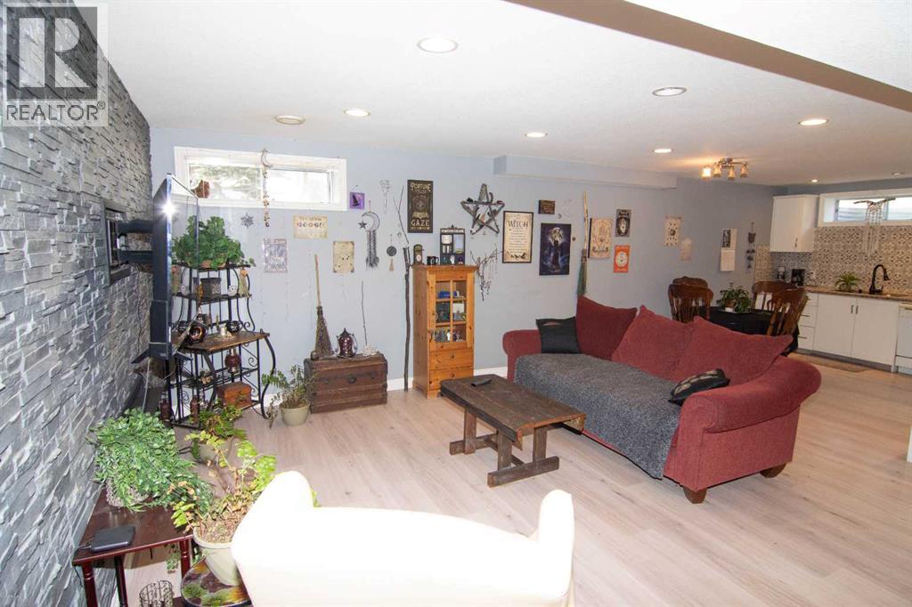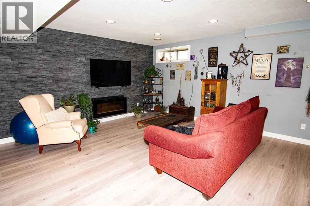Sunny West-Facing Bungalow in Desirable "Greens at Woodside"! Air Conditioned! 55+ age restriction. Open plan concept with vaulted ceilings! Upgraded kitchen with "Black Stainless Steel" appliances, Quartz Counters, white cabinetry with grey lower cabinets! The master suite is spacious and bright, with easy access to the main 4 piece bathroom. The second bedroom also is adjacent to bathroom and main level laundry. The basement has all permits for the development. It has a kitchen, feature wall with fireplace, heated floors in the bathroom, separate laundry. Double attached garage and rear deck with sunny west exposure. Bareland condo. (id:49203)
