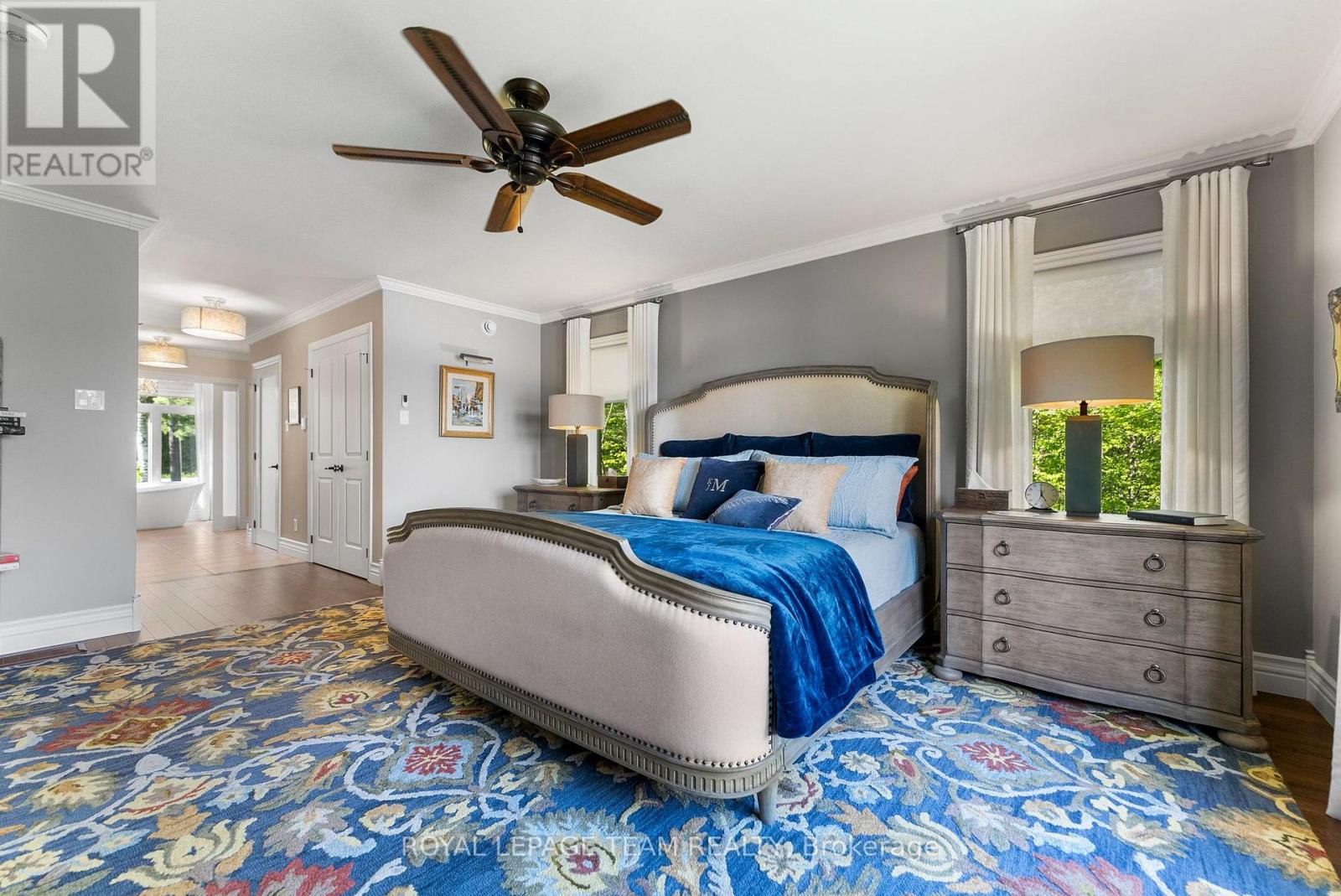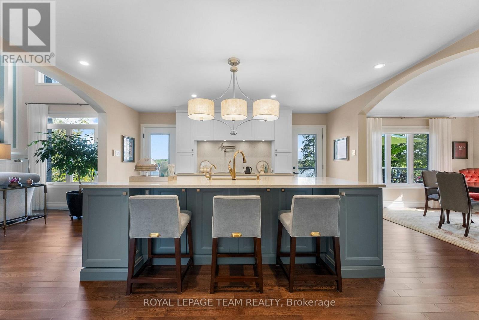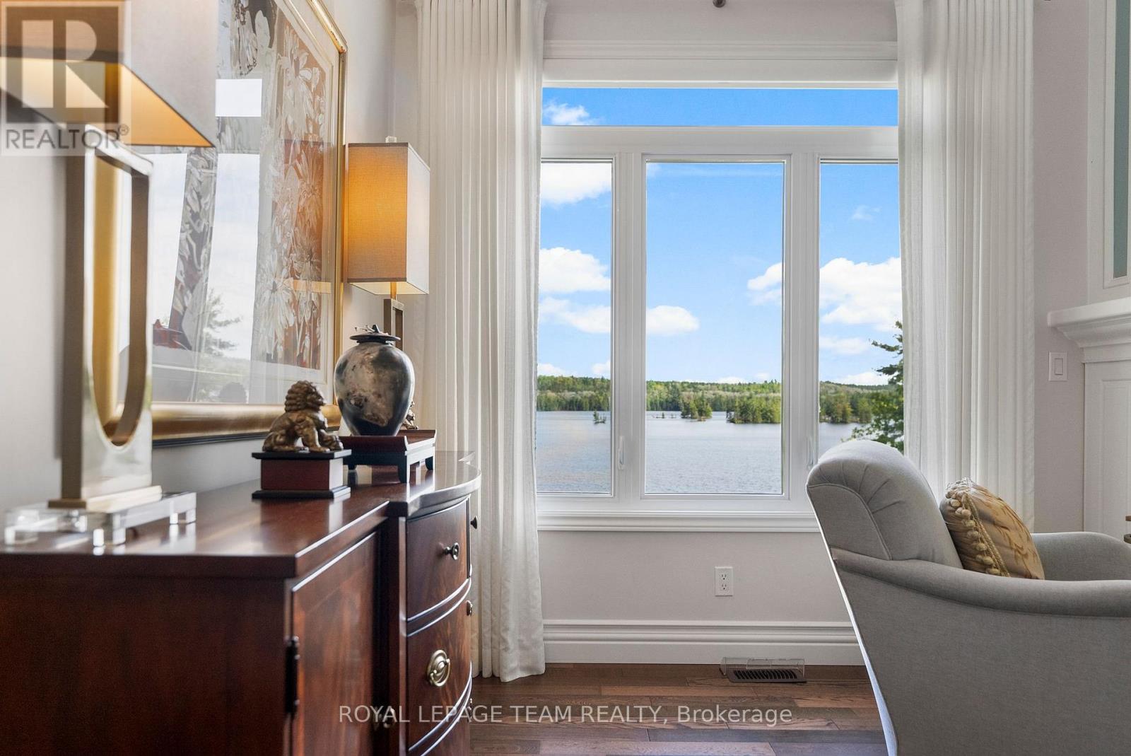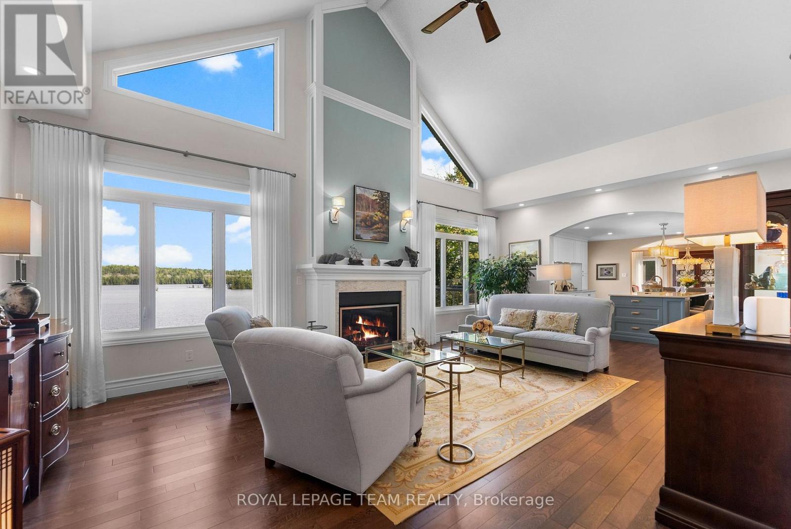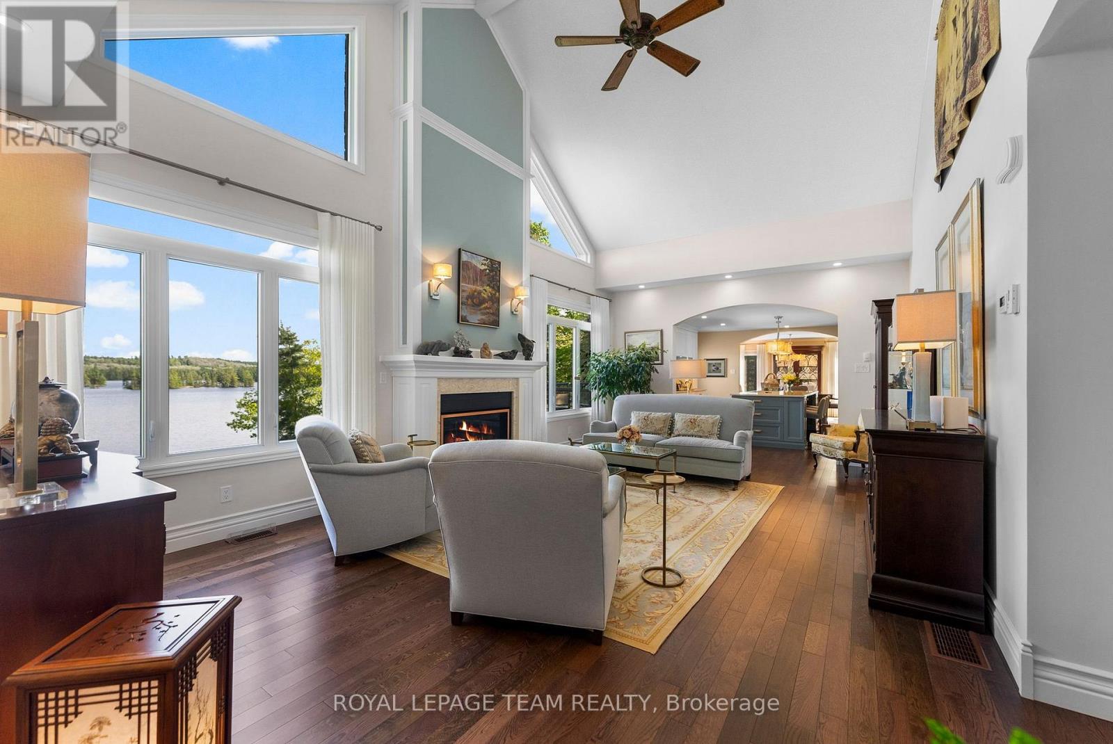 Experience the pinnacle of year-round waterfront living in this meticulously crafted, custom-designed luxury estate property. Set on a private 1-acre lot with over 200 ft of pristine frontage on Black Donald/Centennial Lake, this residence offers unparalleled elegance, comfort, and tranquility. From the moment you arrive, you'll be captivated by the seamless blend of sophisticated design and functional living spaces. The grand entrance opens to an expansive interior adorned with high-end finishes, custom millwork, and floor-to-ceiling windows that frame stunning water vistas at every turn. Every detail has been thoughtfully curated to provide a warm & inviting atmosphere. The chefs kitchen is a culinary masterpiece, featuring premium appliances, custom cabinetry, a breakfast station, and a large island - perfect for preparing gourmet meals. A thoughtfully designed butlers pantry provides additional storage for dry goods and fine wines, as well as space ideal for prepping evening canapés and dessert courses. The primary suite- a private sanctuary, boasting a spa-inspired en-suite with custom walk-in closets, Jack & Jill vanities, and a private soaker tub with unparalleled views of the manicured grounds. 3 additional lower level bedrooms are generously sized and elegantly appointed. Included in the guest wing are 2 additional living spaces and a separate kitchenette. Outside, the property boasts extensive professional landscaping complemented by an advanced irrigation system, ensuring lush, vibrant grounds. The expansive outdoor living spaces include a deck with an outdoor kitchen, patios, waterfront gazebo and beautifully manicured lawns. A detached garage offers a window nook for potting, ample storage for tools, and a large space for storing all of your toys. Black Donald/Centennial Lake are interconnected by the Madawaska River, providing 43 km of continuous waterways. This lake is also accessible to float planes, there is an aerodrome. A short drive to Calabogie. (id:49203)
