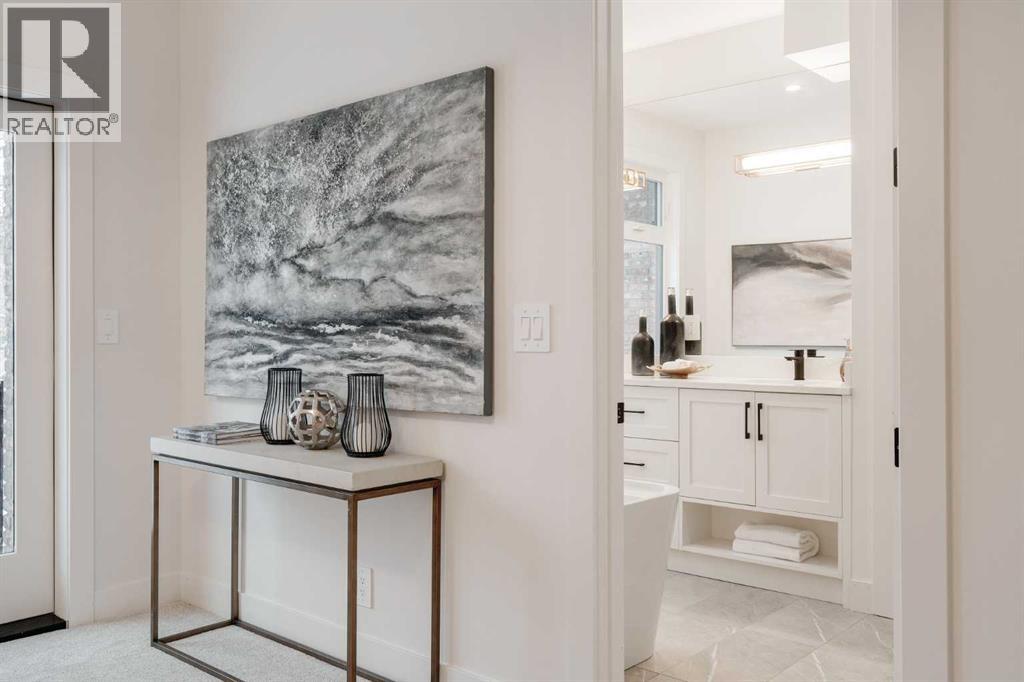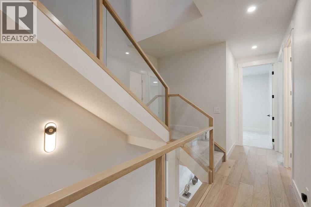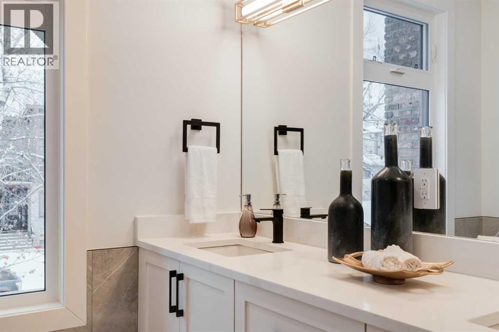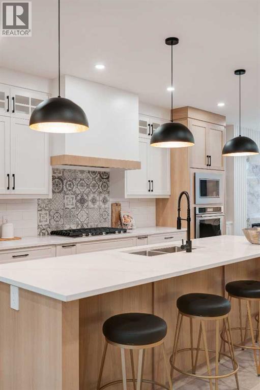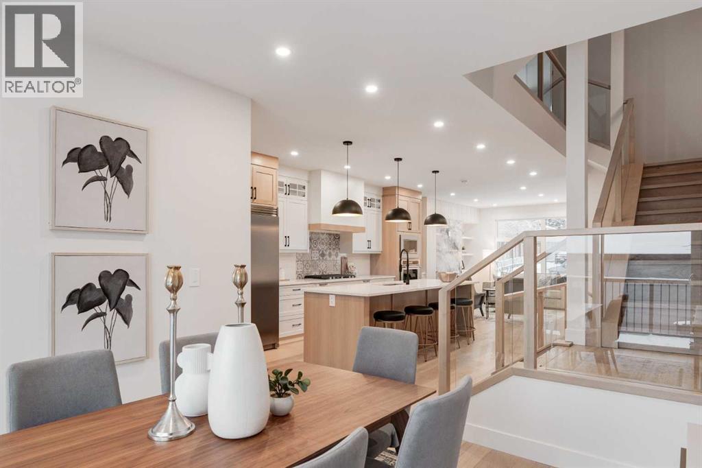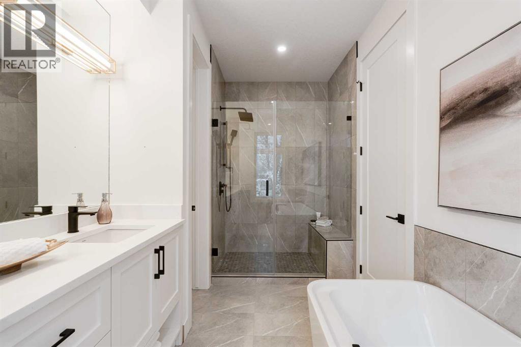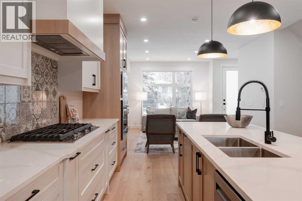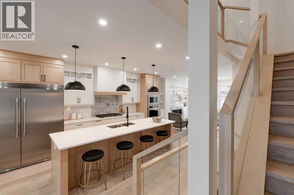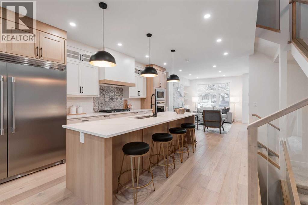 Priced to Sell! Discover modern luxury in this 5 bedroom + 4.5 baths, semi-detached home boasting 2,468 sq. ft. across three levels, plus a fully developed 868 sq. ft. lower level. The main floor features an elegant central Kitchen with long island, elegant two-tone cabinetry, gorgeous countertops, custom covered hoodfan, black accents, and upscale stainless steel appliances including a commercial grade fridge! This Kitchen layout is ideal for entertaining; complete with a convenient walk-in pantry with a countertop, shelves and drawers that makes organizing a breeze! White oak engineered hardwood flooring flows throughout, complementing high ceilings on the Main and Lower levels. The 2nd level features a spacious Primary bedroom with an impressive walk-in closet, luxurious 5 piece ensuite with deep pedestal soaker tub, over-sized shower, separate water closet and dual vanity with culture marble countertop. It also has its own private West-facing deck! There are also two more bedrooms, a 3-piece bathroom and an oversized laundry area with an impressive amount of countertop space, laundry sink and cabinetry. The 3rd floor bonus area has a very spacious living area, a large bedroom with an impressive walk-in closet, 3-piece bathroom and an additional walk-in closet. This floor also has an AMAZING outdoor living space that could easily fit a sectional, fire-table and dining set to enjoy those warm starry Calgary evenings! The lower let has another bedroom, a den, study nook, 3-piece bathroom, and a games/recreation/media area with a wet bar. Outdoor living with three decks adds so many living options. The property also has a private backyard with double detached garage and new fencing on both sides of the property. With impeccable design, ample space, and a prime, tree-lined, inner city southwest location in Killarney - just steps away from schools, parks, pathways and other conveniences, this home and location is a true gem! (id:49203)