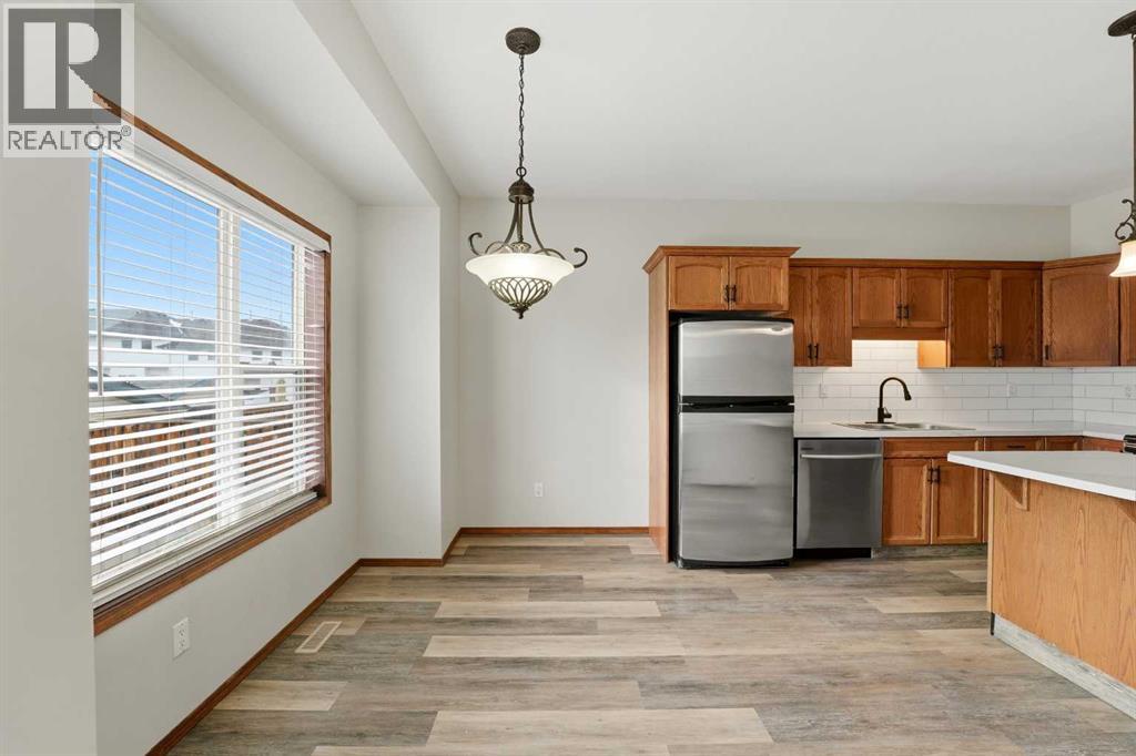 This two-storey townhouse in Clearview Meadows offers four bedrooms, three bathrooms and has seen plenty of recent updates, making it a great option for families, first-time buyers, or investors looking for a functional layout and the freedom of no condo fees.The main floor features a bright living space and an open kitchen with a small island, along with a convenient main-floor bathroom for guests or everyday use.Upstairs, you’ll find three bedrooms and a full bathroom, including a spacious primary bedroom with a large his-and-hers walk-in closet.The fully developed lower level adds valuable living space with a fourth bedroom, a large bathroom, and a cozy gas fireplace, creating an inviting area for relaxing, hosting guests, or setting up a home office.Outside, enjoy the low maintenance fenced backyard and the detached garage which provides secure parking and additional storage, while the location offers easy access to schools, parks, shopping, and everyday amenities, as well as convenient routes for commuting and getting around the city. (id:49203)