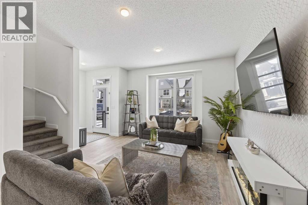 End-unit townhouse with double garage and modern finishes - this is the one you’ve been waiting for! Bright, open-concept main floor featuring wide-plank flooring, large windows, and a spacious living room with a sleek feature wall.The kitchen is clean and contemporary with quartz countertops, stainless steel appliances, shaker style cabinetry, and a stylish white tile backsplash. A generous dining area and convenient 2 piece bath complete the main level. Upstairs offers a well-designed layout with a spacious primary bedroom featuring a walk-in closet and private 3 pc. ensuite, plus 2 secondary bedrooms, a full 4 pc bath, and a convenient upper-floor laundry. The unfinished basement provides nearly 600 sq. ft. of future potential or excellent storage. The end unit means more light, more privacy, and better livability! Step outside to your fully fenced private backyard, complete with a detached double garage and located close to parks, pathways, and everyday amenities—ideal for first-time buyers, investors, or downsizers looking for low-maintenance living with NO CONDO FEES! Located in the growing community of Carrington, you’ll enjoy quick access to Stoney Trail, scenic walking paths, parks, and a beautiful re-naturalized wetland with lookout points. With future schools, shopping, and the planned Green Line LRT nearby, this is a smart opportunity for buyers. (id:49203)