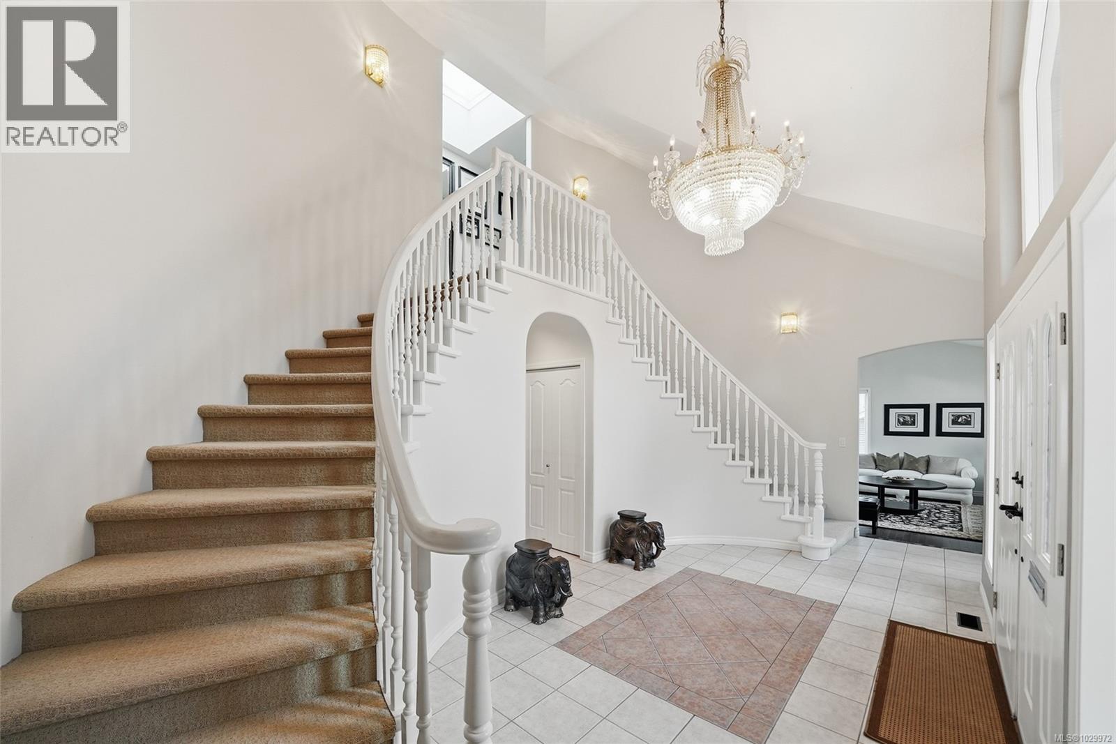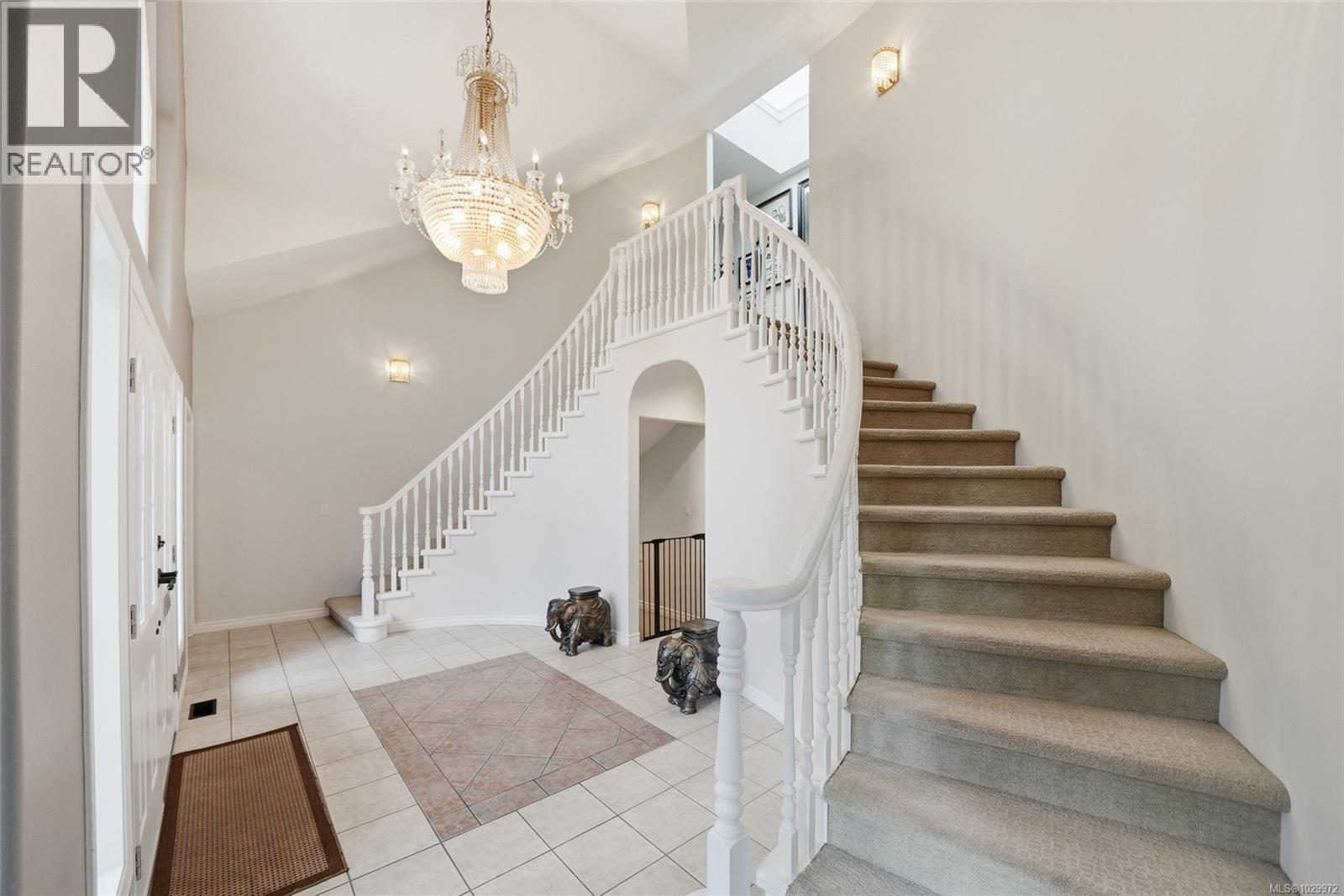 Custom-Built West Coast Contemporary in Prestigious Departure Bay Welcome to a truly exceptional residence, offered for the first time, in the highly sought-after Departure Bay area of Nanaimo. This custom-built West Coast Contemporary home showcases timeless architectural design, a grand presence, and thoughtfully curated spaces ideal for elevated family living. Boasting 6 bedrooms and 5 bathrooms, this expansive home offers incredible flexibility for large or multi-generational families, with generous living areas designed for both everyday comfort and elegant entertaining. From the moment you arrive, you are greeted by a striking grand entry with soaring vaulted ceilings and a dramatic double staircase, setting the tone for the sophistication found throughout. The home features multiple beautiful fireplaces anchoring the formal living room, cozy family room, and spacious recreation areas, creating warmth and ambiance in every season. Designed with lifestyle in mind, enjoy a seamless flow between the living, family, and recreation rooms, complemented by a dedicated bar area—perfect for hosting and entertaining. Large windows invite in natural light while framing the surrounding neighbourhood’s charm. This is a rare opportunity to own a lovingly maintained, one-owner home in one of Nanaimo’s most desirable communities—where space, design, and location come together effortlessly. ? A legacy property offering luxury, lifestyle, and lasting value. (id:49203)