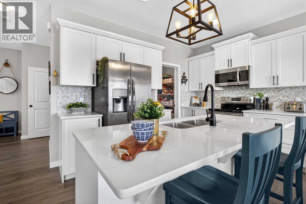 Check out this view! This is the kind of backyard that makes you pause for a moment every time you walk by a window. Set on a large walkout lot overlooking Airdrie, this home is perfectly designed for a growing family that wants space, light, and a great community around them.From the moment you arrive, the large precast front porch offers stylish, low-maintenance curb appeal and the perfect place to sit with your morning coffee. The backyard is beautifully maintained with lush grass and a solid, well-built fence between neighbours.Built by McKee Homes, this property offers thoughtful design and quality construction throughout. Step inside to a spacious front foyer with room for a large rug and bench—ideal when the whole family piles in after a busy day. The laminate flooring is in excellent condition and flows seamlessly into the heart of the home.The kitchen is ready for real life with quartz countertops, tons of prep space, pot & pan drawers, and a large pantry. But here’s a fun surprise: this main floor has a secret weapon—a huge walk-in closet tucked between the mudroom and foyer. It’s the perfect catch-all for jackets, hockey gear, Costco runs, or extra pantry storage.The living room is bright and welcoming, thanks to extra-large windows (coverings by Budget Blinds) and a cozy fireplace for cooler evenings. Nearby, the mudroom has recently been upgraded with stylish hook storage and beadboard wainscoting—both practical and beautiful.And the garage? It’s extra tall, giving you fantastic space for seasonal storage.Upstairs, the bonus room sits right in the centre of the home, creating excellent separation between the primary suite and the kids’ bedrooms. The primary bedroom easily fits a king bed, features sunny windows, and a ceiling fan to keep the air moving. The ensuite includes an extra-long vanity, tidy shower, and bright window, while the walk-in closet is absolutely HUGE—you truly have to see it to appreciate it.The kids’ bedrooms are generou sly sized, giving them space to grow into over the years.Downstairs, the walkout basement is where this home really shines. Walkouts are loved for a reason—it’s like gaining the extra space of a basement without feeling like you’re in one. With large doors and windows, this level has a bright, almost main-floor feel. It’s partially finished with drywall already completed in the hall and storage room, making future development that much easier.And then there’s Hillcrest. This neighbourhood is loved for its quiet streets, parks, playgrounds, and walking paths. Schools and everyday amenities are close by, and quick access to 8 Street SW and Yankee Valley Boulevard connects easily to Highway 2 for a smooth Calgary commute. Living in south Airdrie also means you’re perfectly positioned for weekend adventures west to Cochrane, Canmore, and the Rockies!A well-designed home, an incredible view, and a fantastic community—especially on the Heights, where everyone wants to be. (id:49203)