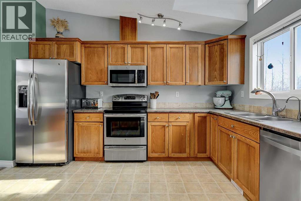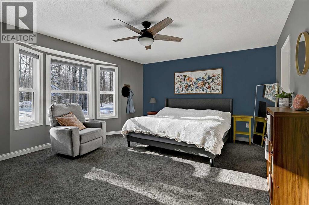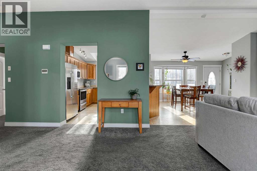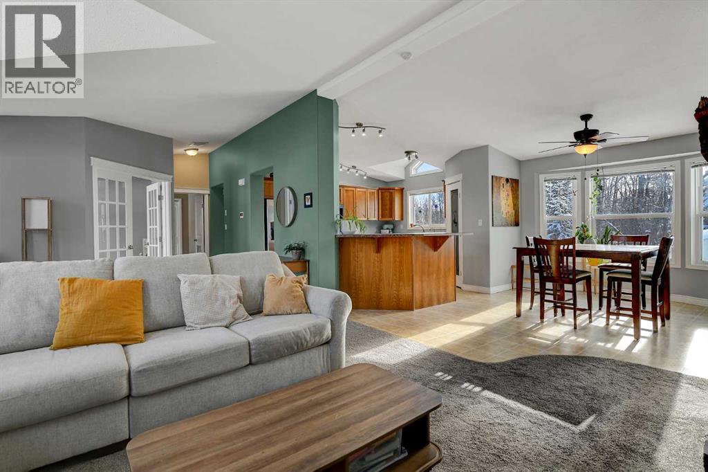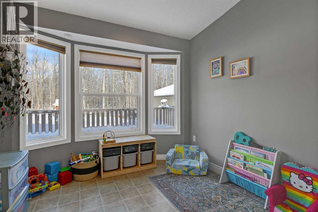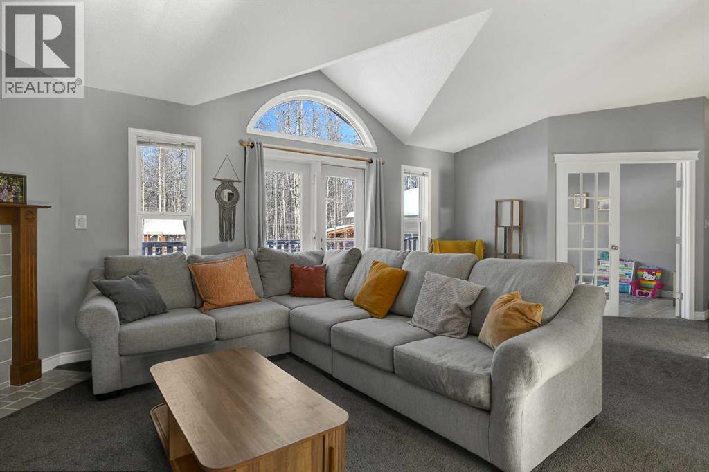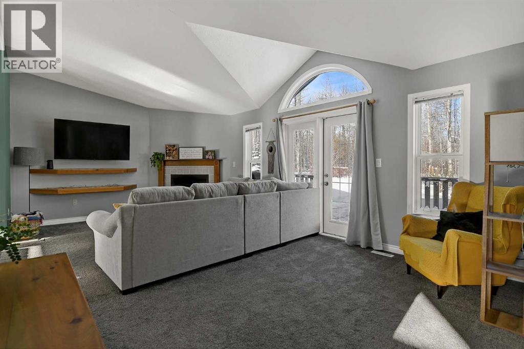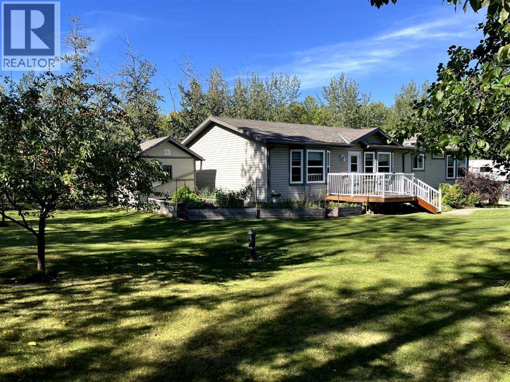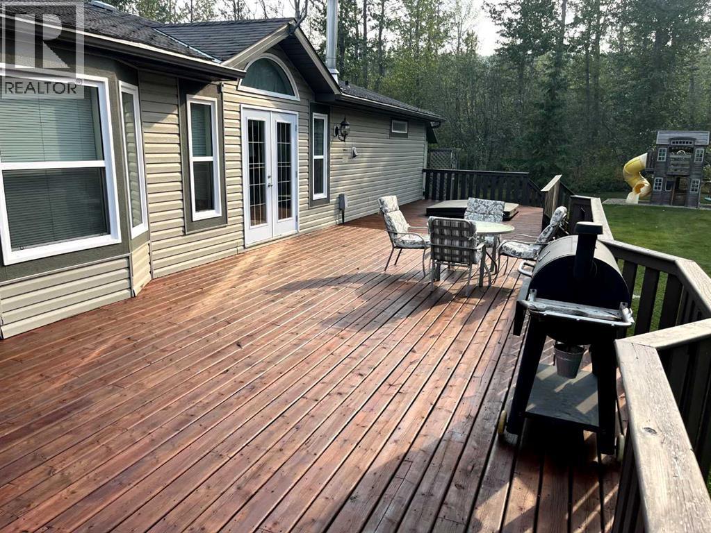 This exceptionally well-maintained 1736 sqft custom built modular home is situated on a gorgeous, private 4.27-acre treed setting in Saskatoon Mountain Acreages about 20 minutes west of Grande Prairie. This fine property offers nice curb appeal, 32 x 28 triple garage, concrete apron and abundant room and parking for all your toys. You can enjoy the peaceful country living surrounded by trees and take in the sunshine anytime of day from either the front deck with aluminum railing or the expansive 15 x 60 rear deck. The fully fenced backyard is the perfect setting for kids and pets, complete with a play center, shed and chicken coop. Yard also offers 5 raised garden beds. Inside, the freshly painted, open concept layout is bright and welcoming, highlighting vaulted ceilings, large windows, and a cozy wood fireplace. The spacious kitchen boasts plenty of cabinets, eating bar, and modern stainless-steel appliances. You will love the impressive primary bedroom, which offers a huge walk-in closet and a luxurious ensuite featuring a two-person jetted tub, separate shower, and his-and-her sinks. The layout features 2 large bedrooms and a 3rd room which could be an office, playroom, nursery, or potential 3rd bedroom. The 32 x 28 heated garage features 3 overhead doors, floor drain, shelving and workbench and a lean-to off the back perfect for extra storage. Other great features include custom blinds, reverse osmosis to fridge and kitchen tap, new hot water tank and new washer and dryer. This scenic property offers a rare combination of modern open concept floor plan, private treed setting and a massive garage all at an attractive price so book your showing soon. (id:49203)