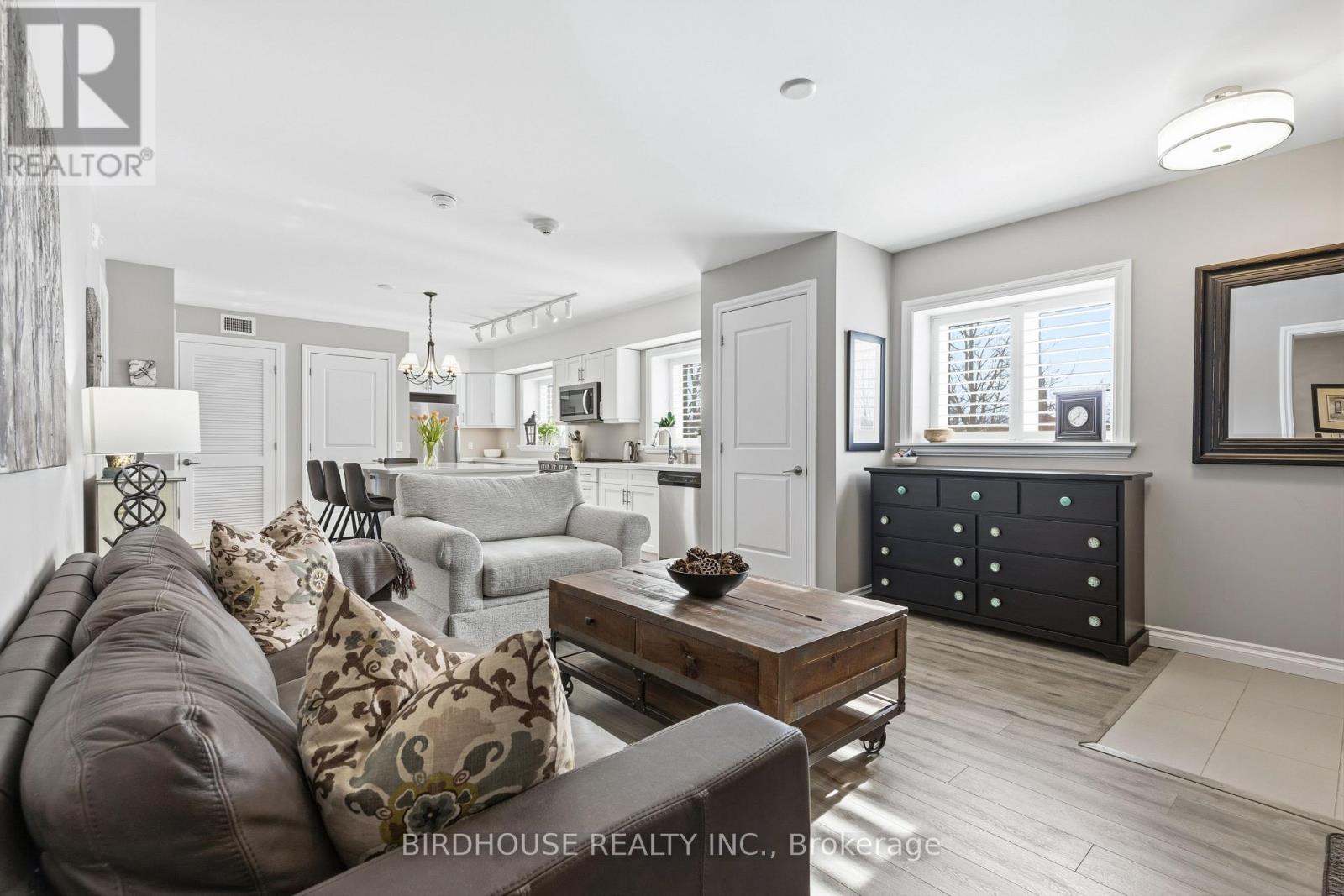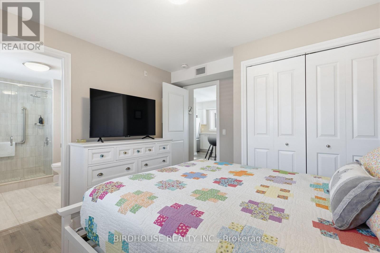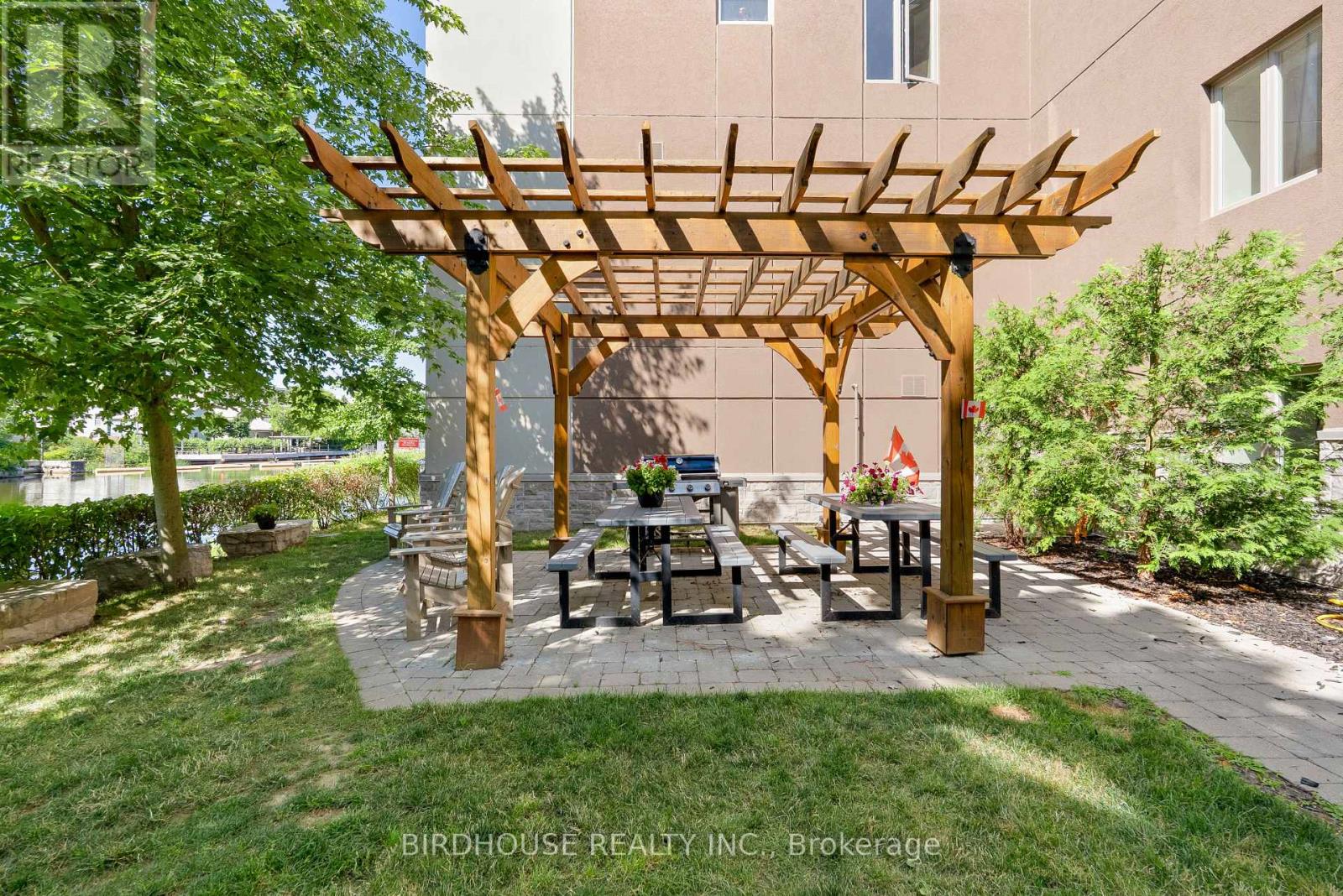 STUNNING 2 bedroom 2 bath end unit on the top floor! Situated along the Scugog River, with beautiful views of the falls & Lock 33. Enter through the secured front foyer & skip the stairs by taking the elevator. The condo unit features an open concept living room & gorgeous kitchen with stainless steel appliances, large island and quartz countertops. Spacious primary bedroom features an ensuite with walk-in tiled shower. This unit includes in suite laundry, air conditioning, dedicated parking, guest parking, a storage locker plus access to common exercise room (same floor), party room & outdoor BBQ terrace area. Located beside the Victoria Trail, this condo is perfect for those who enjoy walking and biking, plus is just a short stroll to downtown shops, restaurants, and shows! (id:49203)