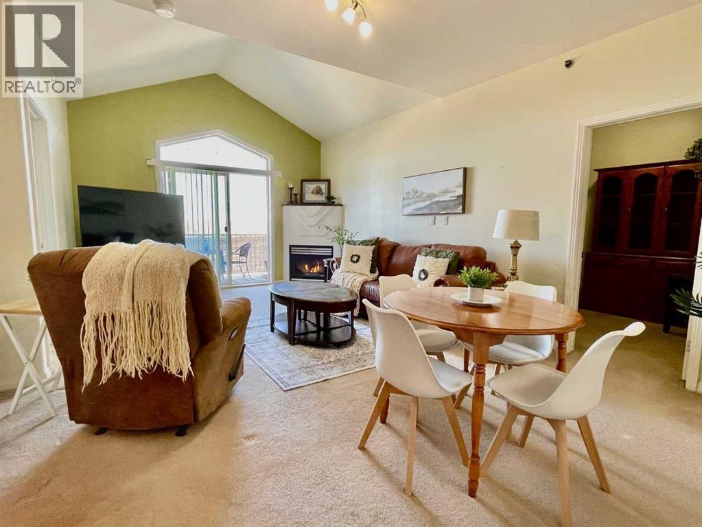 $490.11 MonthlyTop-floor condo with beautiful views and a covered balcony. This bright and well-maintained 1-bedroom plus den unit at 303-1095 Timberline offers an open layout with vaulted ceilings, a gas fireplace, an eat-up breakfast bar, in-floor heating, and in-suite laundry. The primary bedroom includes a walk-in closet, and the main bathroom features a deep soaker tub.A standout feature of this home is the covered top-floor balcony, providing a private outdoor space that can be enjoyed in all weather, complete with a natural gas BBQ hookup and views of the river valley.Additional conveniences include a heated underground parking stall with wash bay access and a separate storage unit. The building is professionally managed and located close to shopping, restaurants, and essential amenities. Condo fees include heat, water, and building maintenance.A clean, quiet, and move-in-ready option for buyers seeking low-maintenance living. (id:49203)